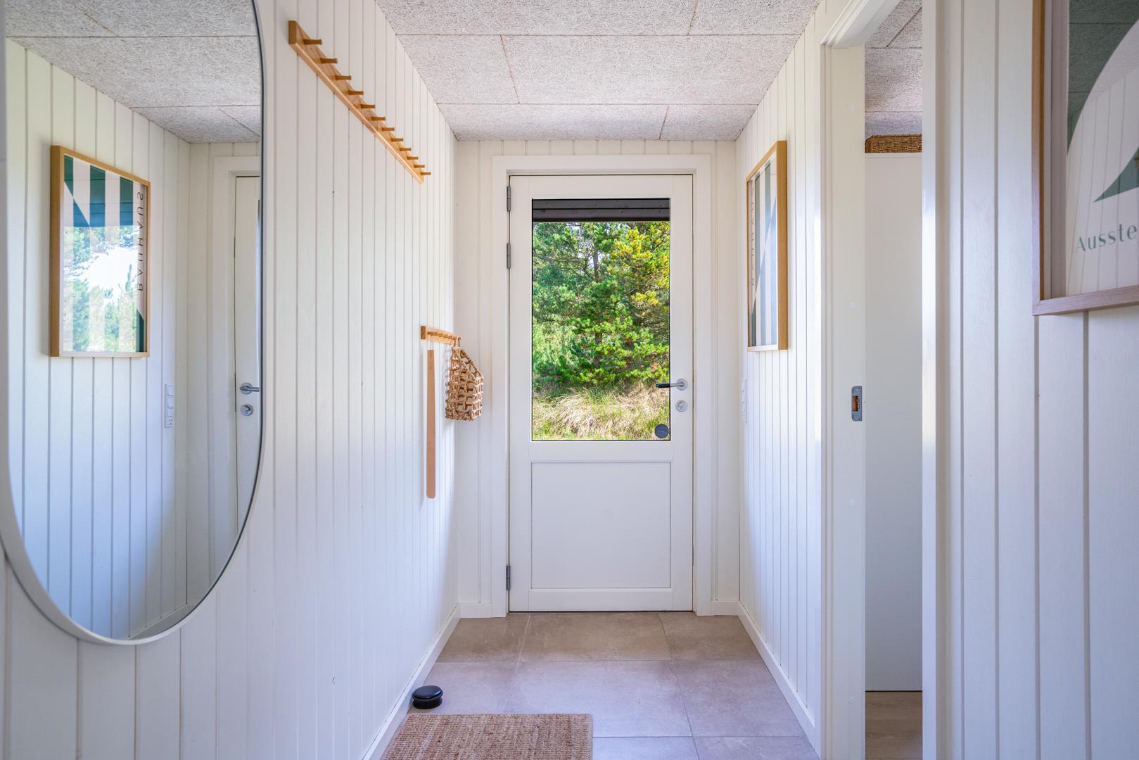 Drømmer I om et moderne, stilfuldt og ikke mindst hyggeligt sommerhus i naturskønne omgivelser? Så er dette renoverede feriehus fra 2025 i Henne Strand det oplagte valg. Huset ligger for enden af en blind vej – fredeligt og ugeneret – midt på en smuk, lyngklædt naturgrund med god plads til boldspil og leg.