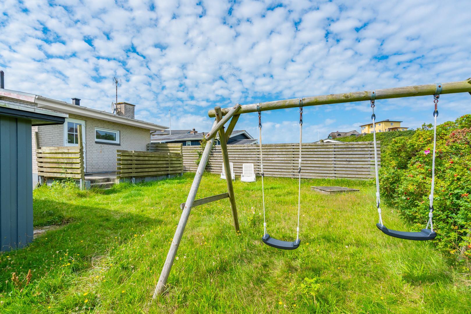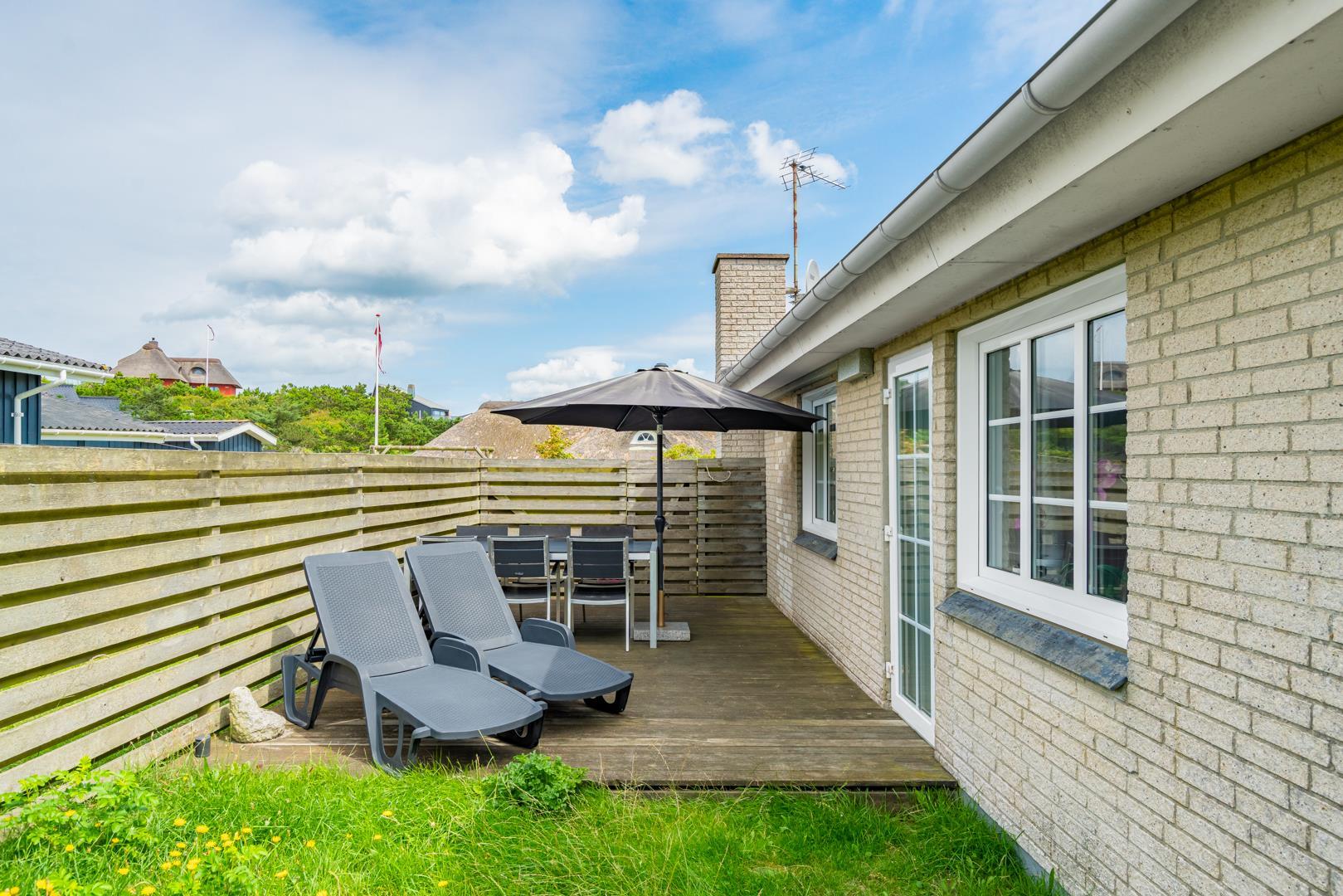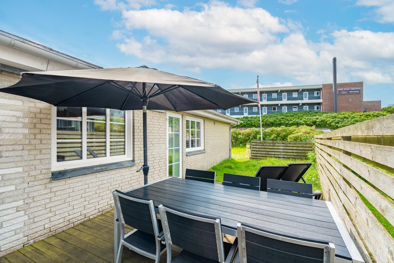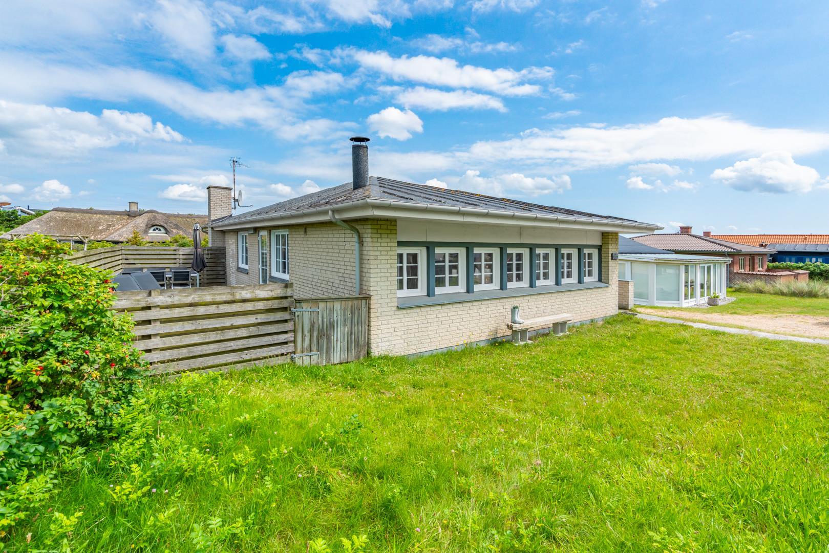 Hyggeligt feriehus tæt på Henne Strand og Vesterhavet med privat have, sauna og energibesparende varmepumpe.