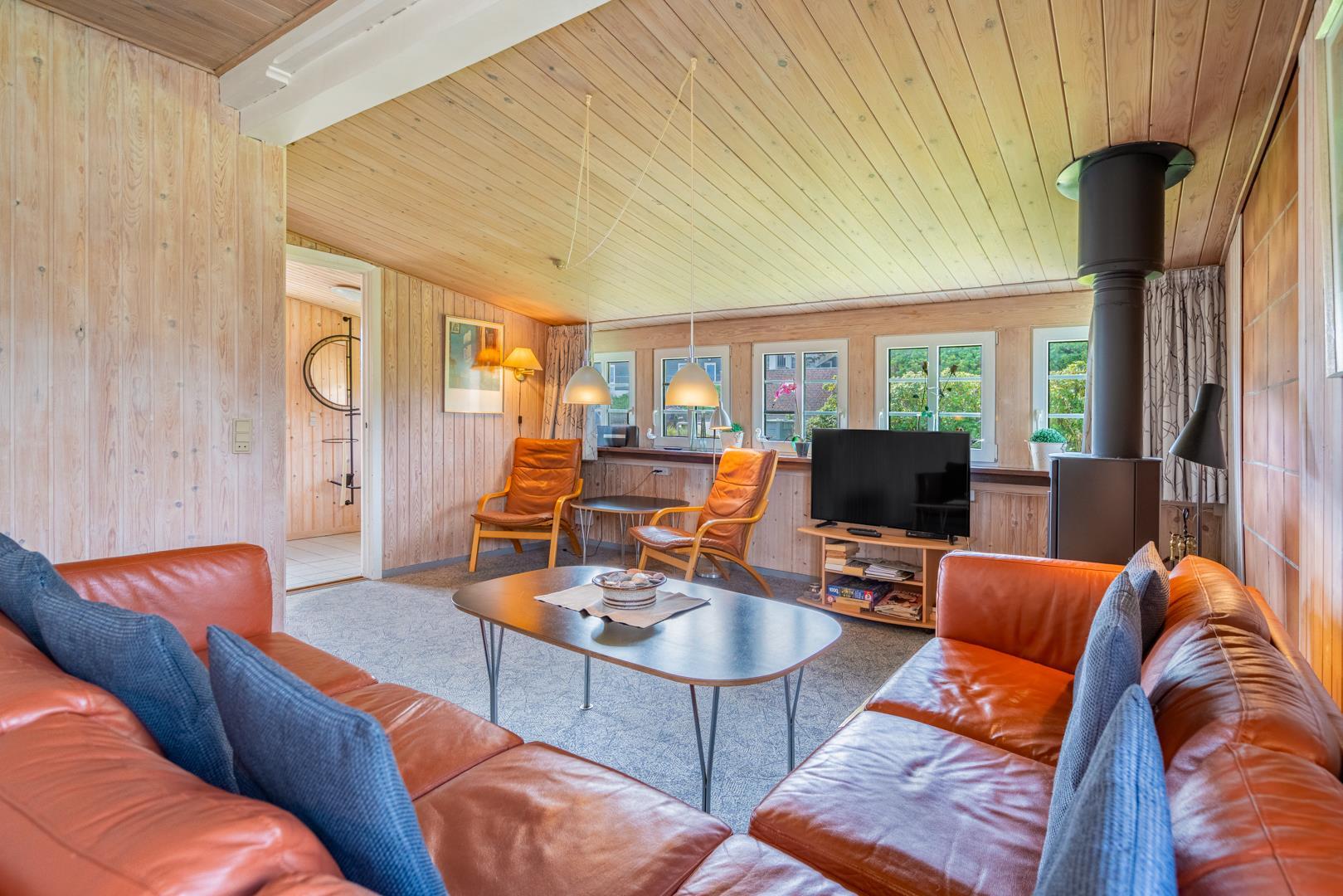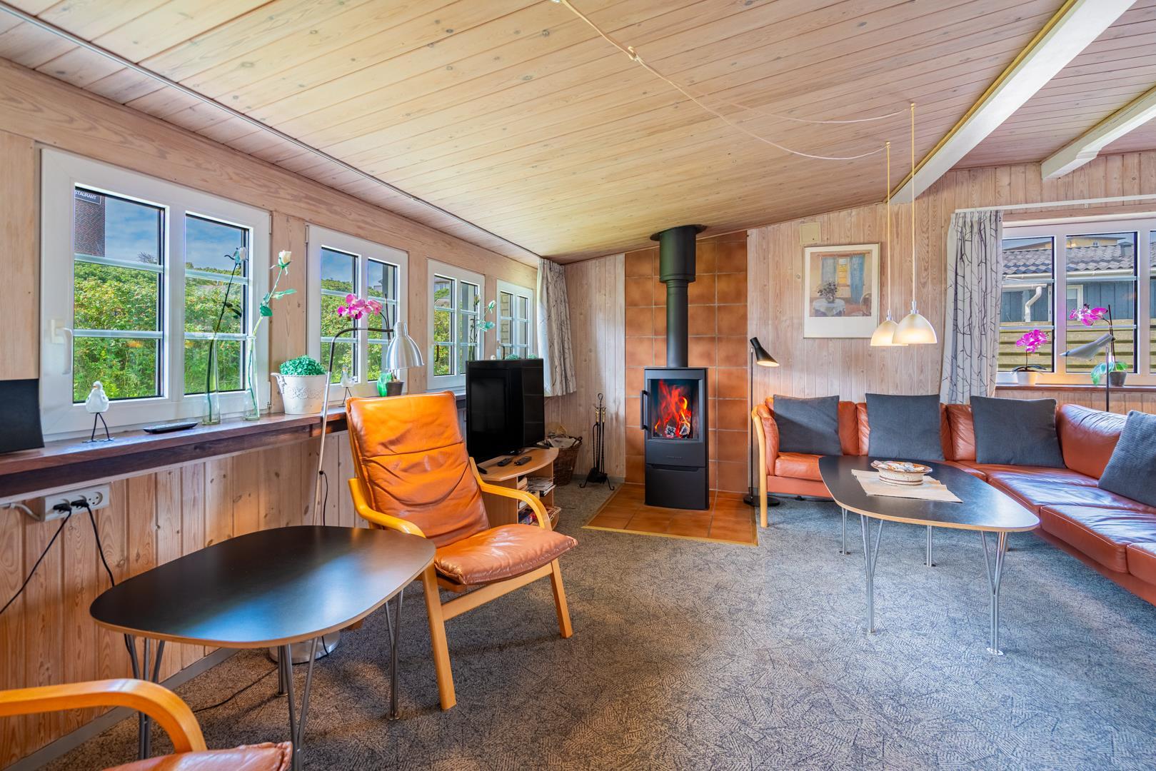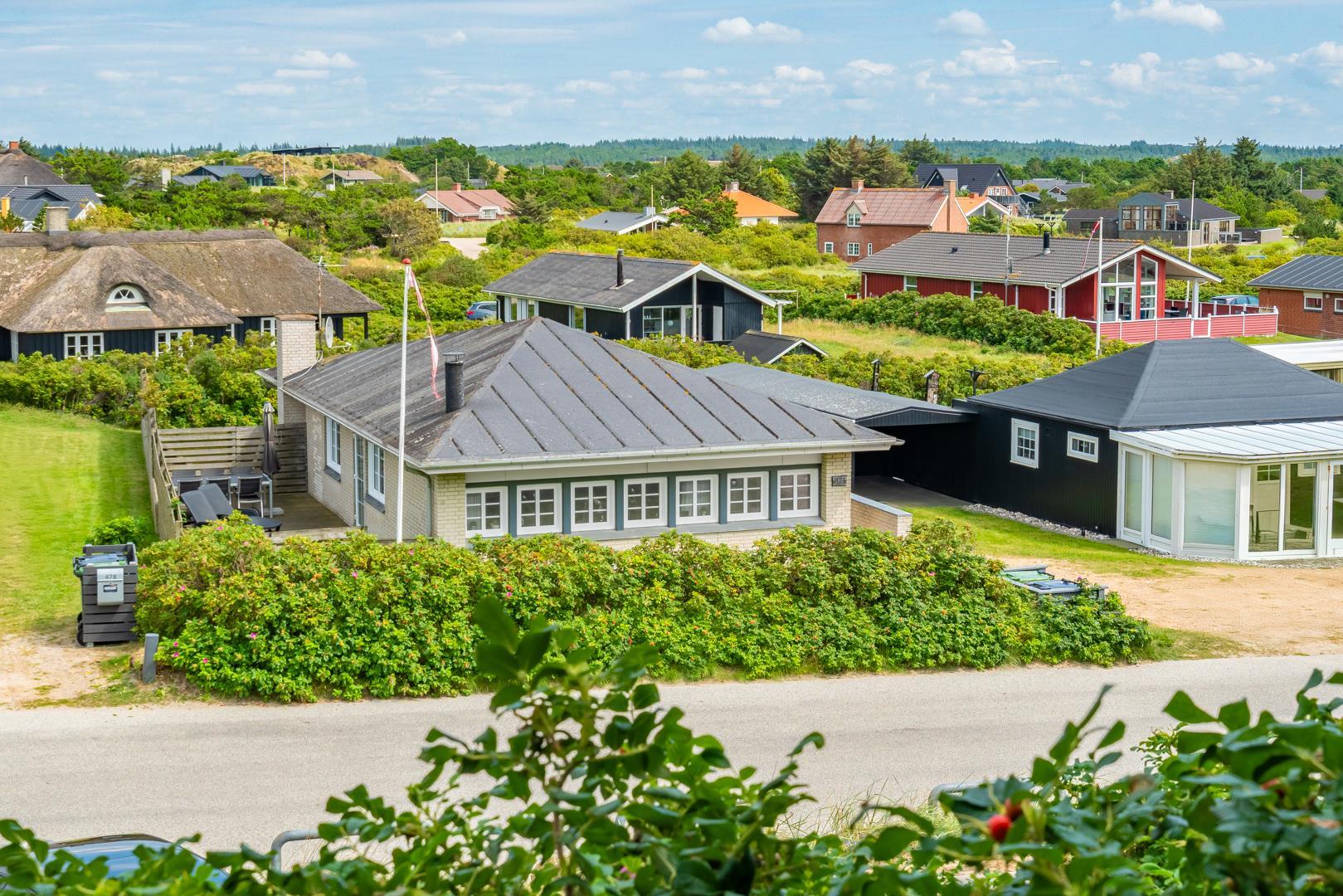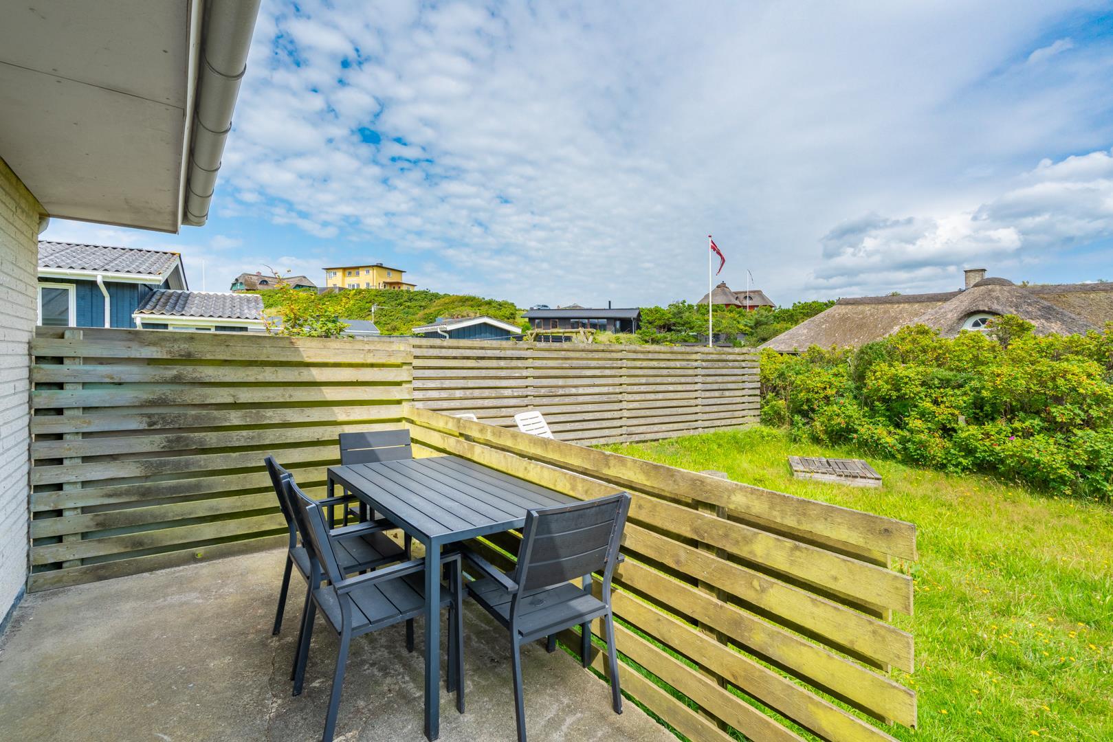 Hyggeligt feriehus tæt på Henne Strand og Vesterhavet med privat have, sauna og energibesparende varmepumpe.