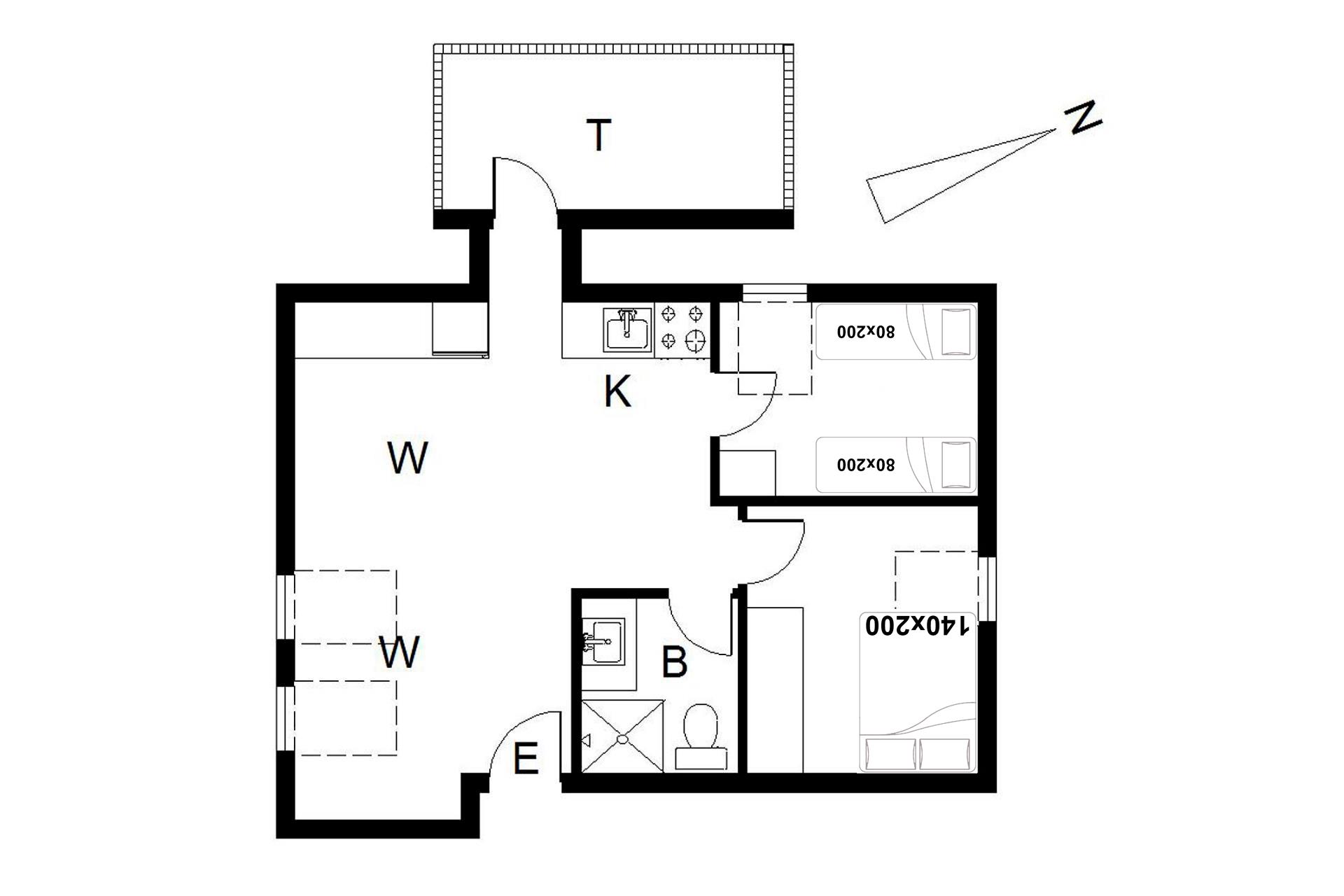 Sengestørrelser: 1 dobbeltseng 140 x 200 cm + 2 enkeltsenge 80 x 200 cm.