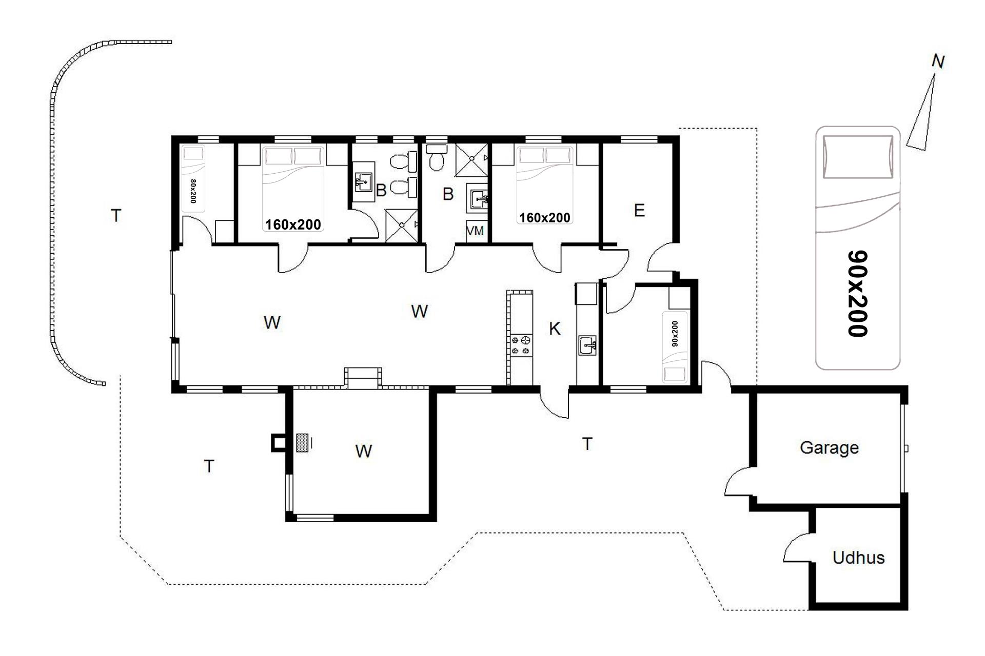 Sengestørrelser: 2 dobbeltsenge 160 x 200 cm + 1 enkeltseng 90 x 200 cm + 1 enkeltseng 80 x 200 cm.