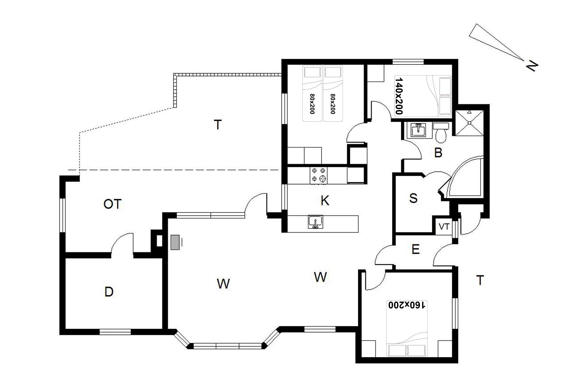 Sengestørrelse: 1 dobbeltseng med 2 madrasser 80 x 200 cm + 1 dobbeltseng 160 x 200 cm + 1 dobbeltseng 140 x 200 cm.