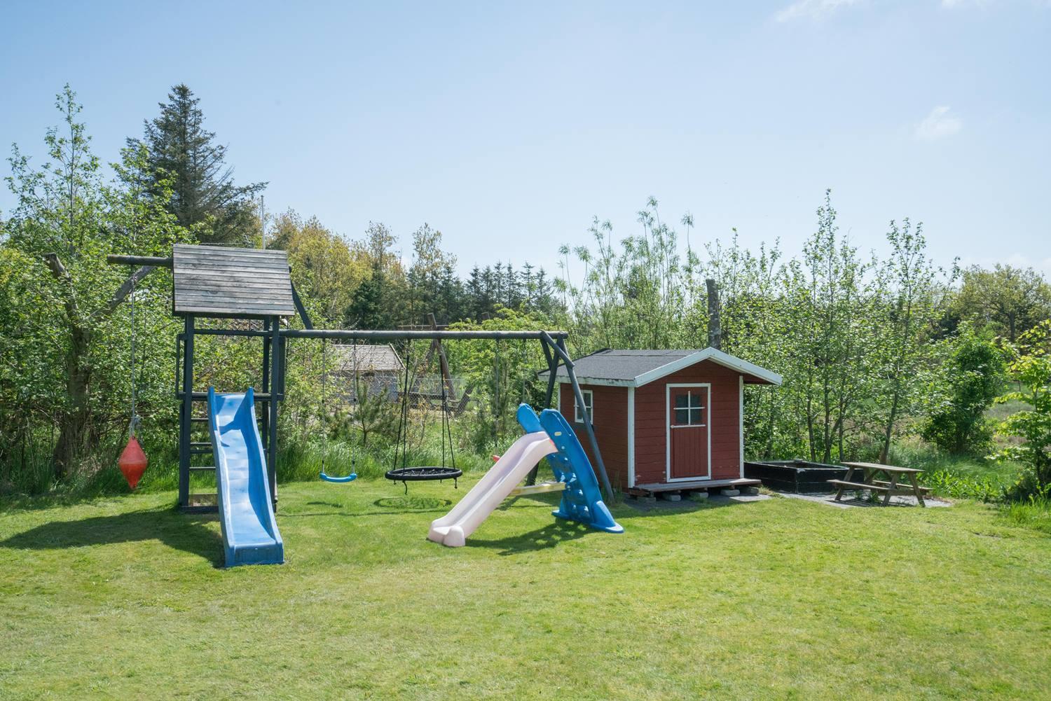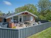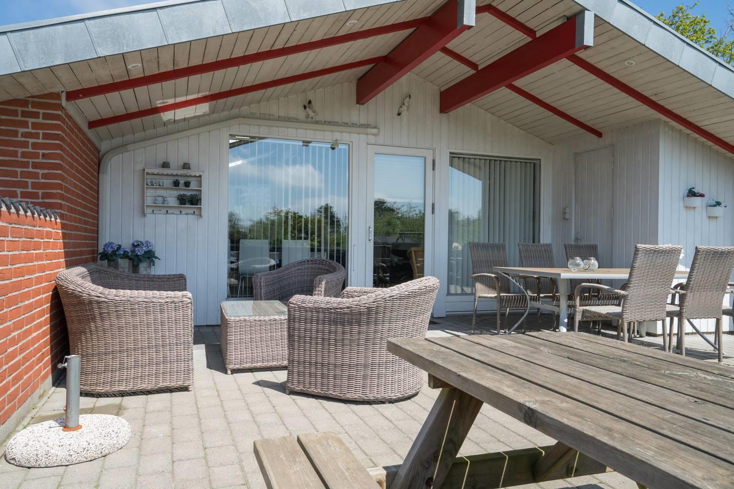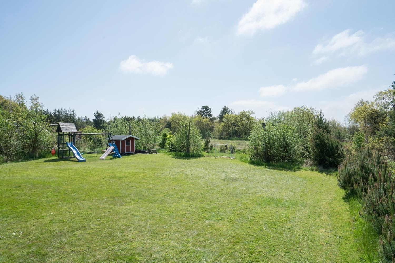 Hyggeligt feriehus med sauna, lukket grund og overdækket terrasse nær Henne Strand.