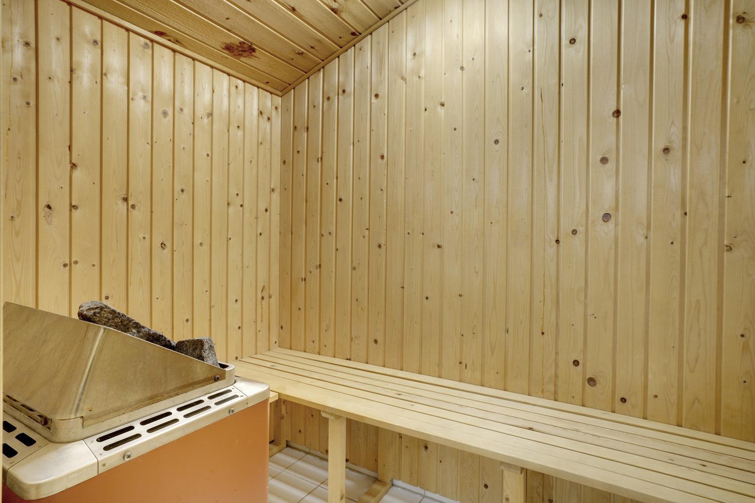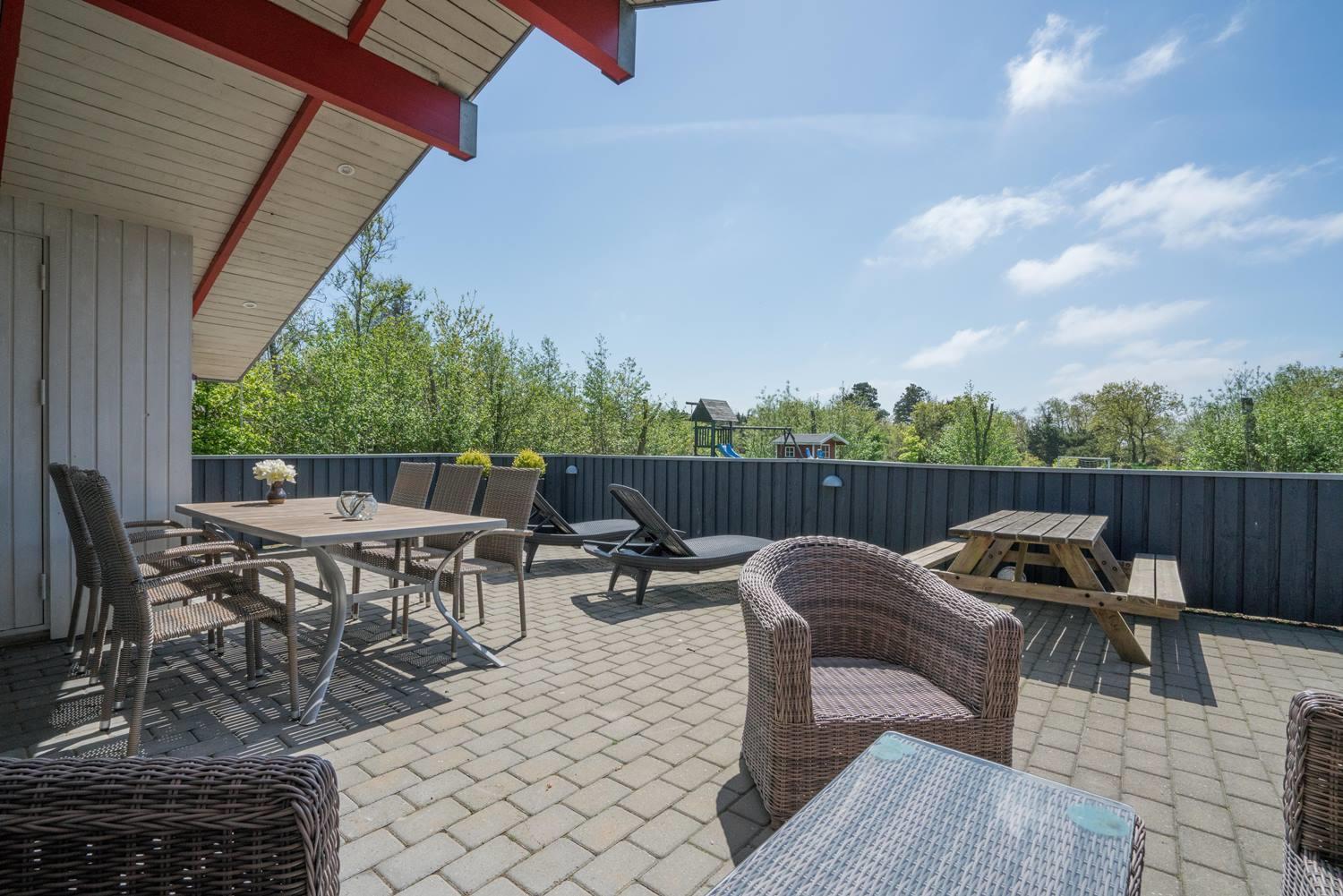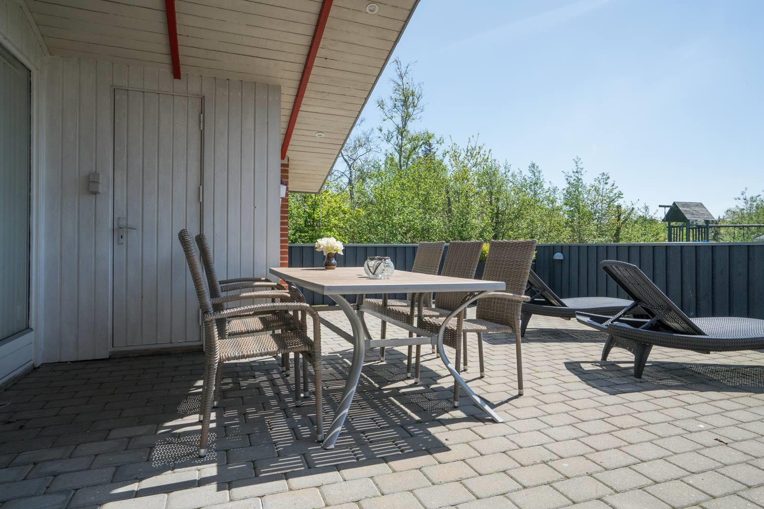 Hyggeligt feriehus med sauna, lukket grund og overdækket terrasse nær Henne Strand.