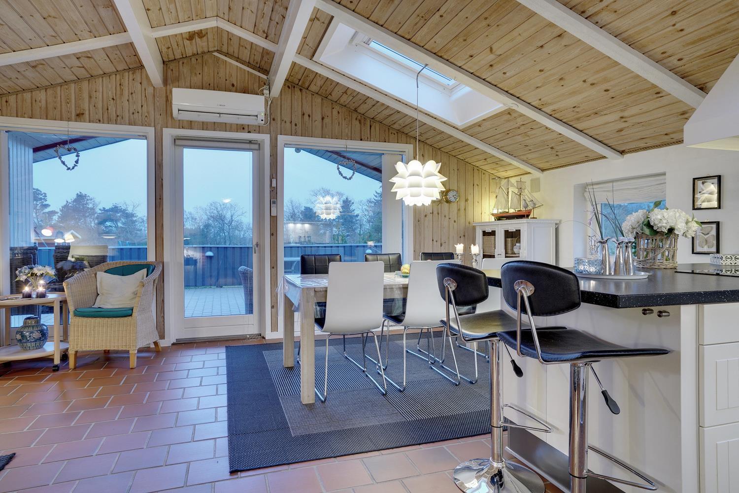 På dejlig lukket og ugeneret grund ligger dette rigtig hyggelige feriehus med carport. Det flotte nye køkken og den hyggelige stue ligger i åben forbindelser med hinanden. Fra stuen er der udgang til dejlig overdækket terrasse og derfra udgang til pragtfuld, stor grund, som er perfekt til alle former for leg og boldspil. Et pragtfuld og meget velpasset feriehus hvor rammerne er skabt til en dejlig ferie.