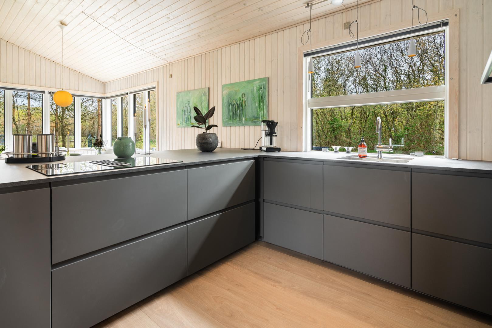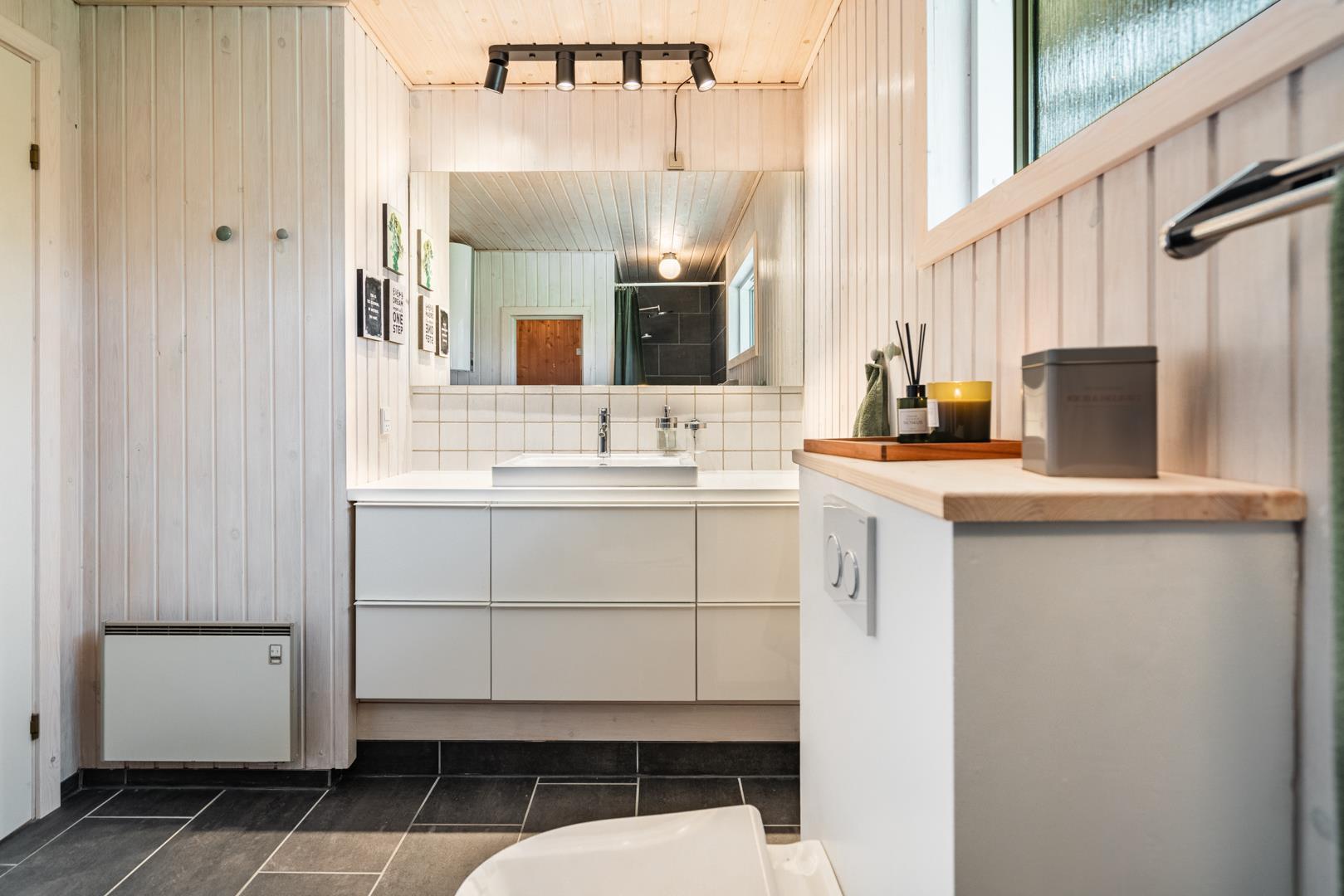 Huset fremstår overalt lyst og venligt og i 2022 er huset blevet renoveret med nyt lækkert køkken(2022) som er i åben forbindelse med den smagfuld indrettede stue/spisestue. I husets badeværelse finder I huset sauna, vaskemaskine og tørretumbler. Der er i huset 3 gode soverum alle med udstyret med kvalitetssenge.