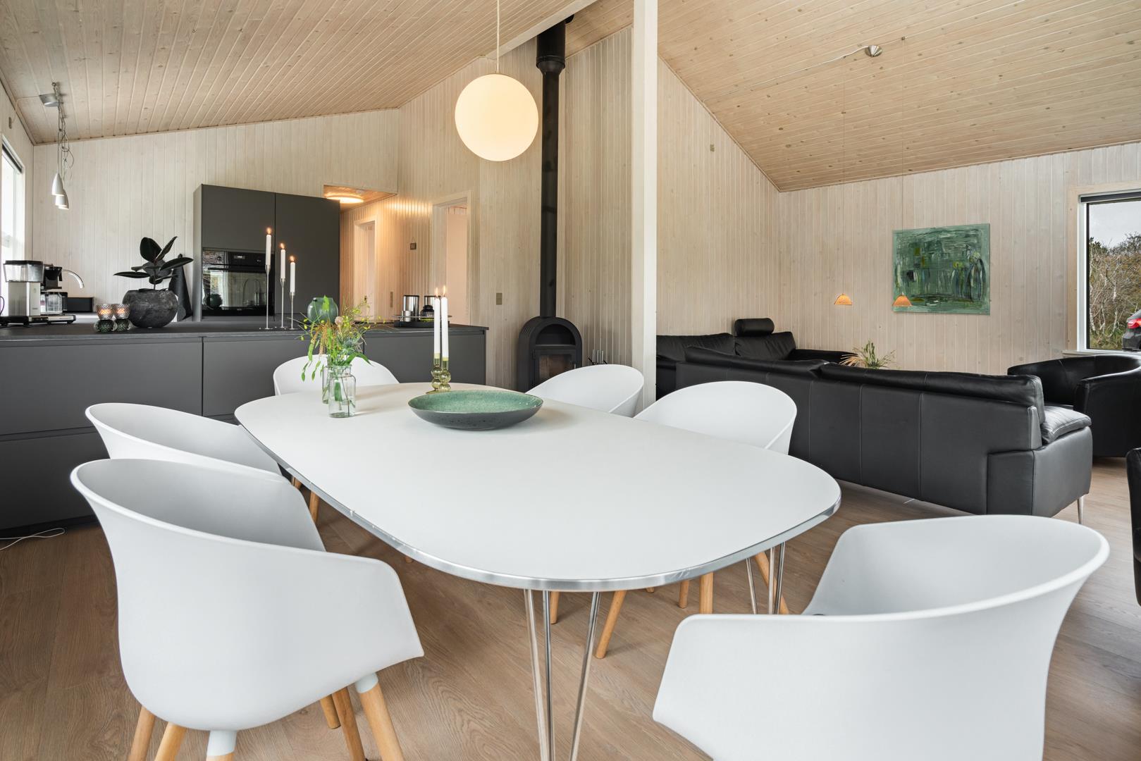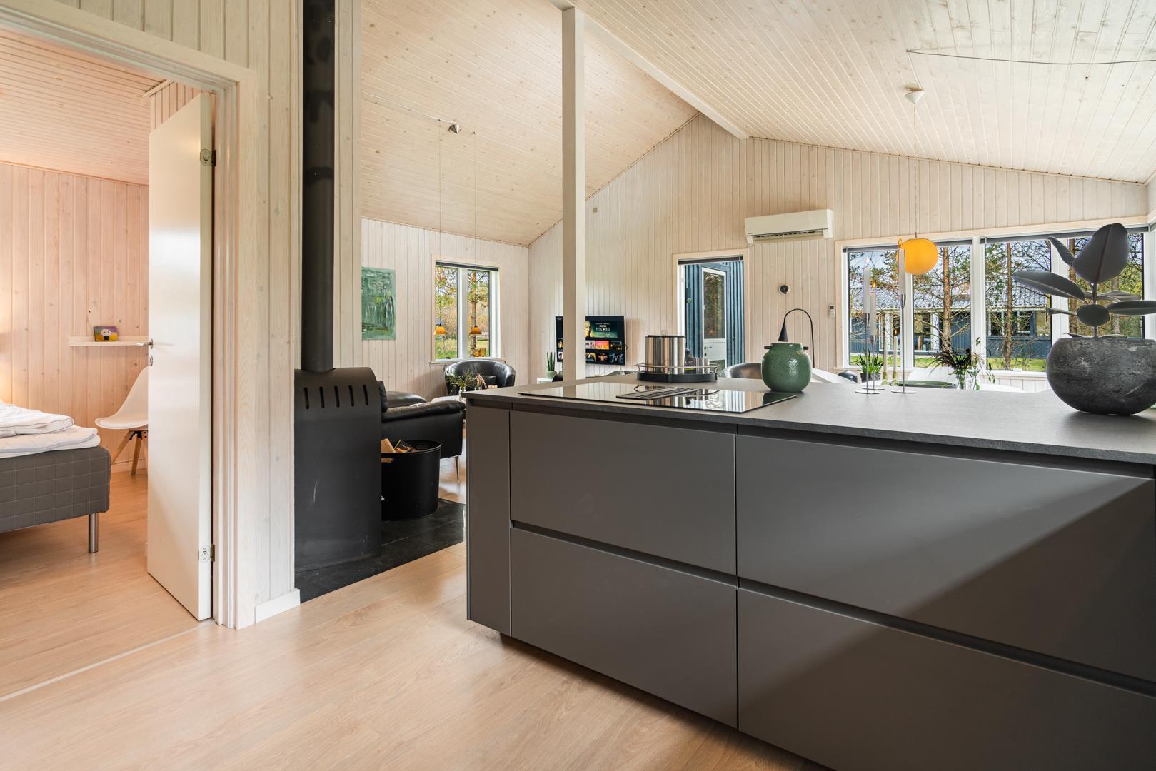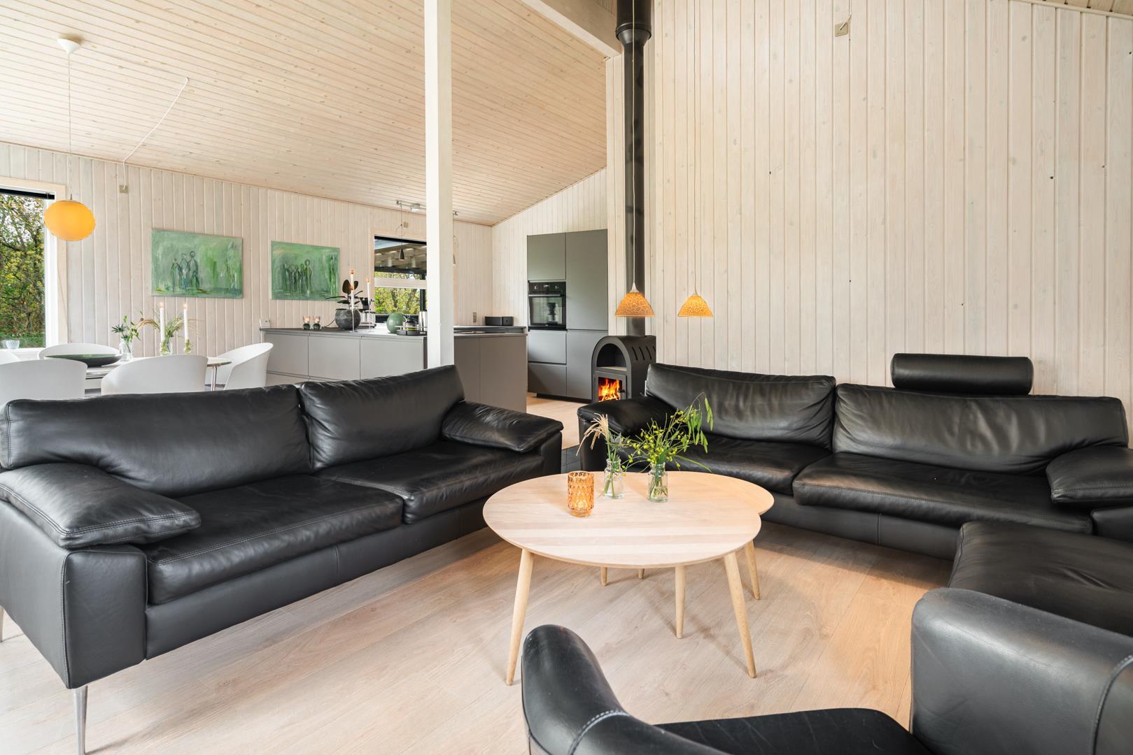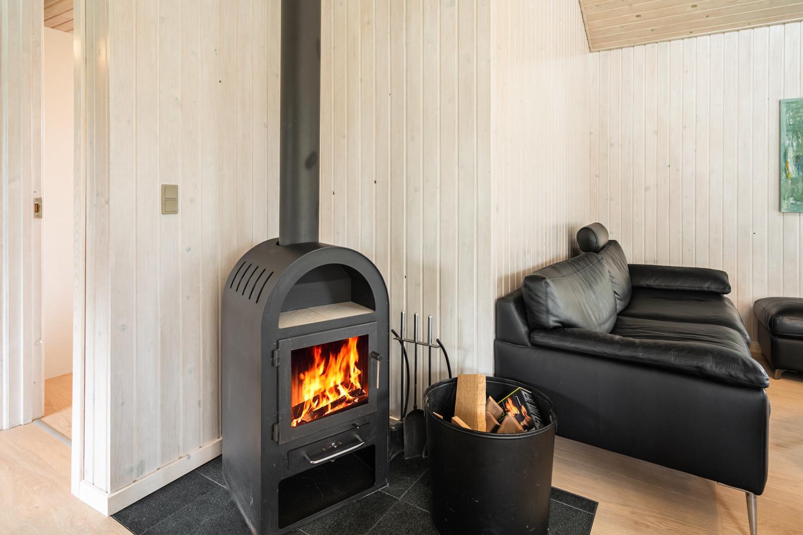 Hyggelig indretning med brændeovn.