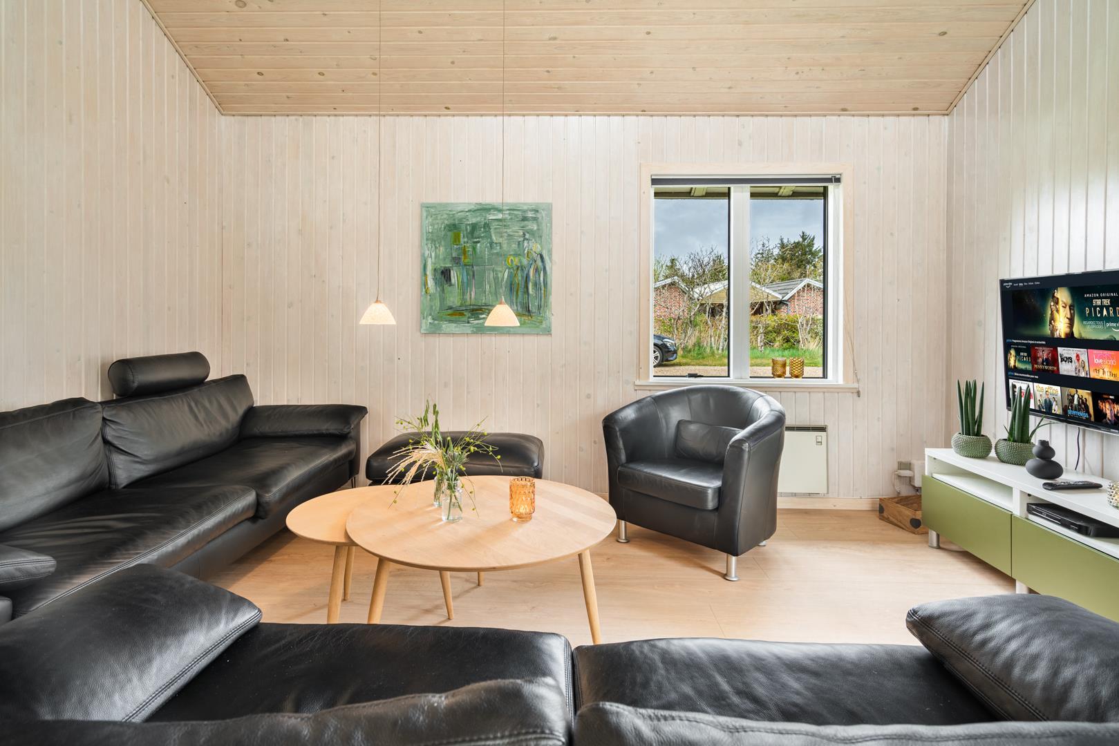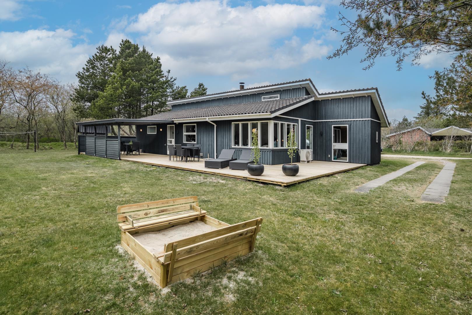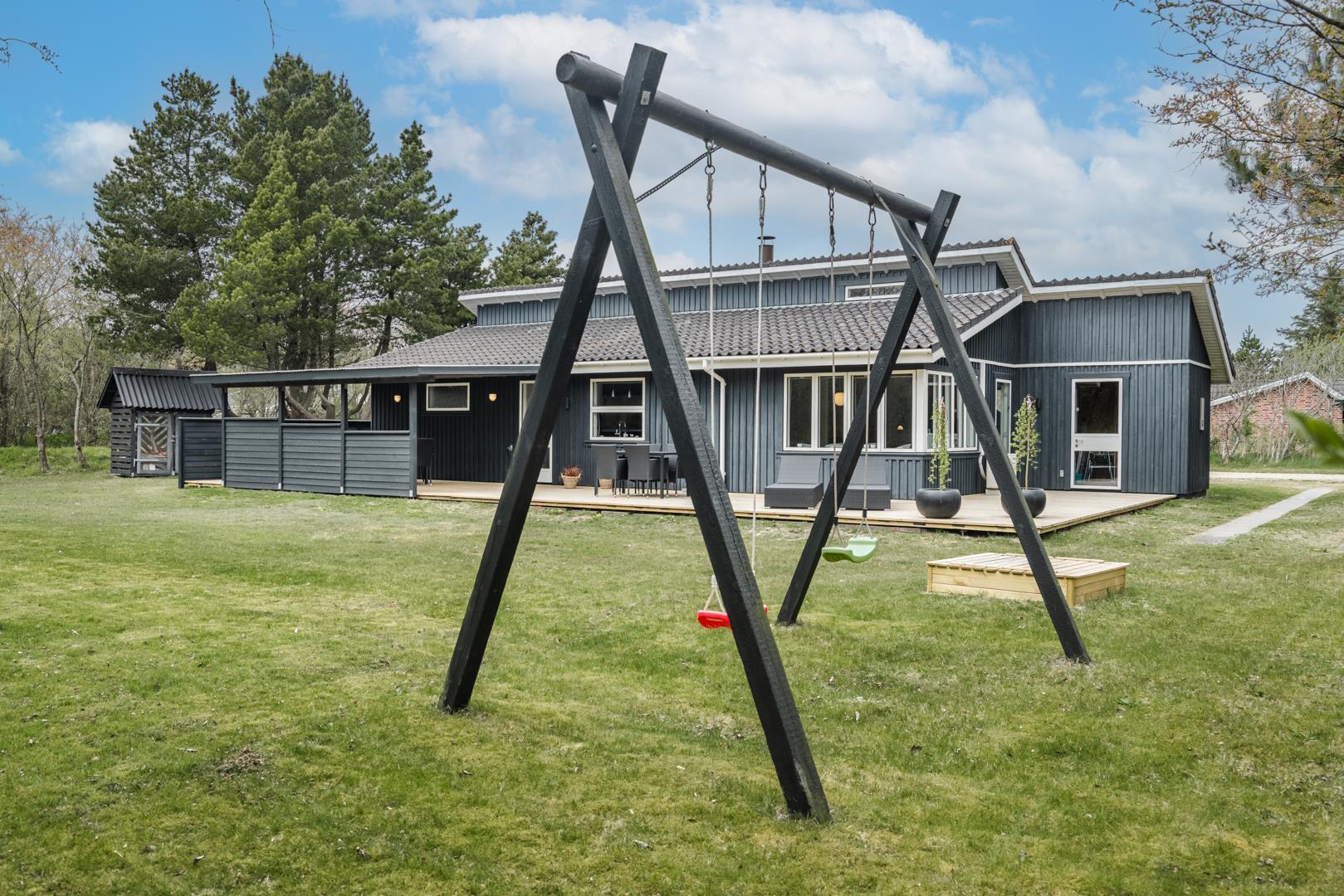 Så snart man træder indenfor døren i sommerhuset på Rævestien 2 A fornemmer man straks den hyggelige feriestemning. Huset ligger tæt ved skoven og Henne Golfklub, på grunden er der god plads til boldspil og udendørs aktiviteter, da her også er gynge og sandkasse til de små gæste.
