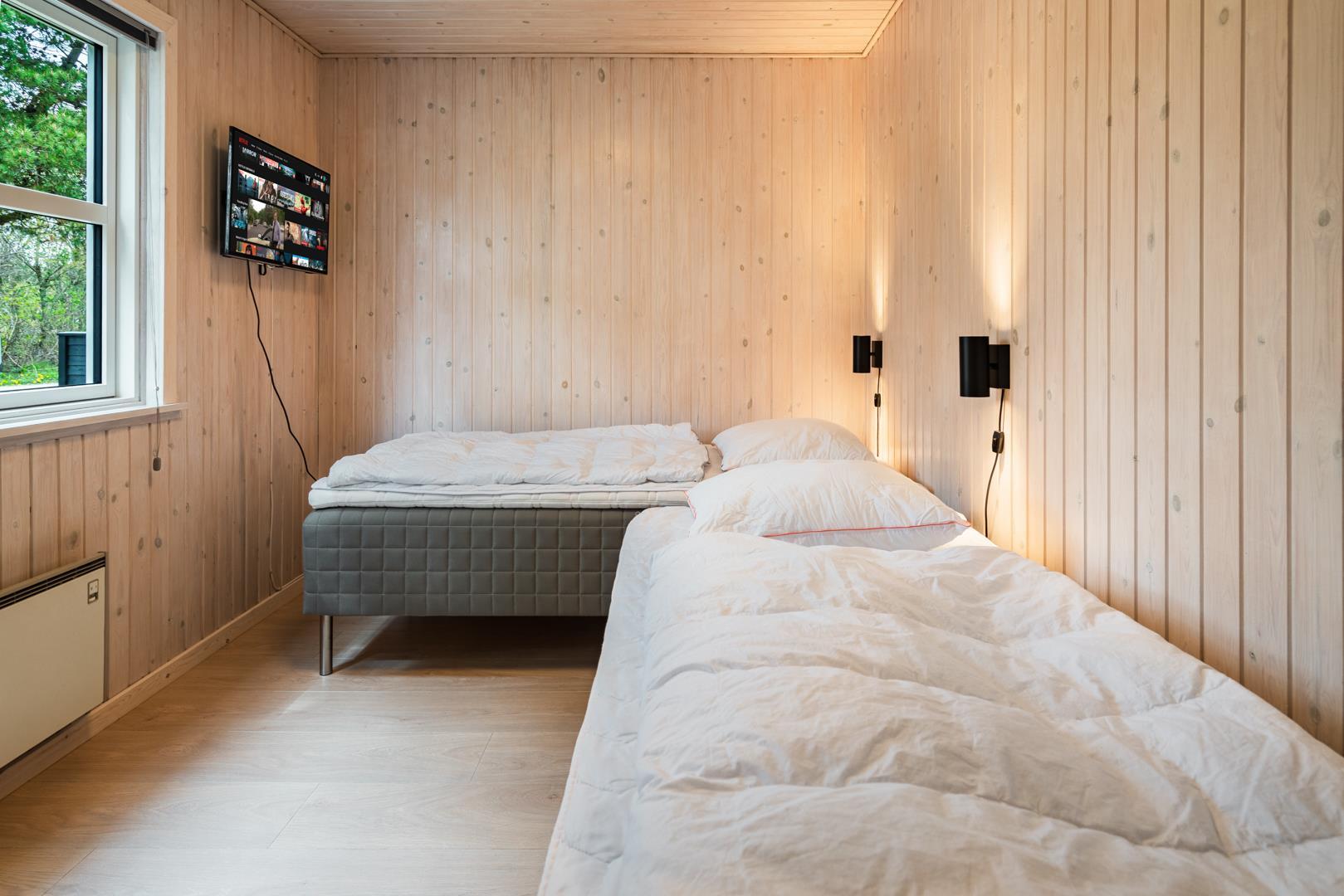 Sengestørrelse: 1 dobbeltseng 180 x 200 cm + 1 dobbeltseng 140 x 200 cm + 2 enkeltsenge 90 x 200 cm.