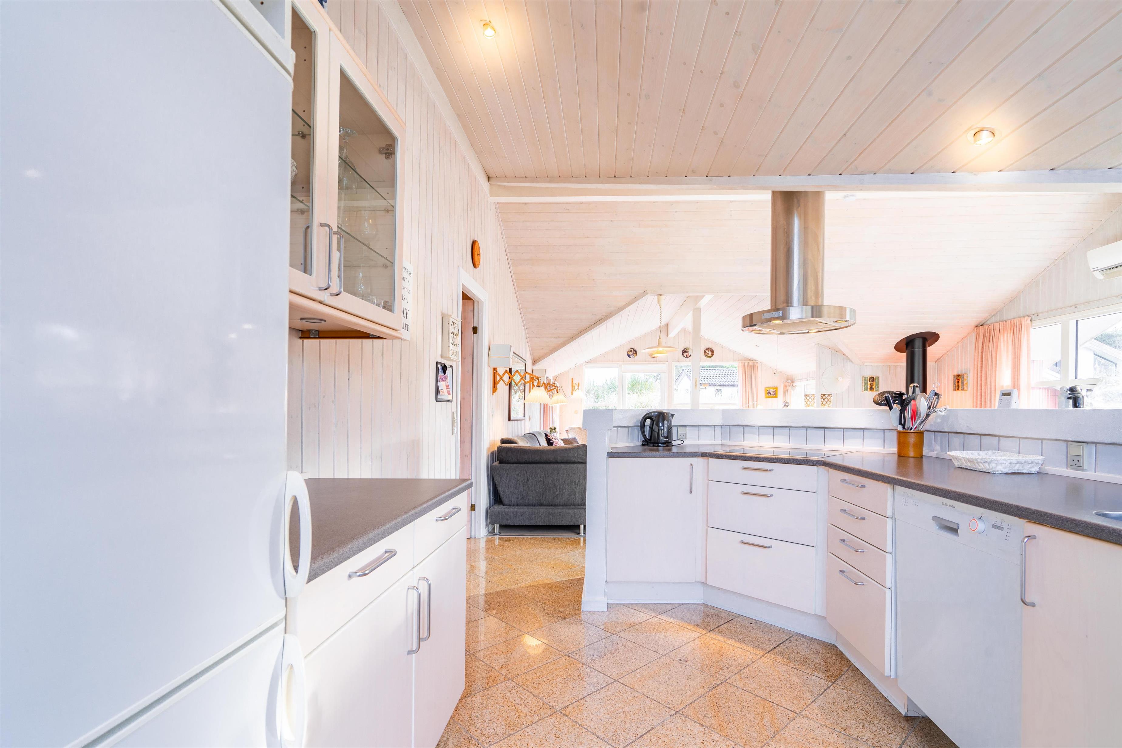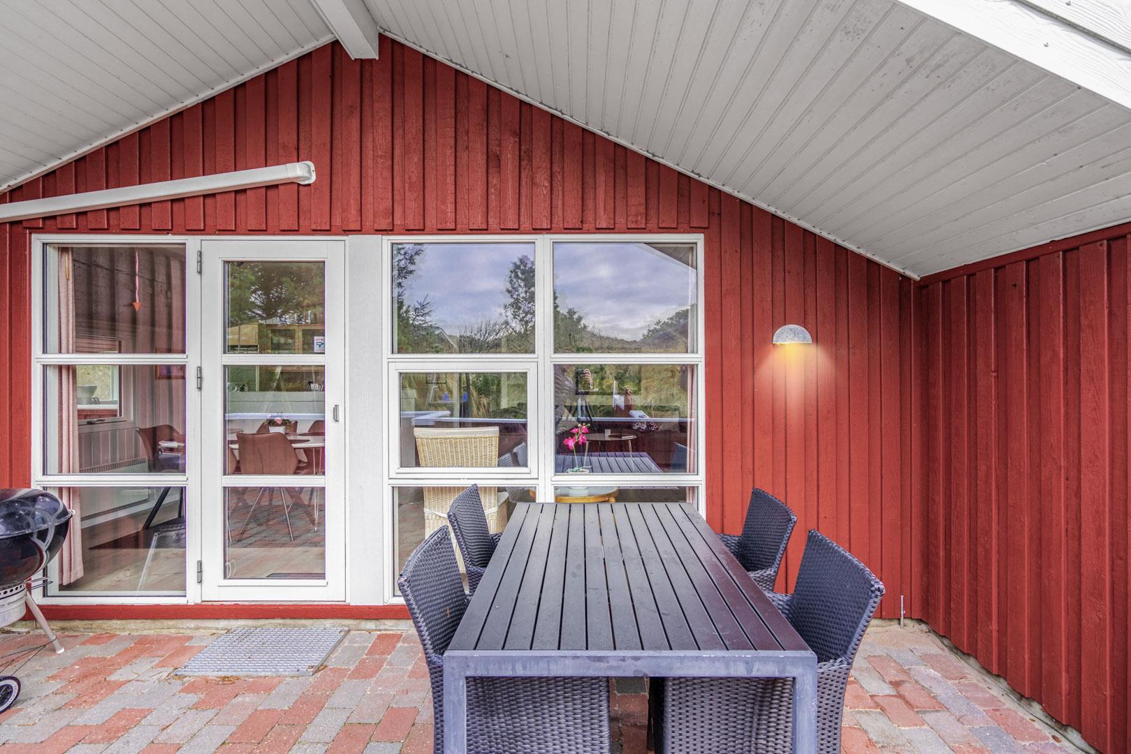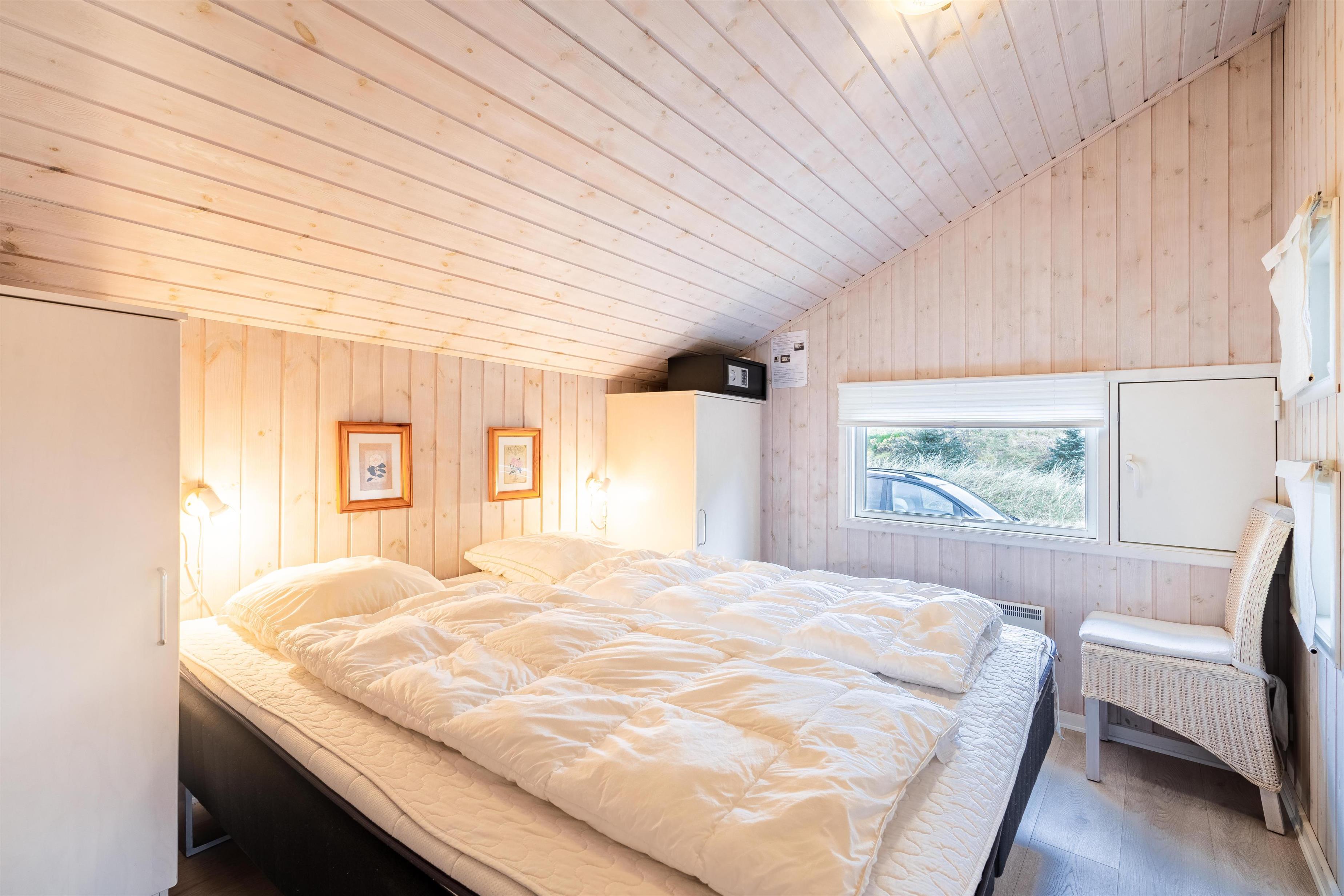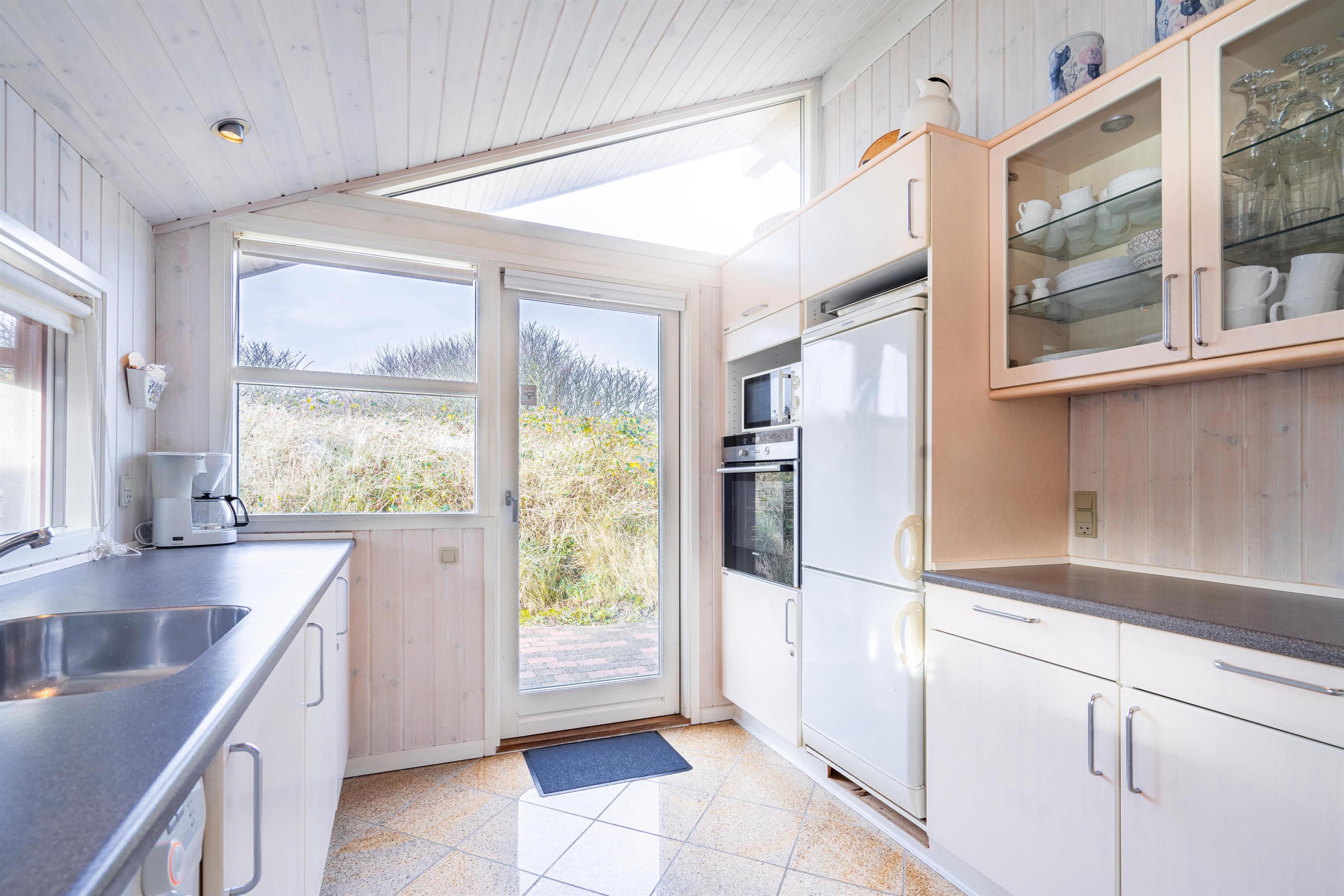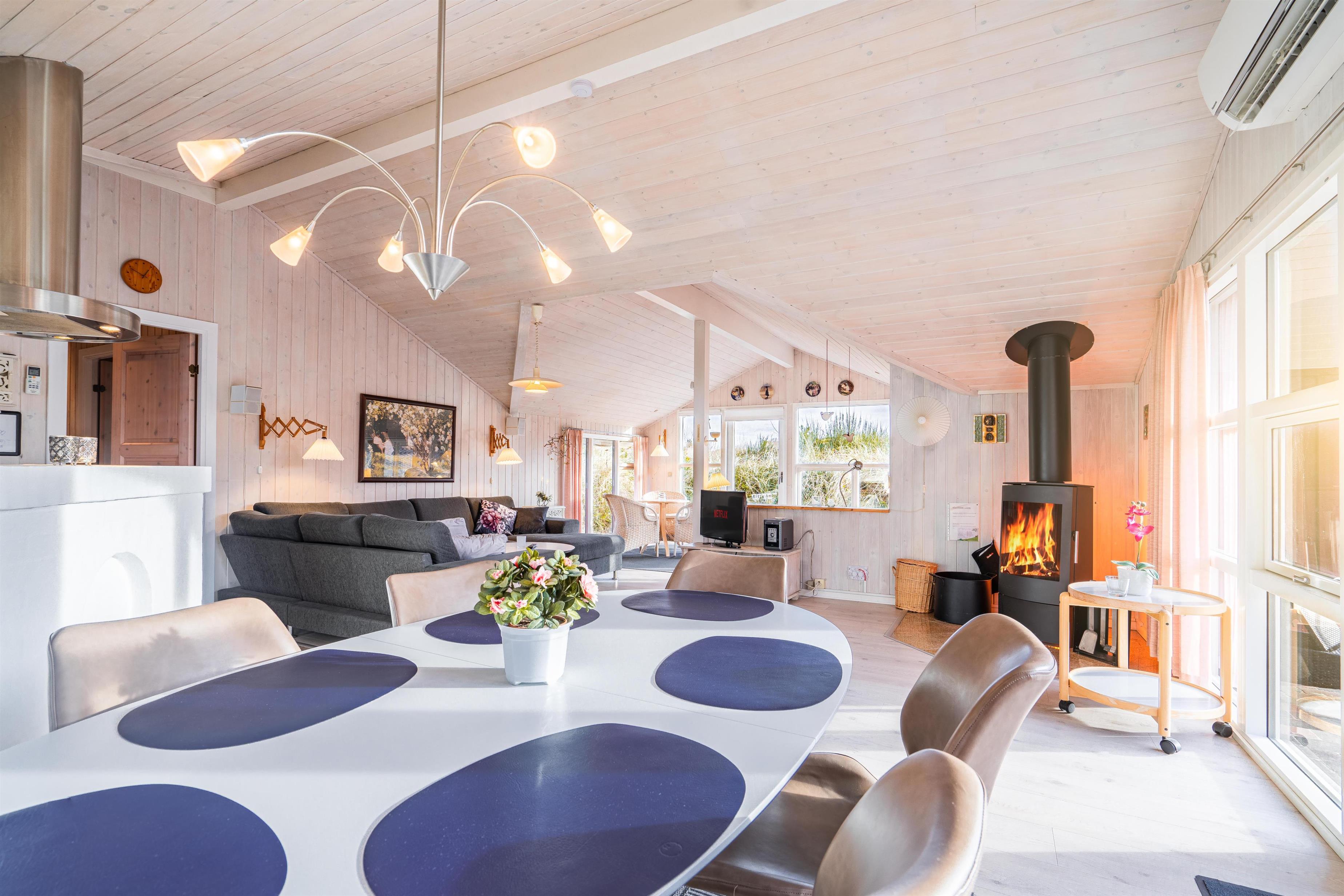 På en kuperet klitgrund ligger dette dejlige og personlige indrettede feriehus med udestue. Huset fremstår meget velholdt og i super stand og er indrettet med pæne og bekvemme møbler. Flot badeværelse med spa og sauna.Fra stuen, udestuen og køkken er der udgang til det store terrasse areal der er omkring hele huset, her er der altid mulighed for at finde en lækrog, hvor den skønne natur og solen kan nydes. I 2015 er der kommet trægulve overalt.