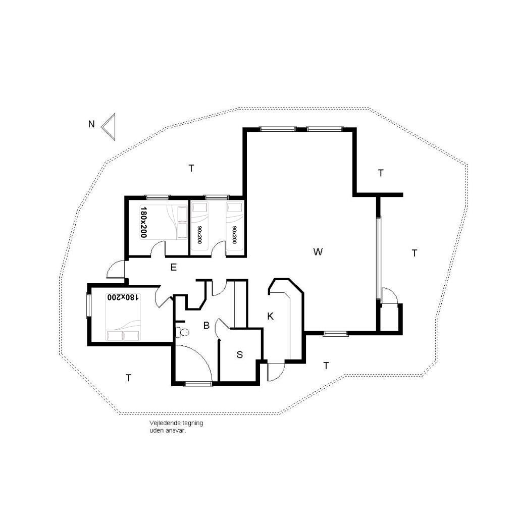 Sengestørrelser: 2 dobbeltsenge 180 x 200 cm + 2 enkeltsenge 90 x 200 cm.