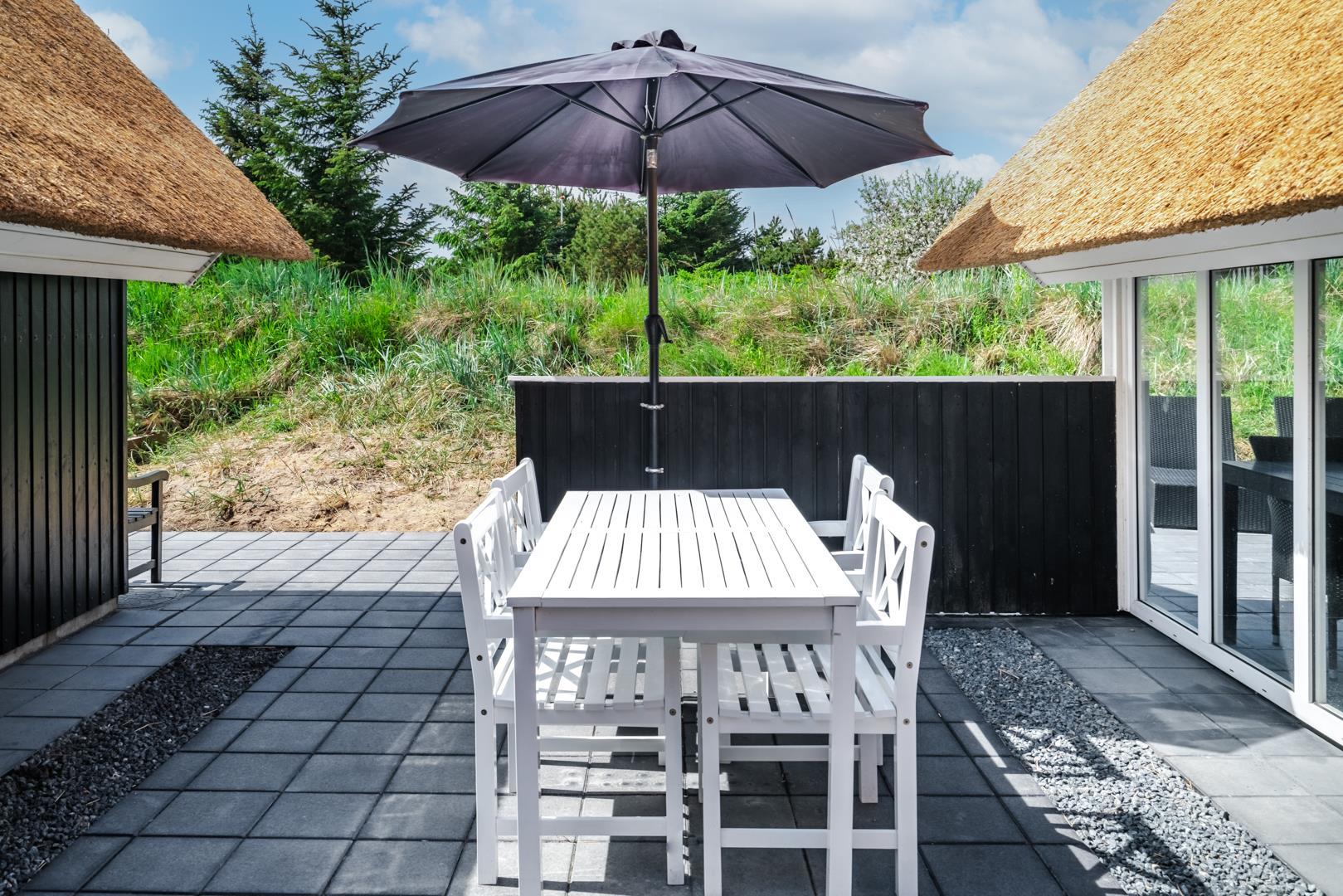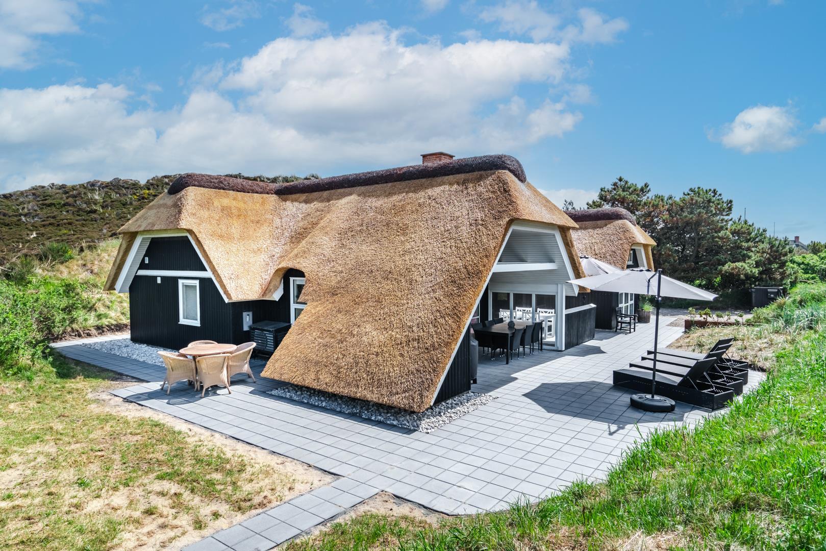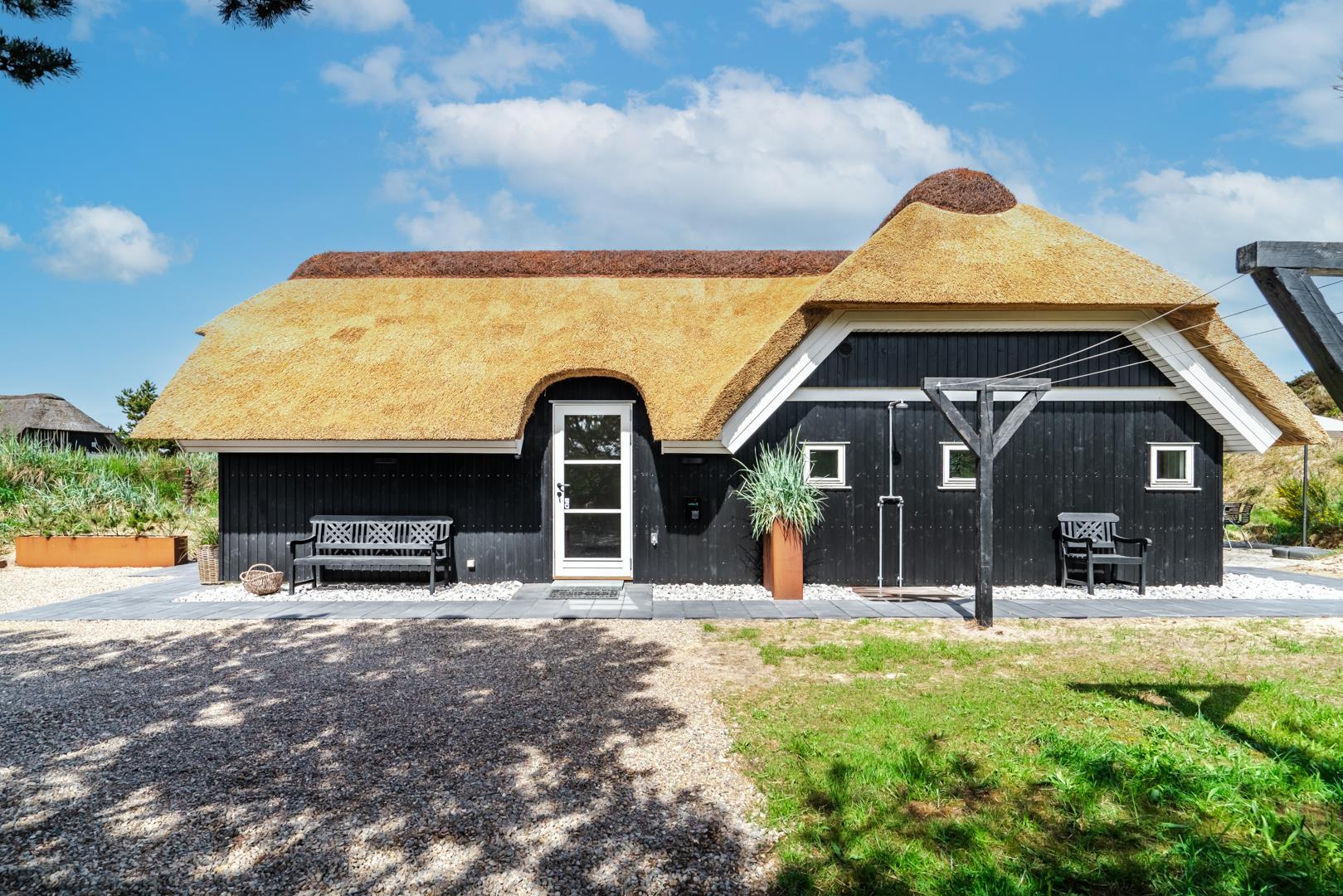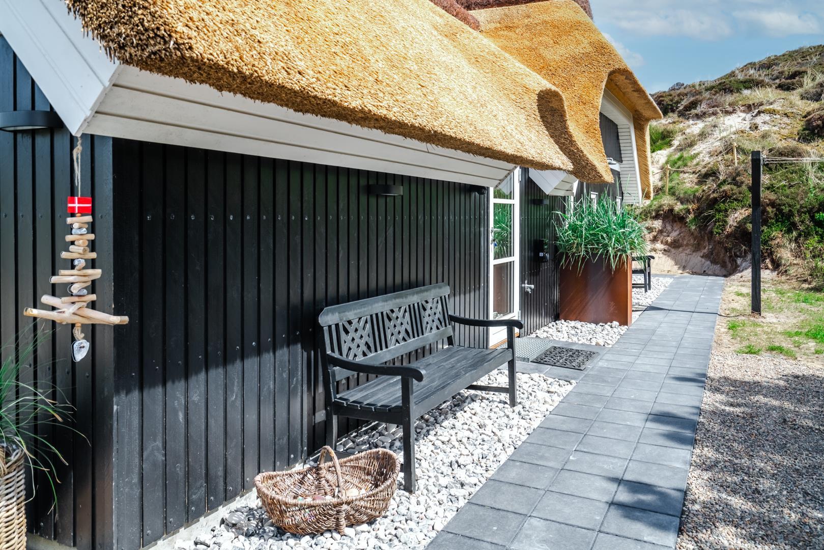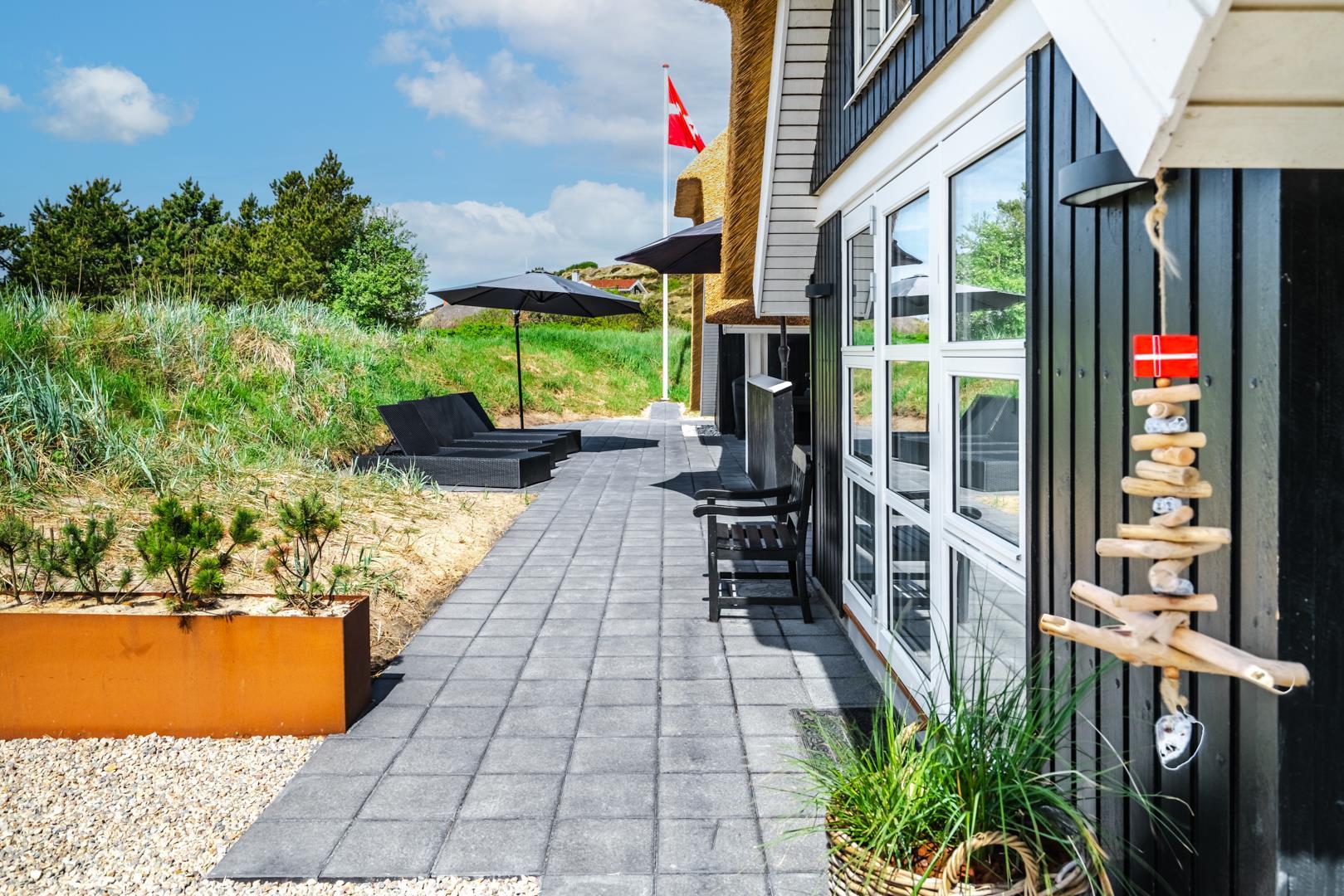 Ferien får fantastiske rammer, hvis I booker dette stråtækte sommerhus, der ligger idyllisk placeret i Henne Strands klitlandskab.