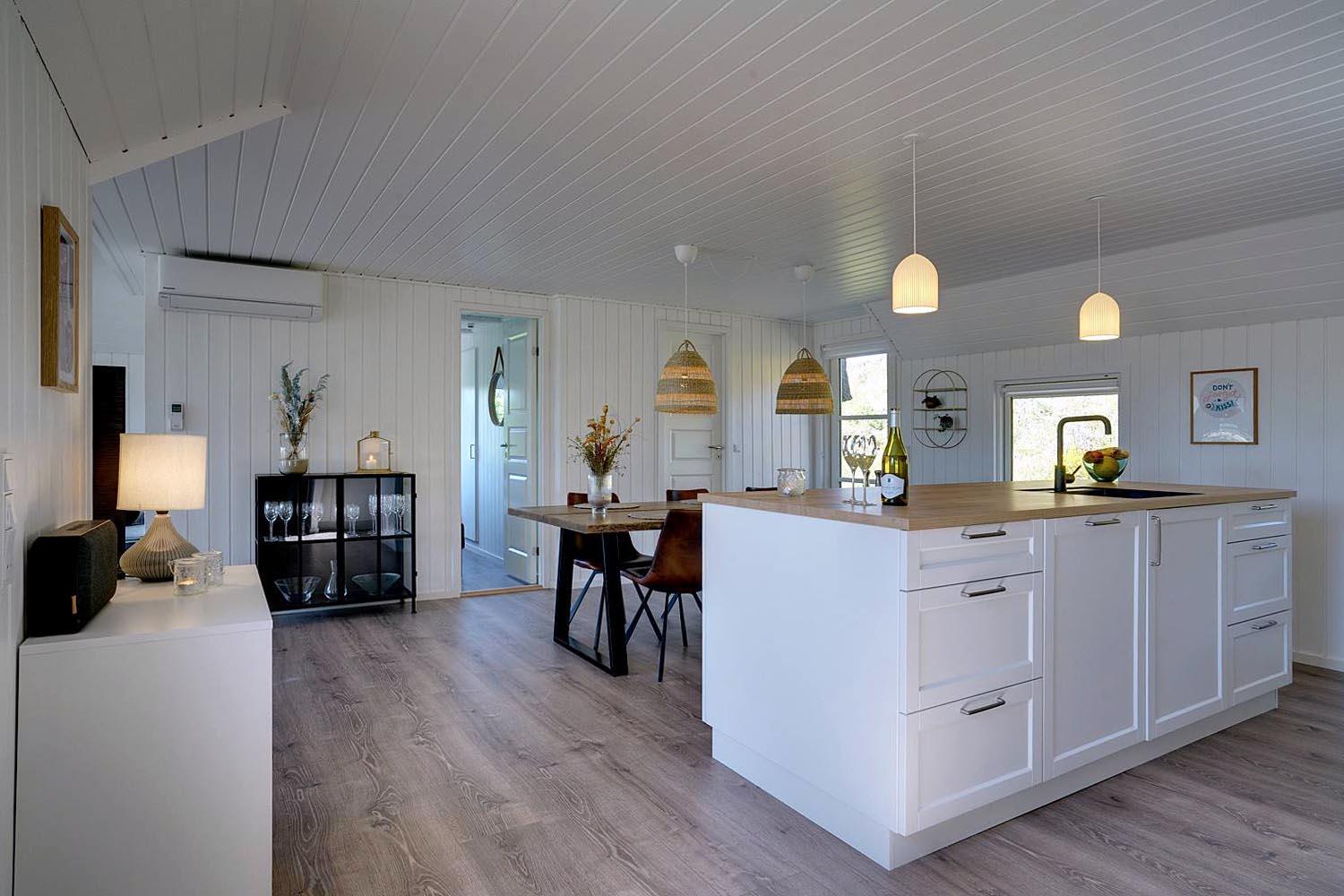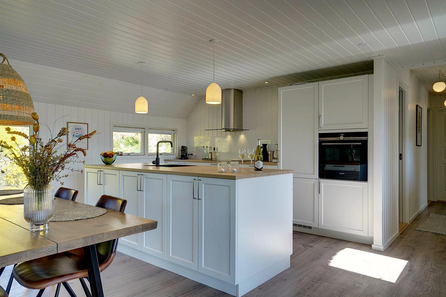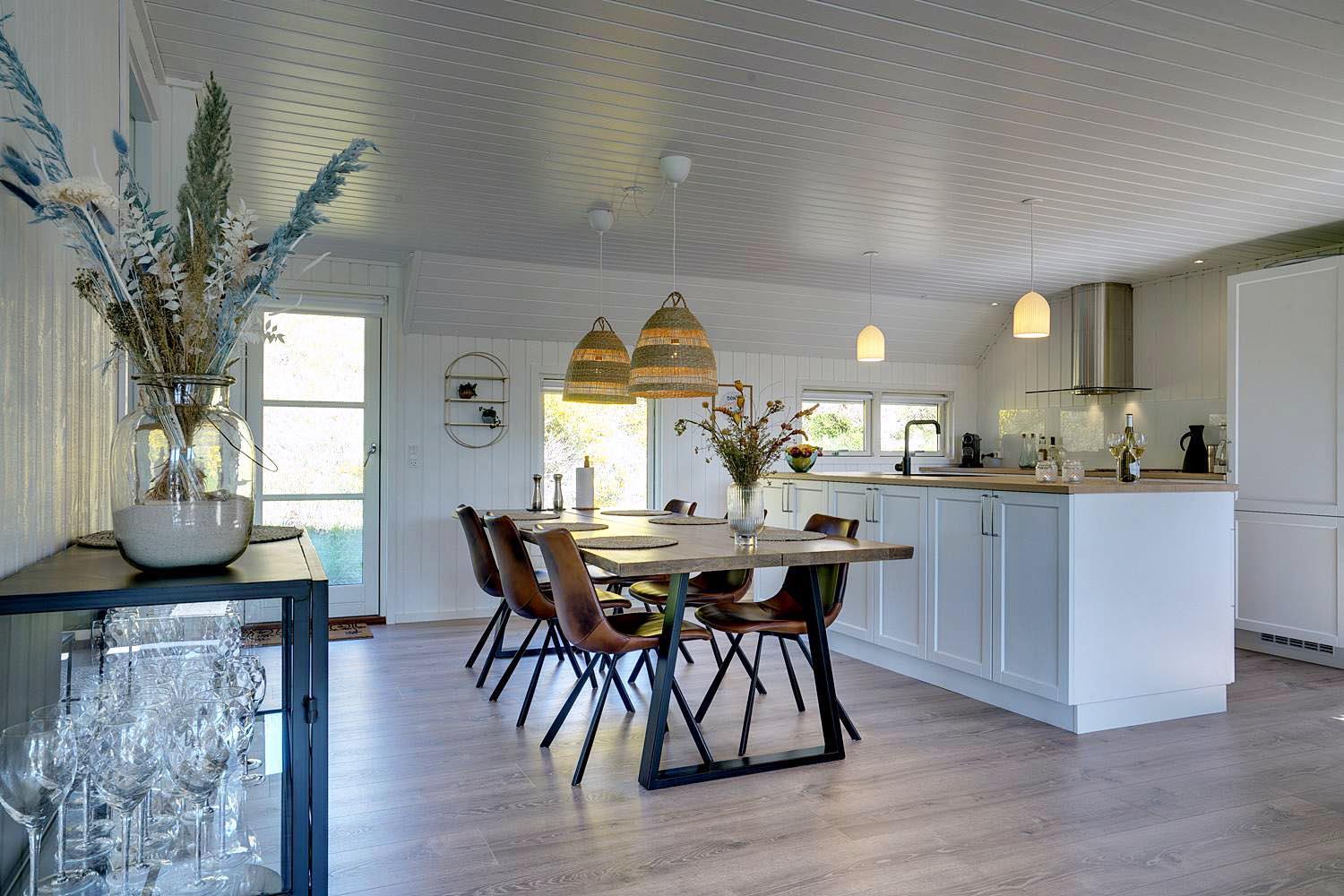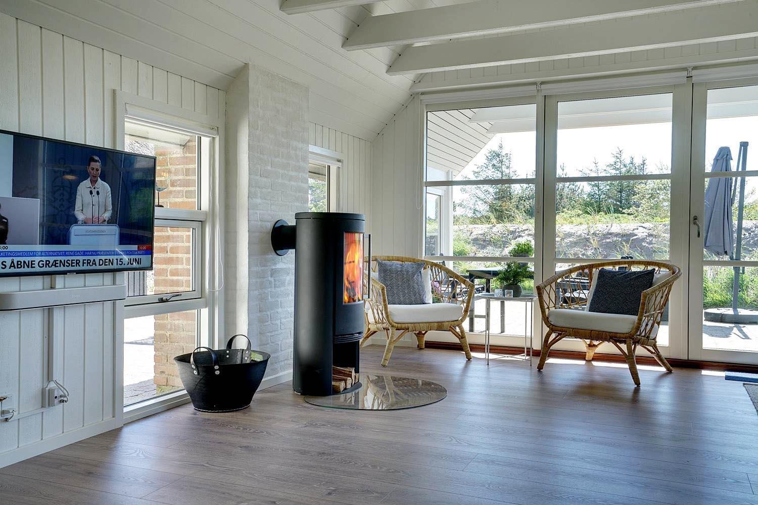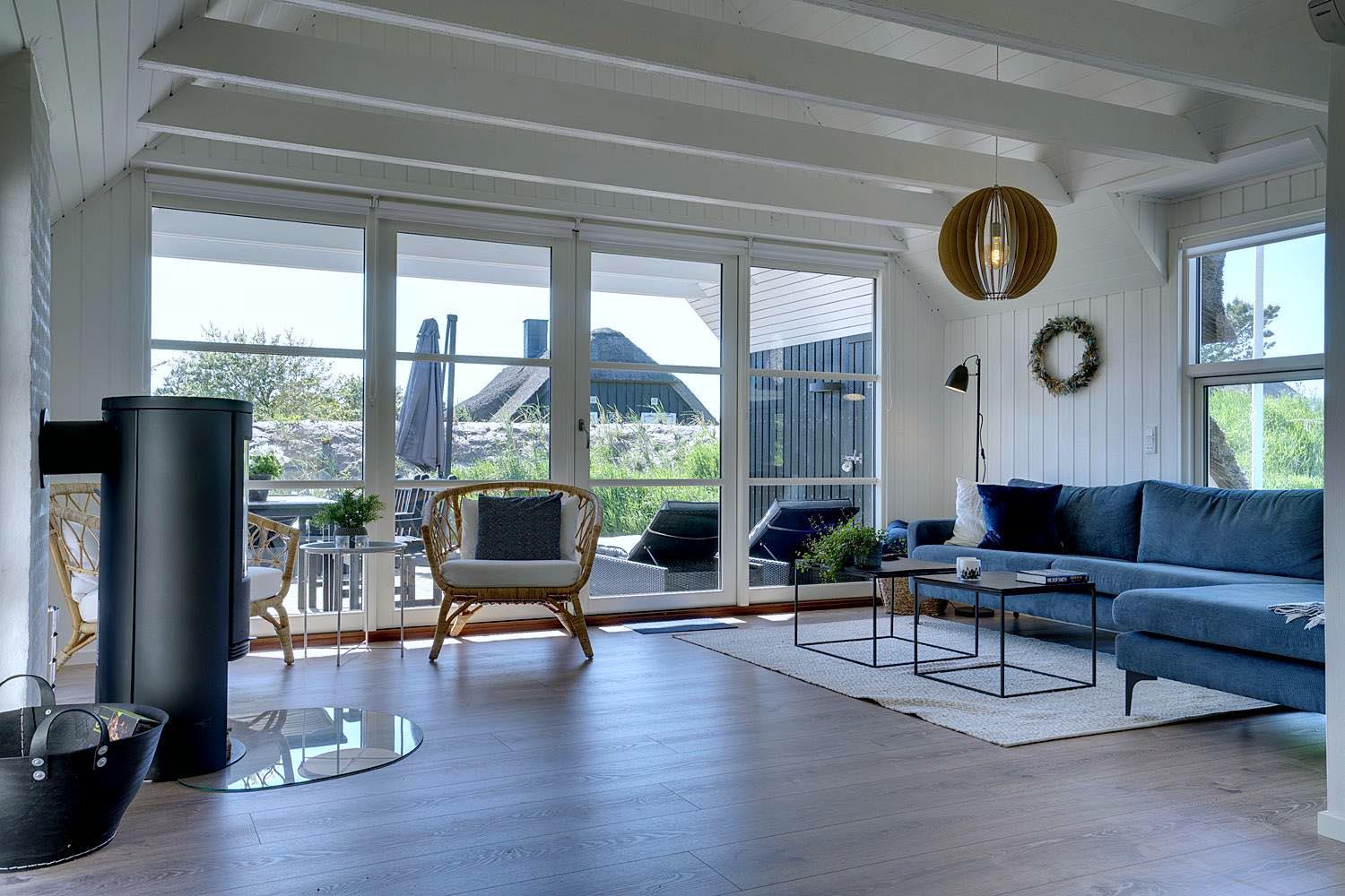Sidstnævnte terrasse er ideel til alt fra kortspil og koldskål om eftermiddagen til grillmiddag og gin tonics om aftenen, og der er direkte adgang hertil fra husets store opholdsrum.