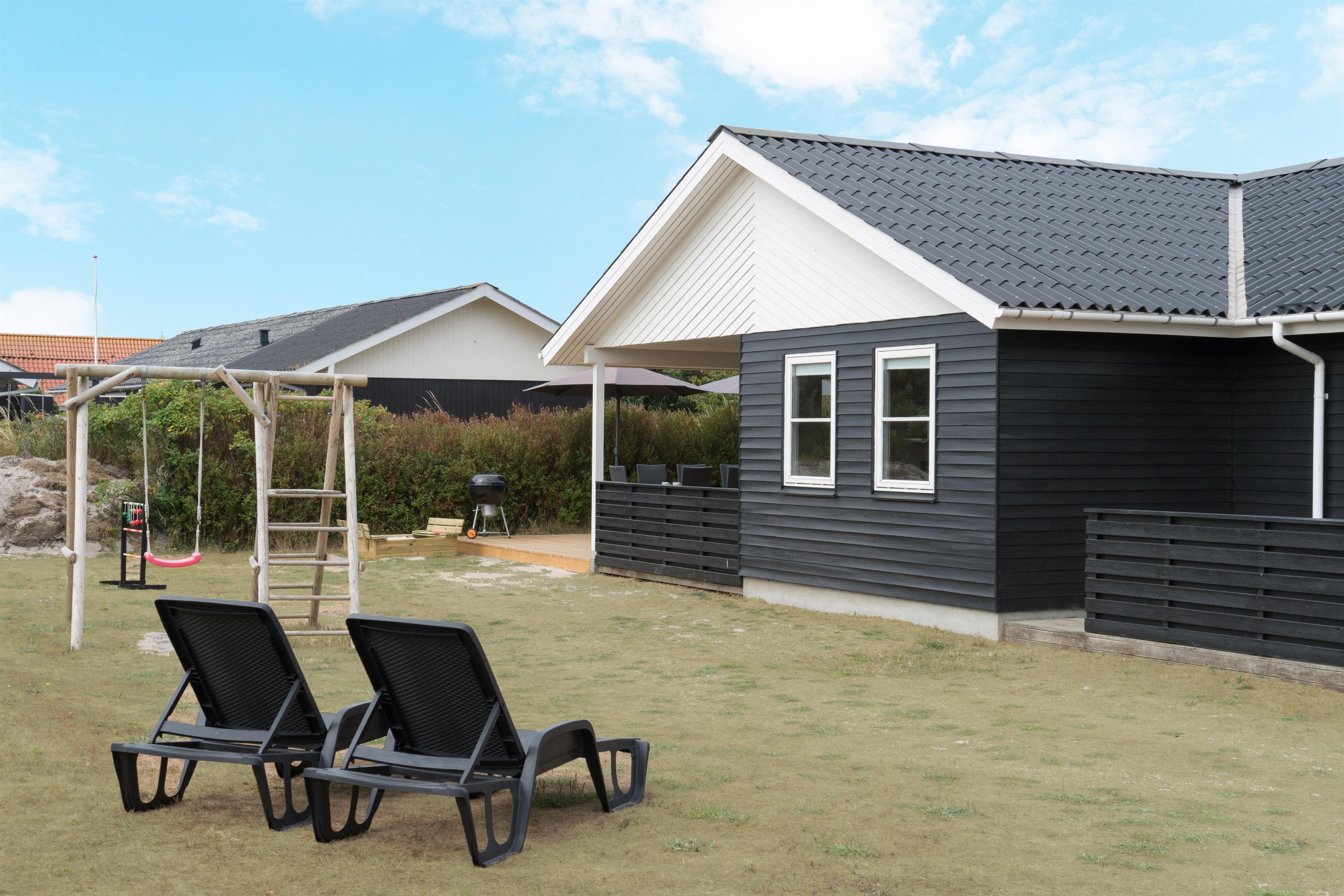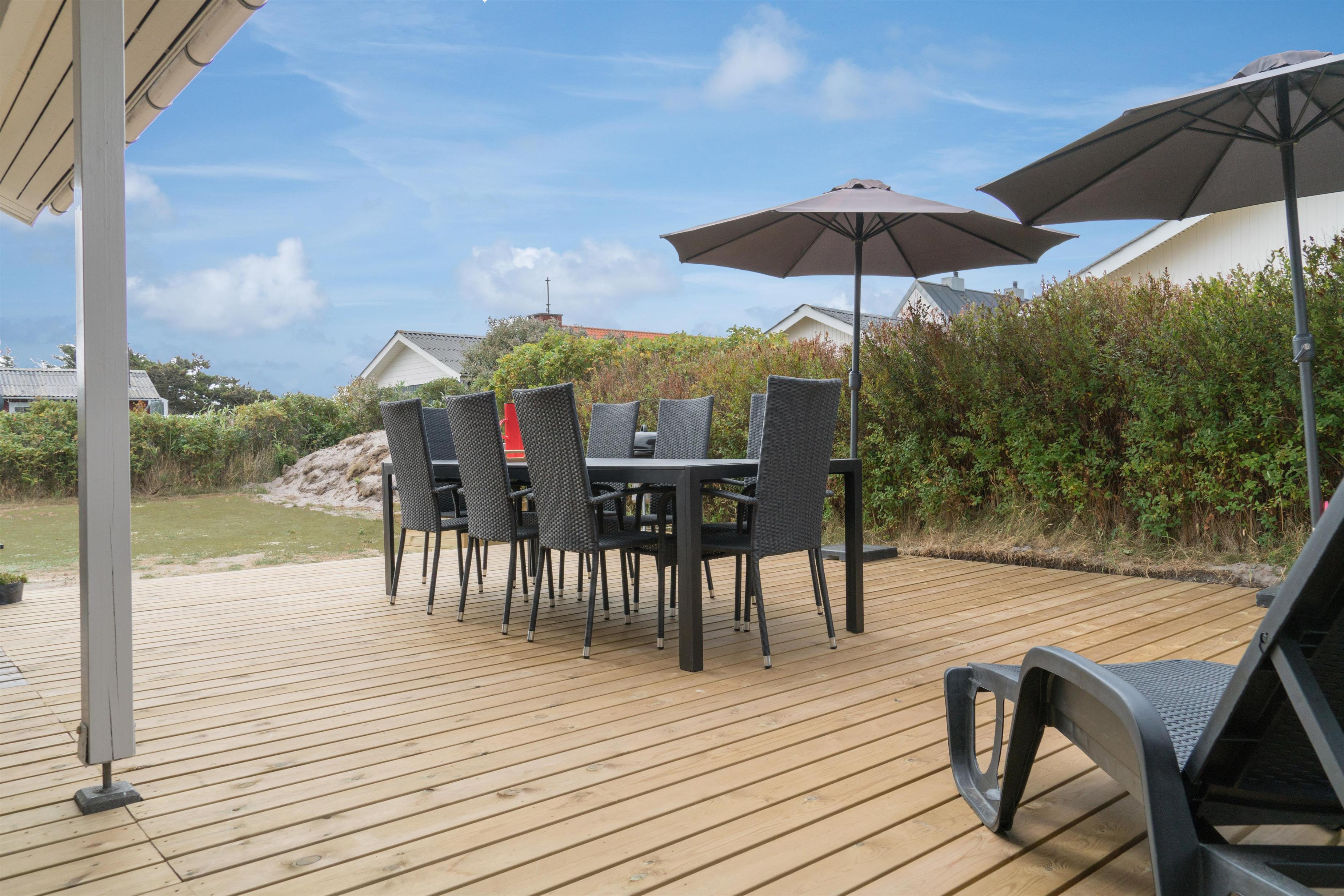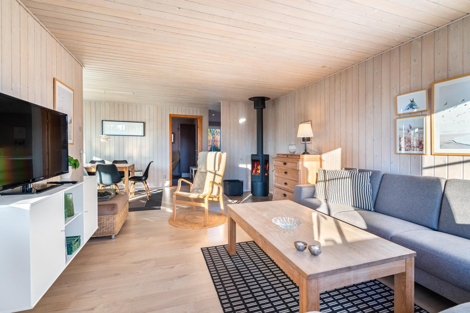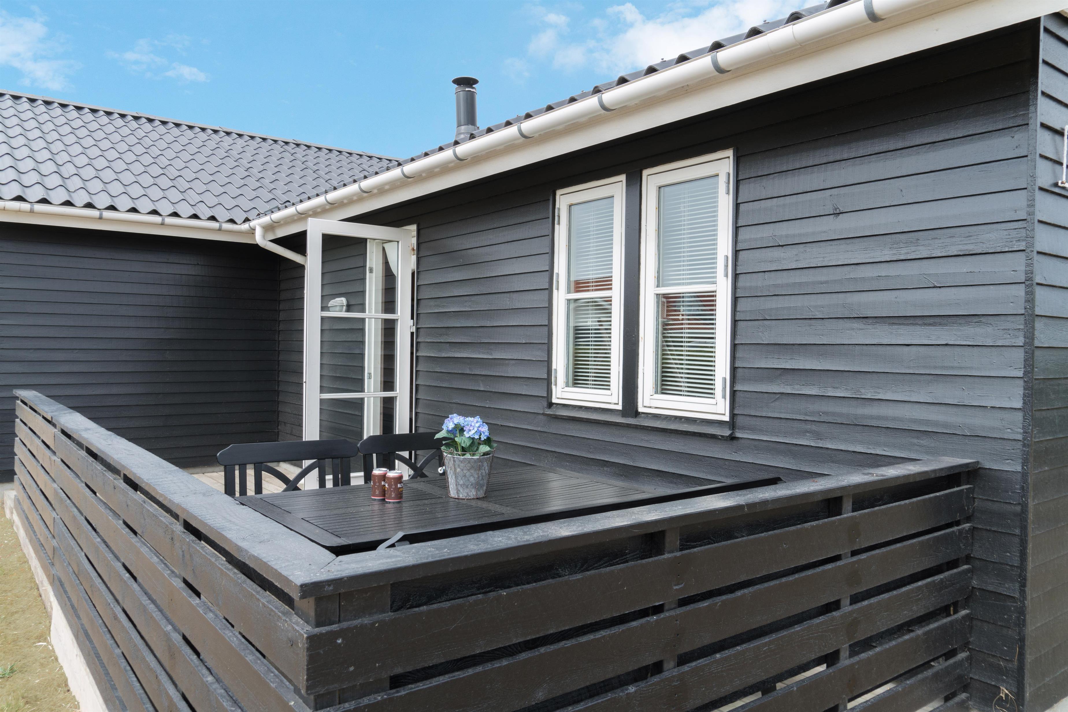 Dejligt feriehus beliggende på en skøn og børnevenlig naturgrund, meget tæt på byen og stranden og den gode handelsliv, men alligevel rolig og ugenert. Flot badeværelse. Huset har en rigtig god indretning og komfortable møbler. Fra stuen er der udgang til dejlig delvis overdækket terrasse med mange aktivitetsmuligheder for de mindste..