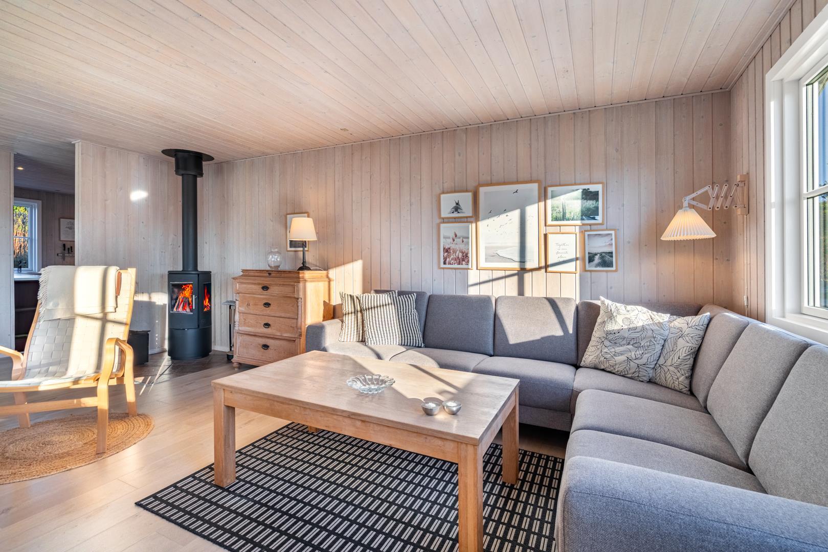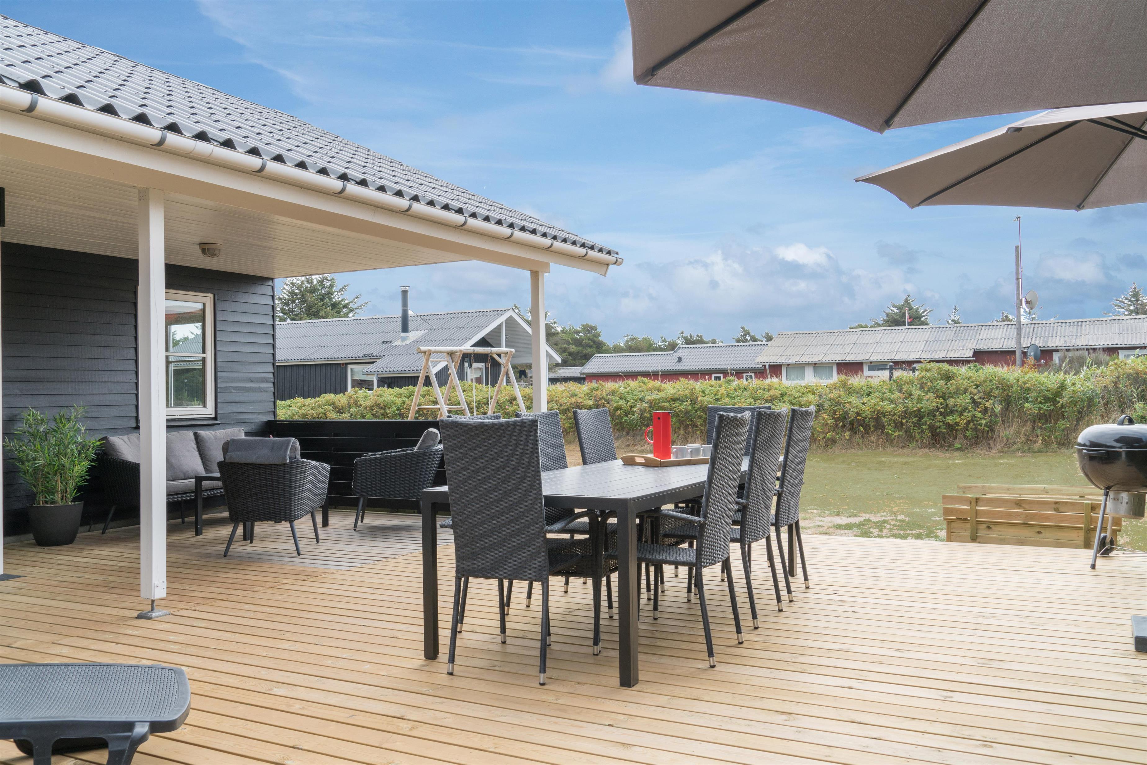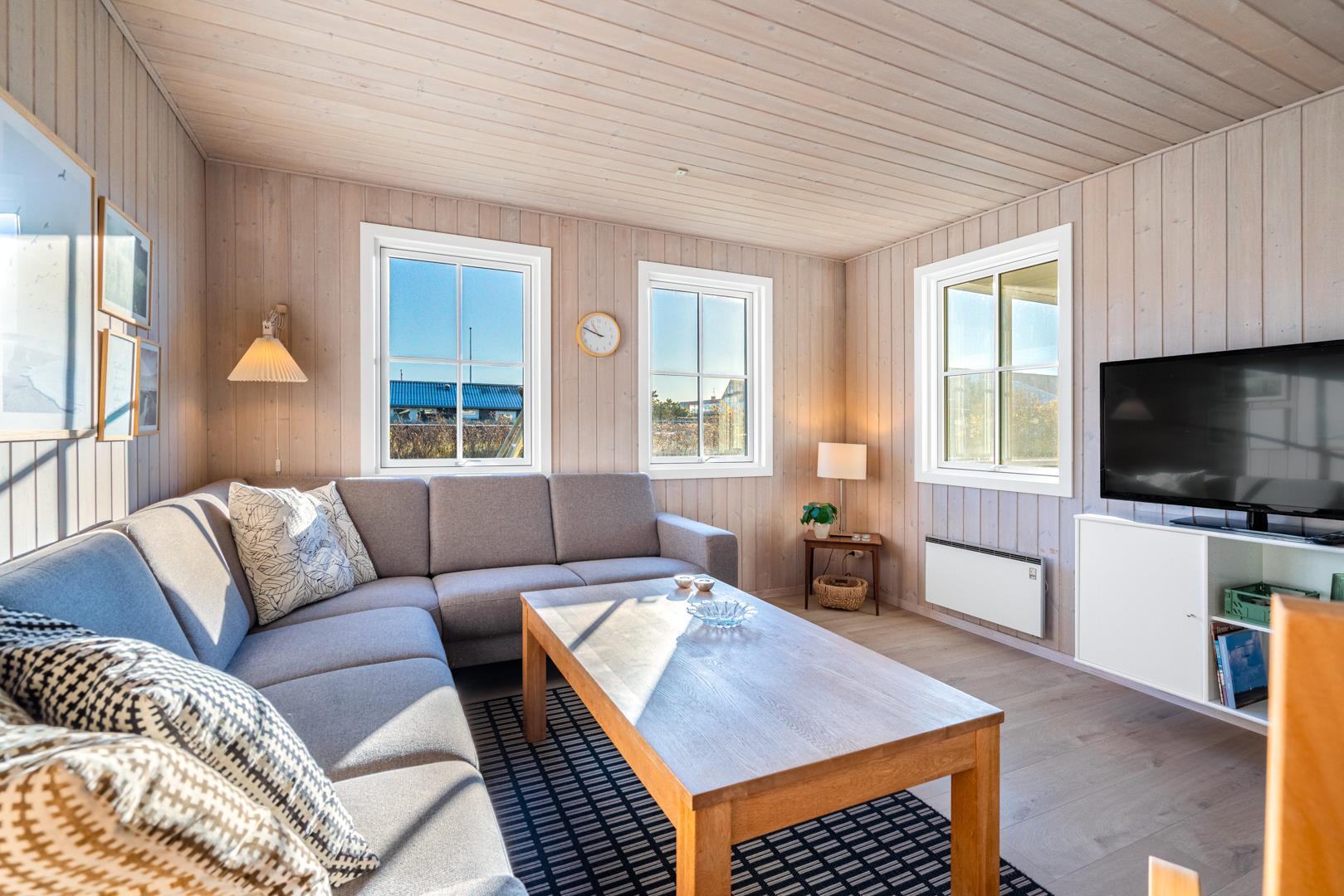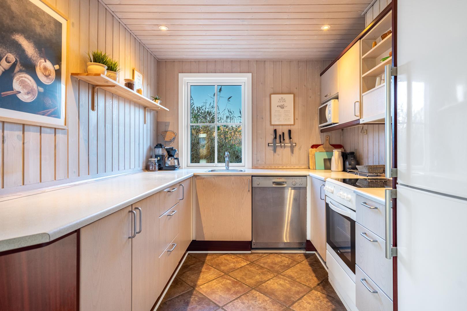 Dejligt feriehus beliggende på en skøn og børnevenlig naturgrund, meget tæt på byen og stranden og den gode handelsliv, men alligevel rolig og ugenert. Flot badeværelse. Huset har en rigtig god indretning og komfortable møbler. Fra stuen er der udgang til dejlig delvis overdækket terrasse med mange aktivitetsmuligheder for de mindste..