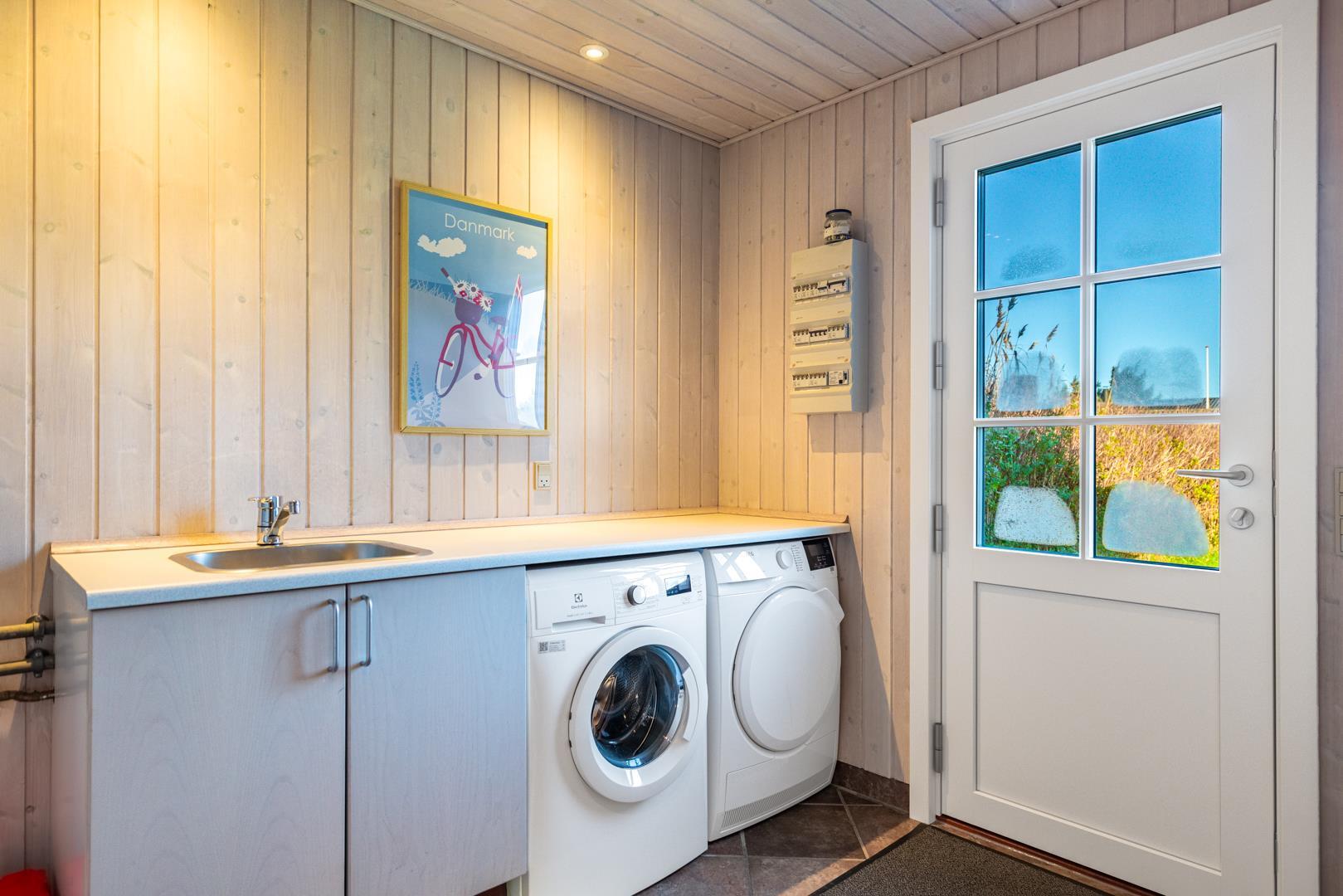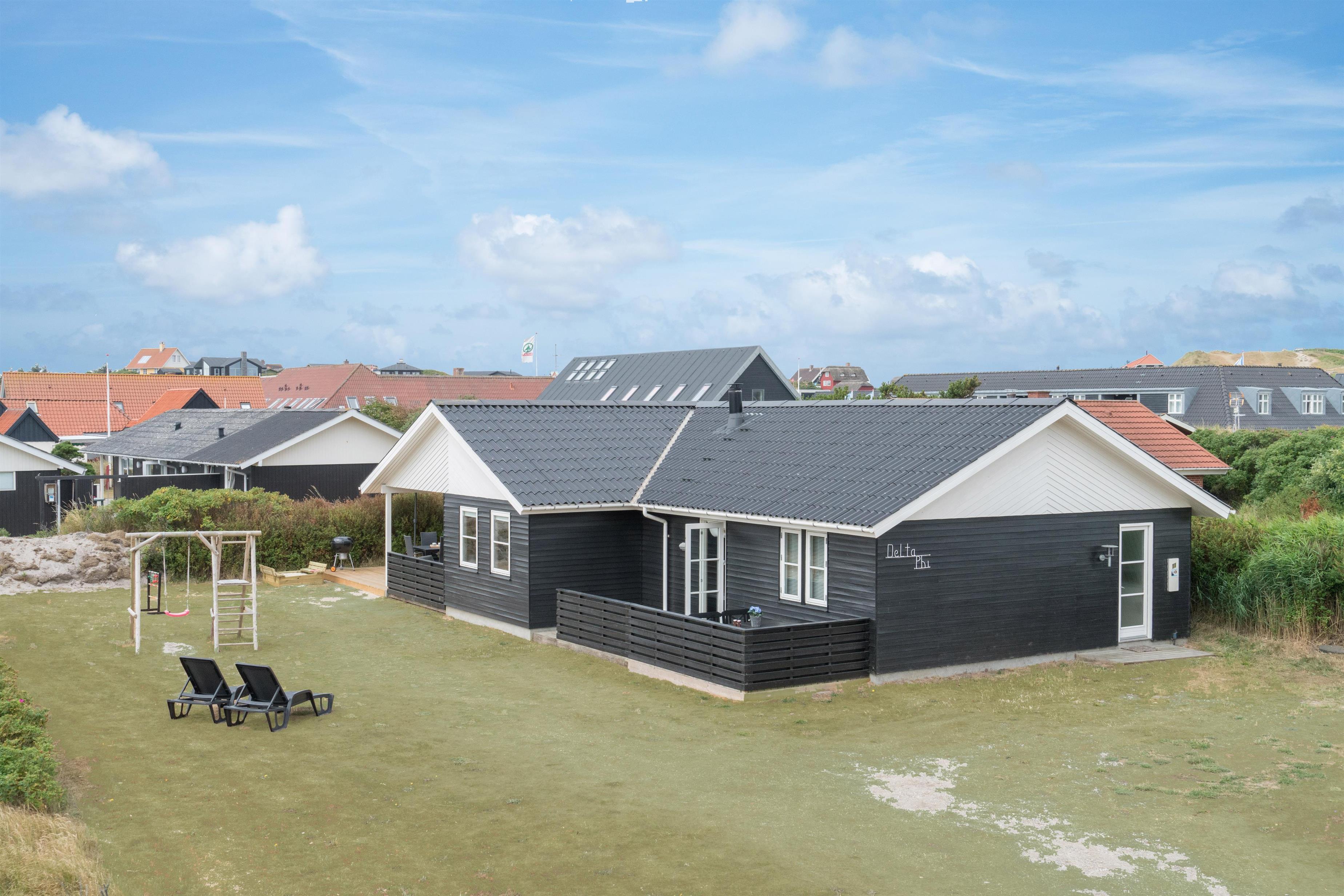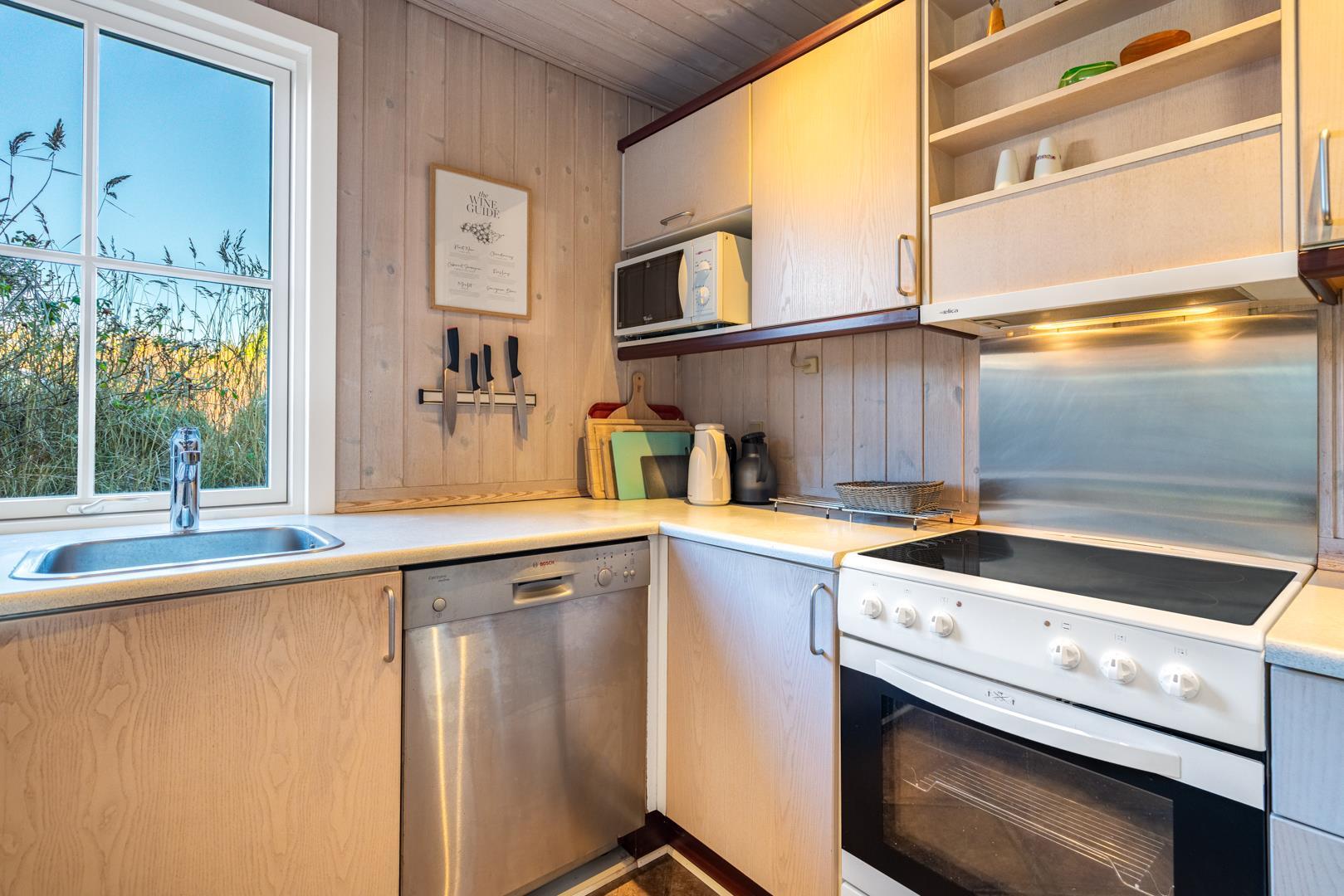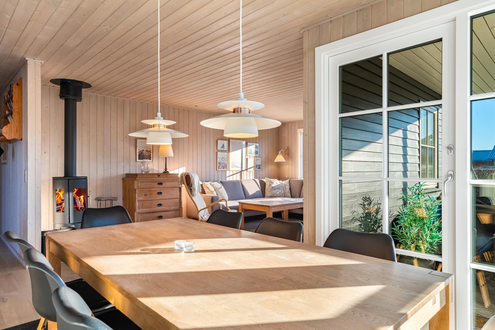 Dejligt feriehus beliggende på en skøn og børnevenlig naturgrund, meget tæt på byen og stranden og den gode handelsliv, men alligevel rolig og ugenert. Flot badeværelse. Huset har en rigtig god indretning og komfortable møbler. Fra stuen er der udgang til dejlig delvis overdækket terrasse med mange aktivitetsmuligheder for de mindste..