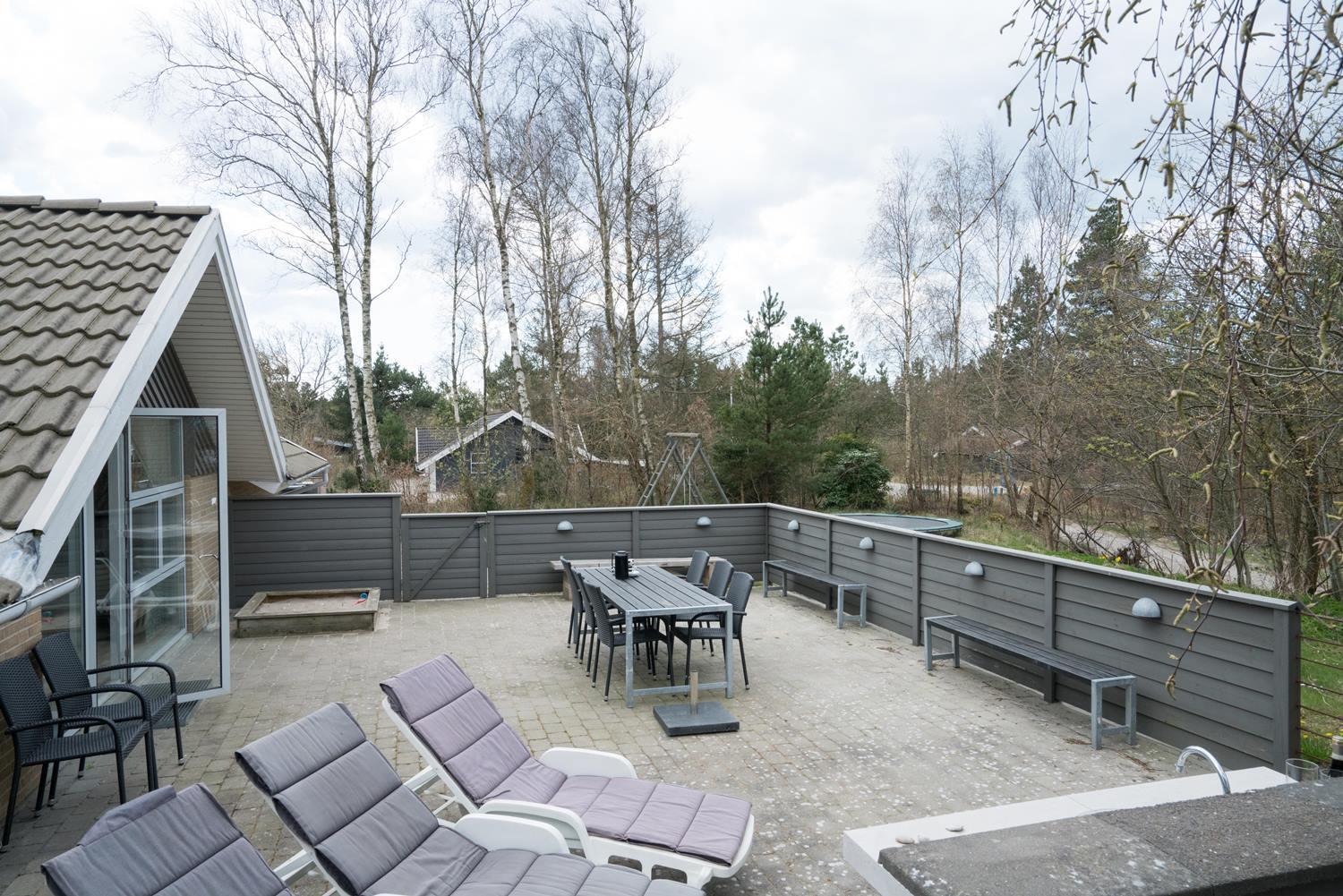 Sommerhuset har en rigtig god beliggenhed på en natur afskærmet grund, hvor der er opsat trampolin og gynger til ungerne og plads til leg og boldspil på plænen for alle. Den lukkede terrasse er udstyret med gode havemøbler og liggestole. Sommerhuset ligger i gåafstand fra Henne Golfklub samt Blåbjerg Plantage, hvor der er gode natur- samt vandre stier.