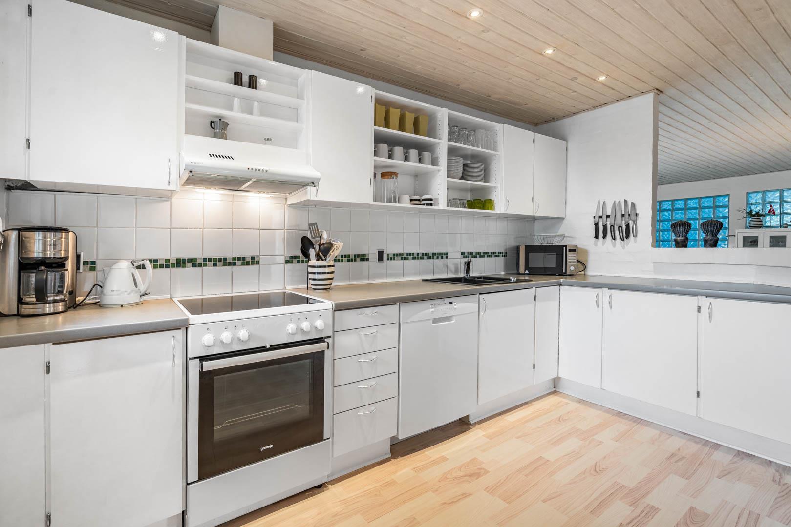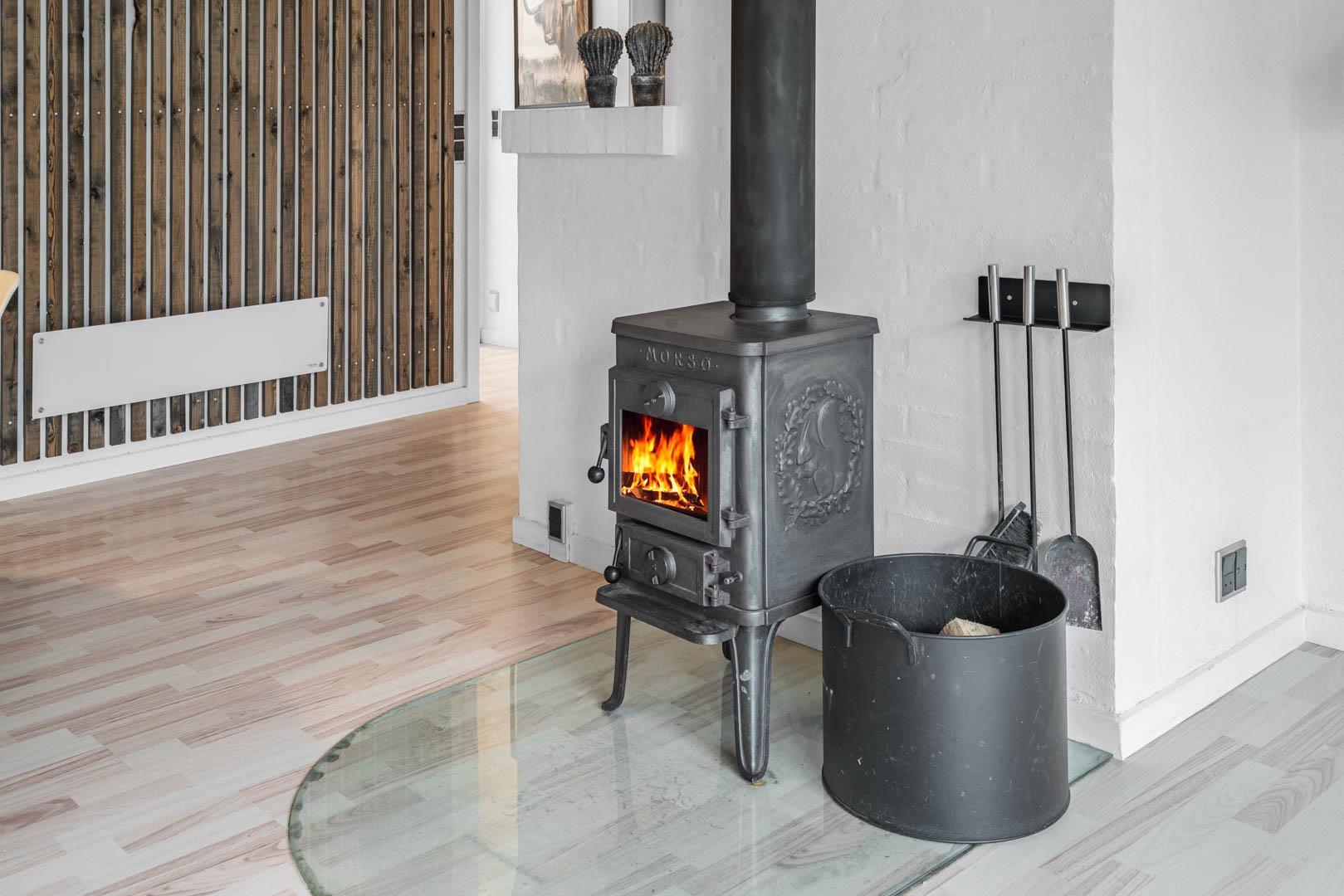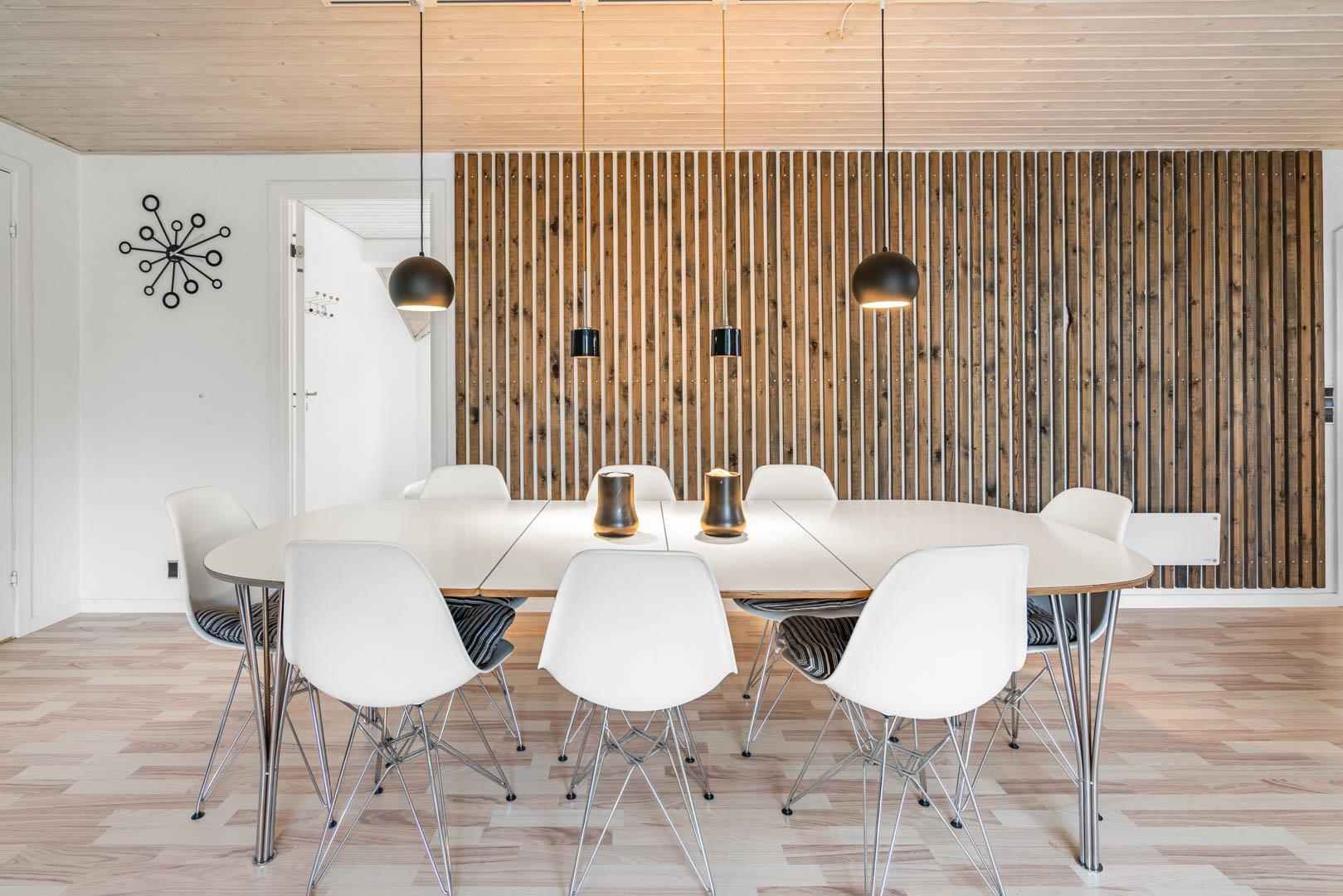 Når dagen er gået med hygge og leg, kan I smide jer med en i den rummelige, hyggelige og moderne stue og nyde varmen fra sommerhusets brændeovn. Sommerhuset er praktisk indrettet til 2 familier og der er derfor god plads til 8 personer.
