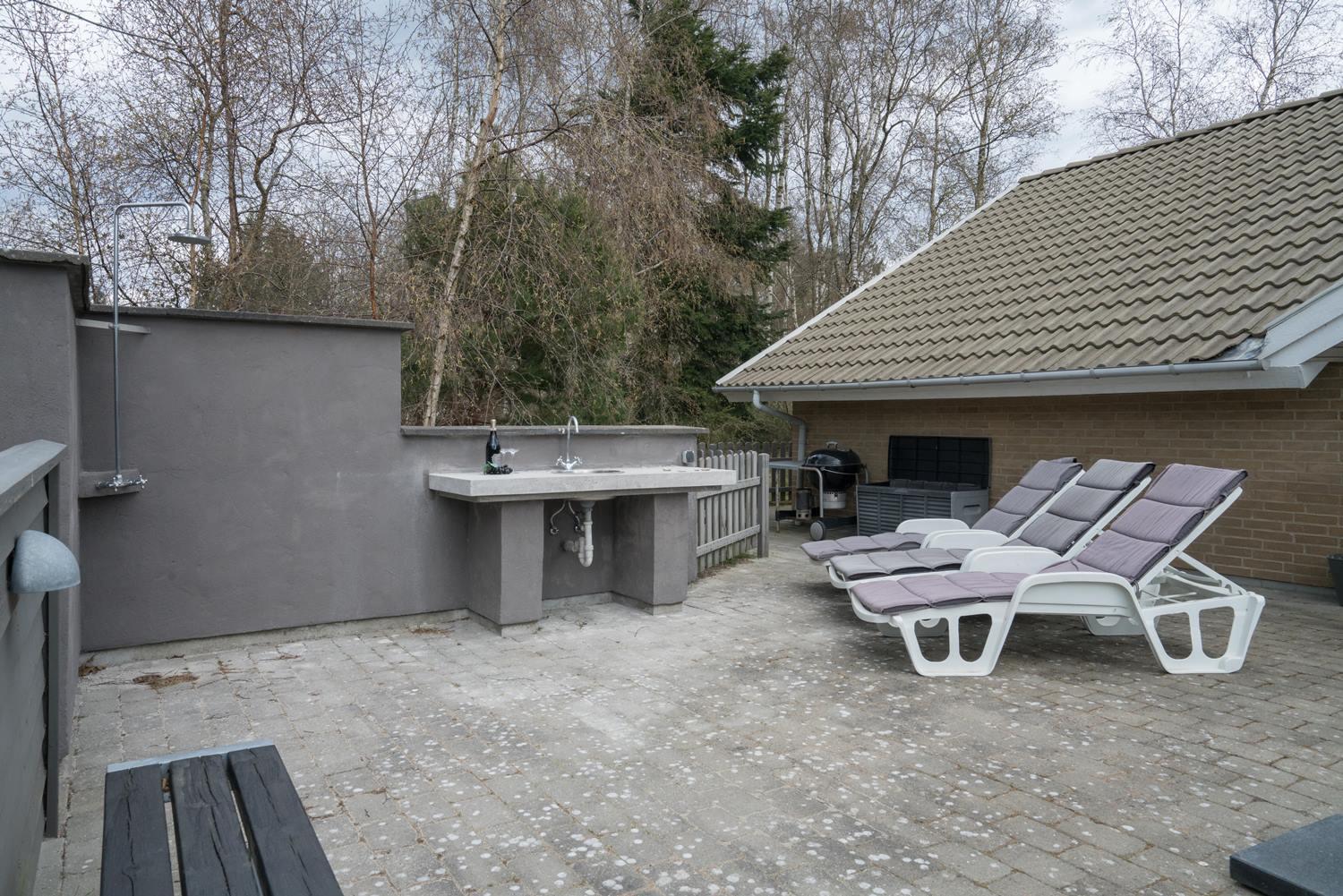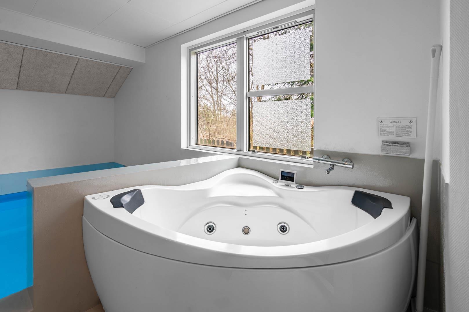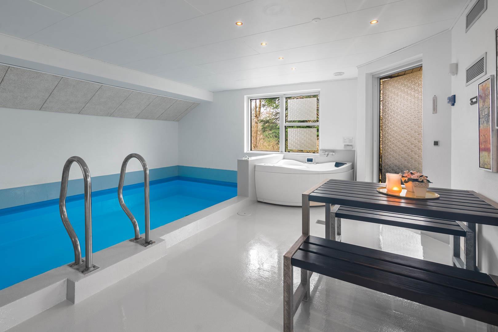 Flot og gennem renoveret sommerhus med selvstændig wellness afd. med swimmingpool med luft til vand varmepumpe til strømbesparelse, spabad og med adgang til sauna. Huset er flot renoveret og fremstår derfor lyst og indbydende overalt. Stor terrasse med udendørs køkken og ude bruser. Den herlige wellnes afdeling er husets absolutte favorit for børn og barnlige sjæle. Her er mulighed for mange timers leg og samvær for både store og små.