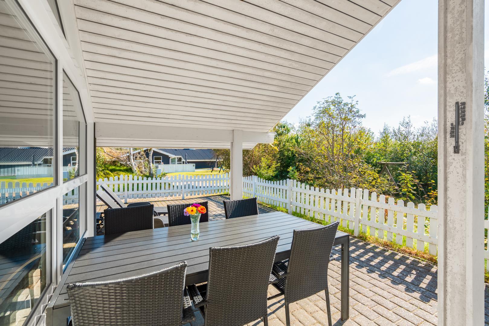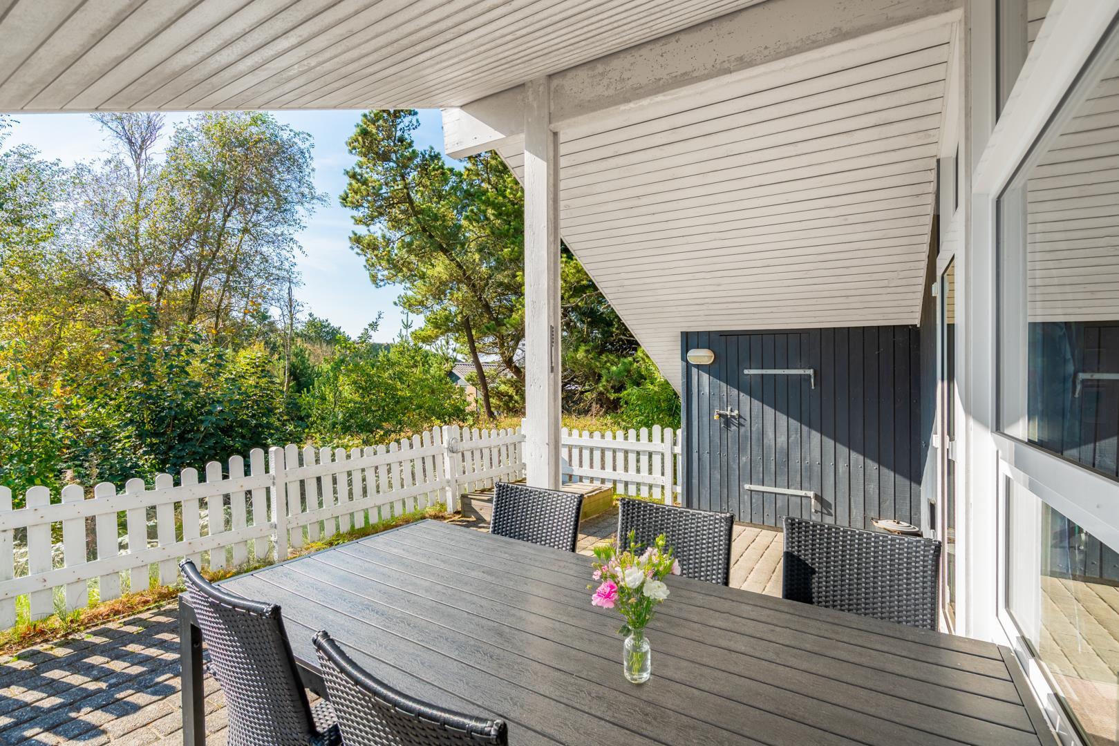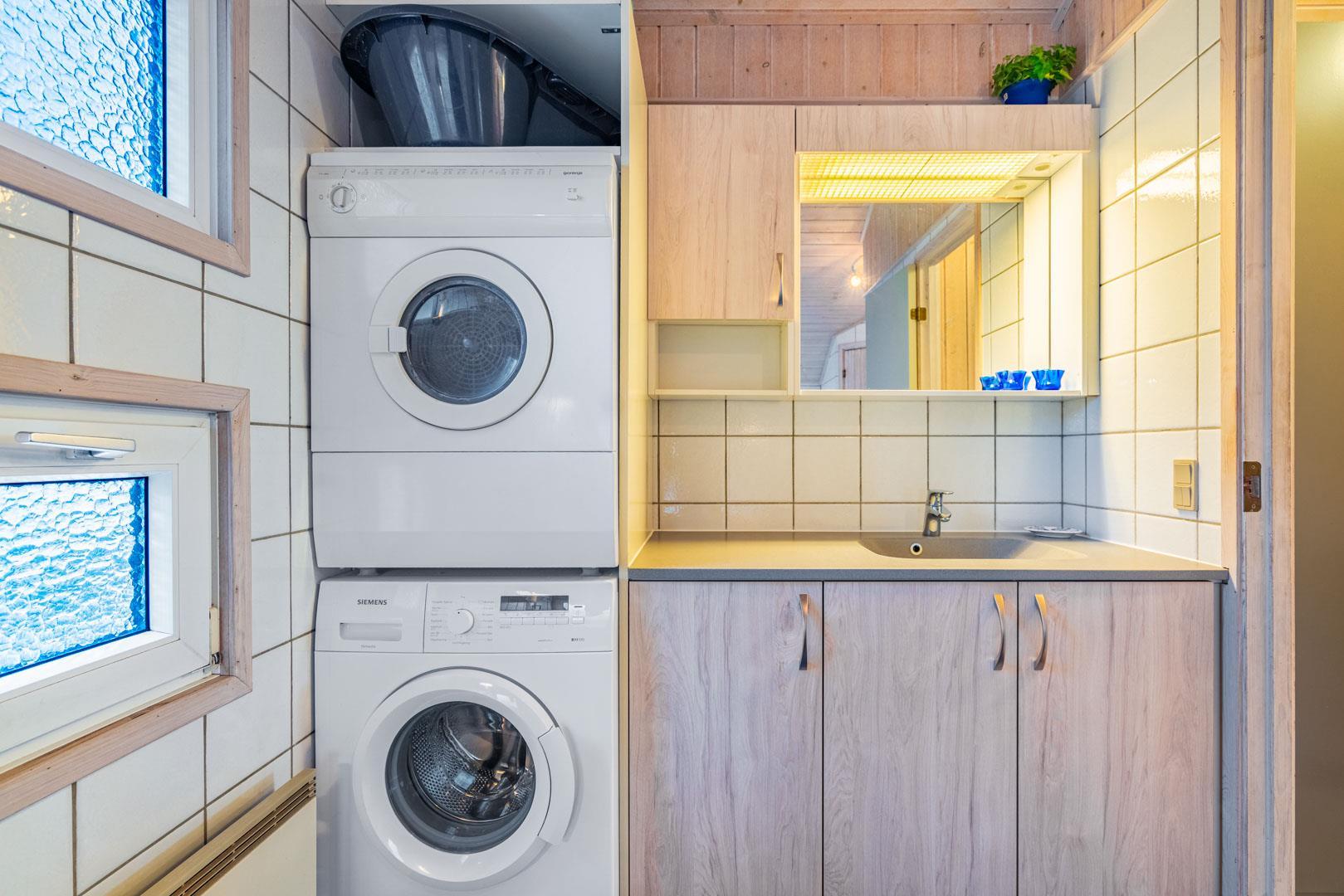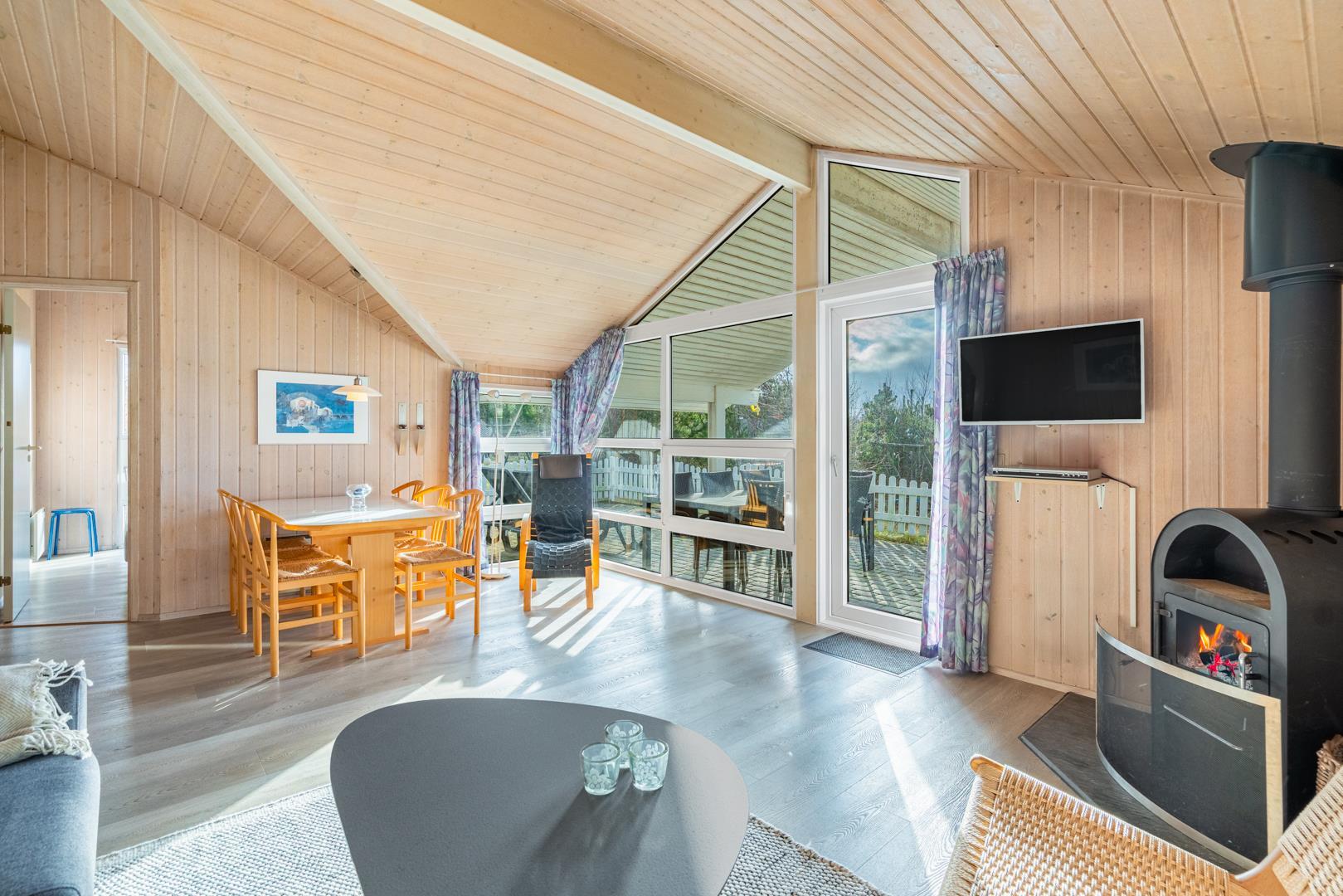 I feriehuset finder du et flot og veludstyrede køkken, som ligger i åben forbindelse med stuen. Så her går du ikke glip af familiehyggen selvom det er dig der står for madlavningen.