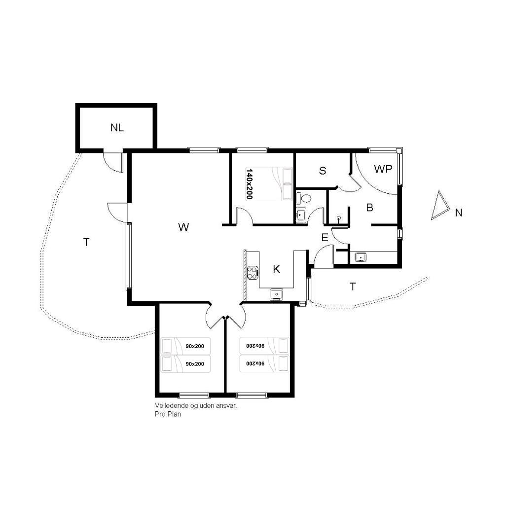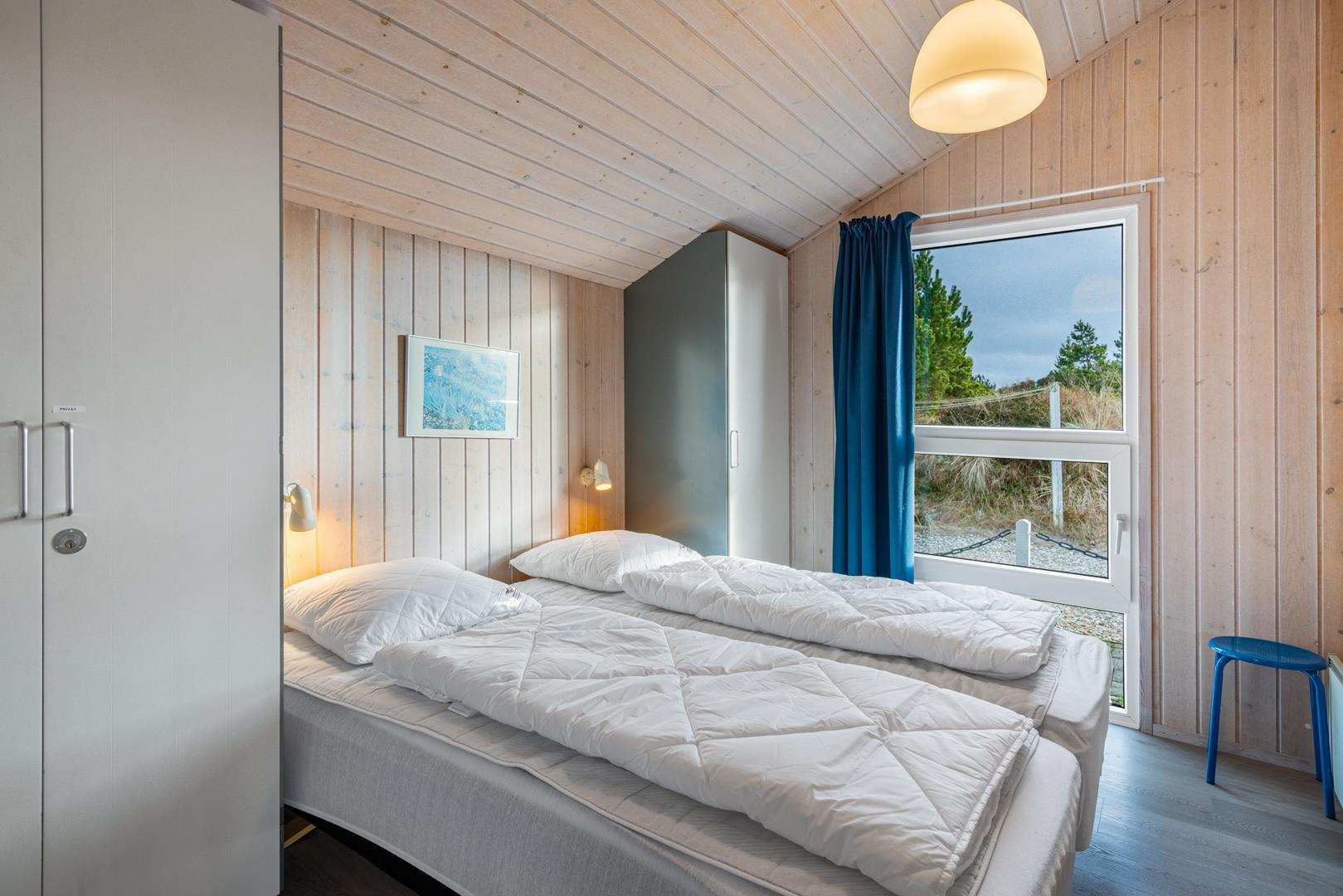Sengestørrelse: 2 dobbeltsenge med 2 madrasser 90 x 200 cm + 1 dobbeltseng 140 x 200 cm.