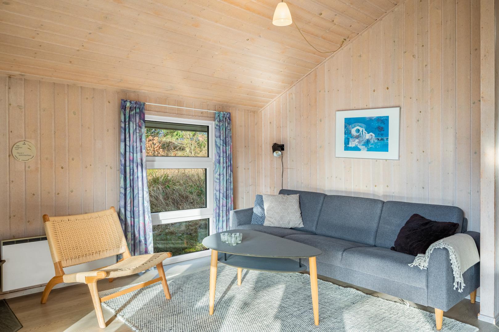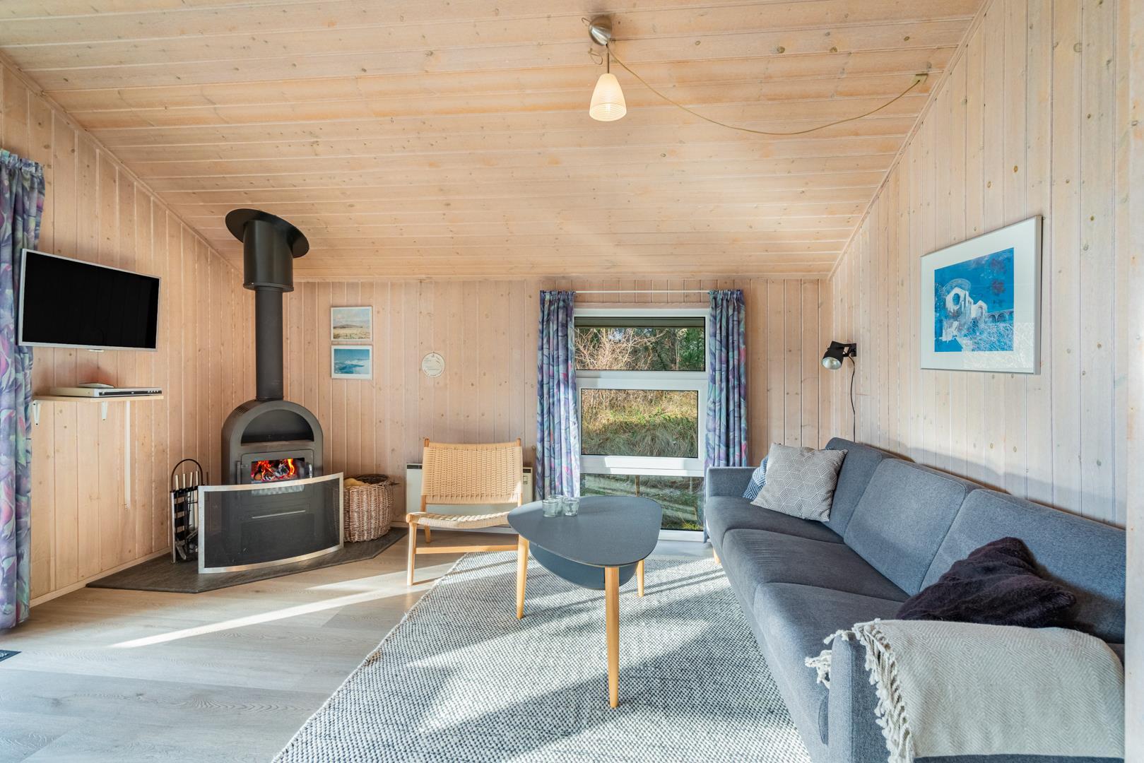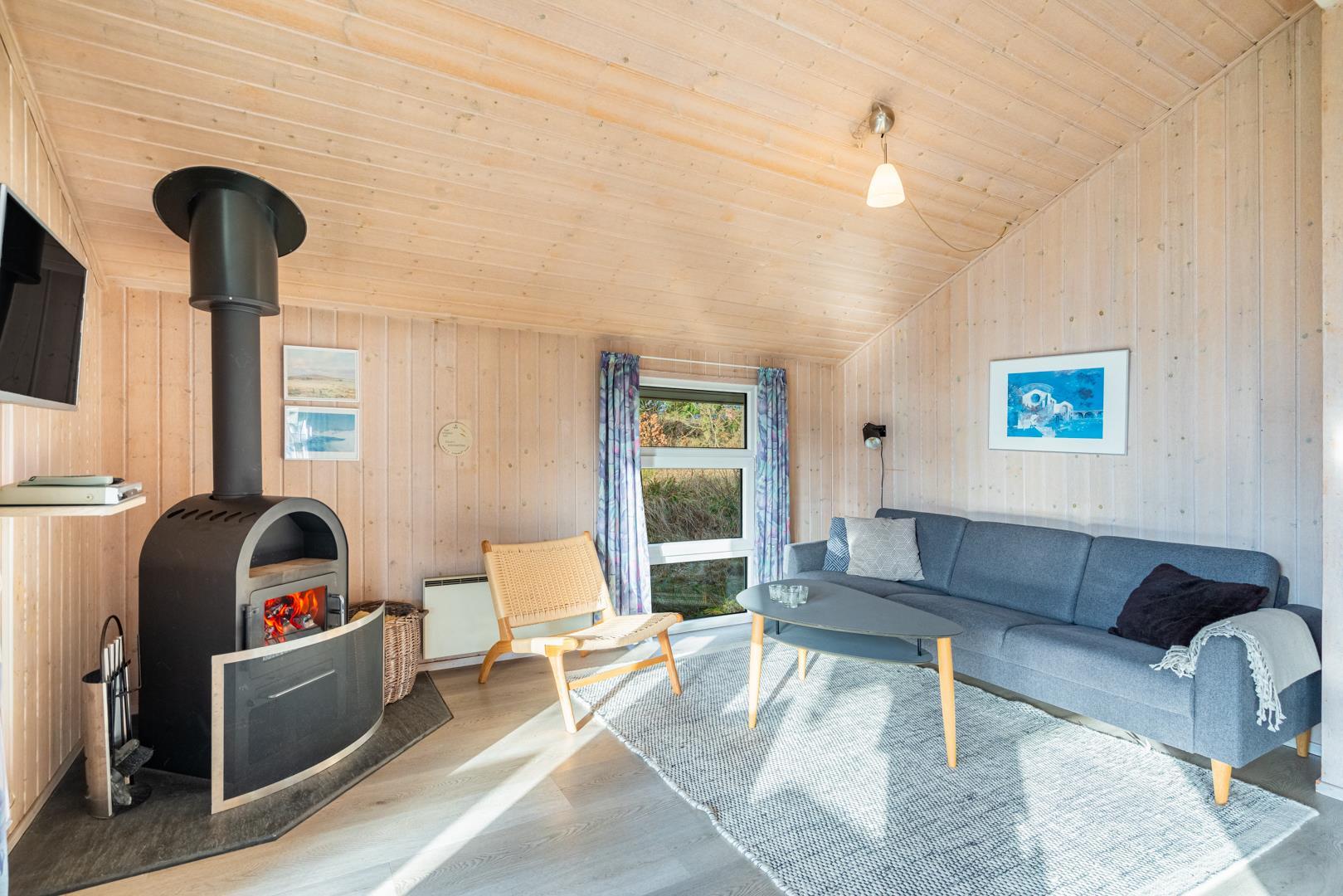 Velkommen til dette charmerende og velholdte sommerhus, beliggende i rolige og naturskønne omgivelser ved enden af en blind vej, hvilket giver en følelse af fred og privatliv. Den indbydende stue med brændeovn tilføjer varme til de køligere måneder og skaber den perfekte ramme for hyggelige stunder. Fra stuen er der direkte udgang til en delvis overdækket terrasse, perfekt til både afslapning og måltider udendørs.