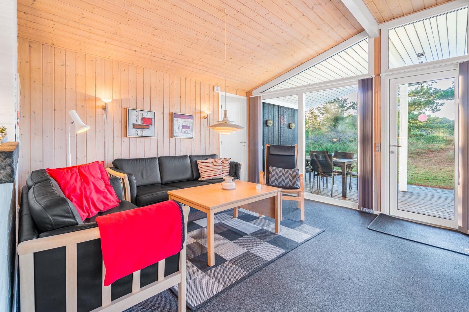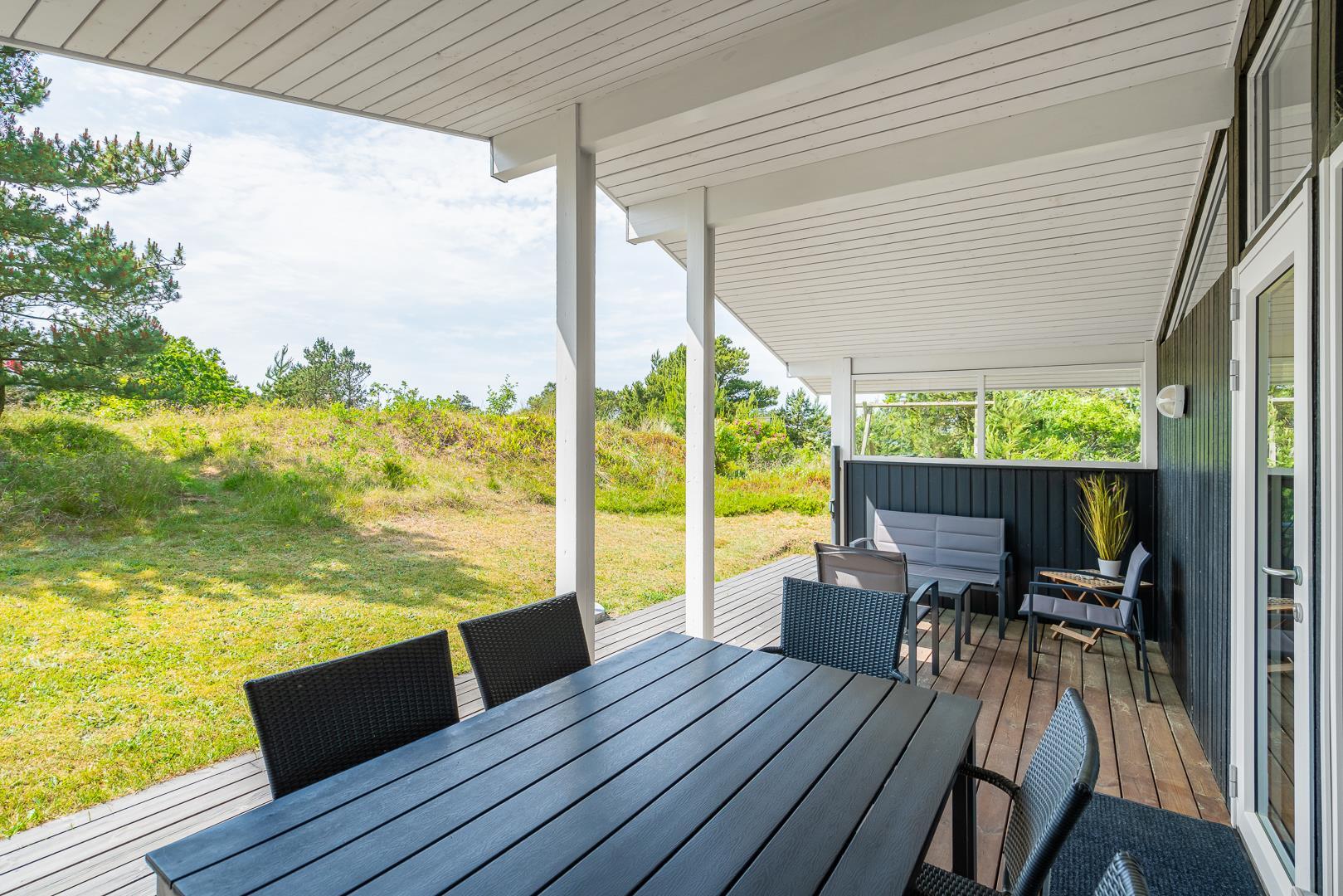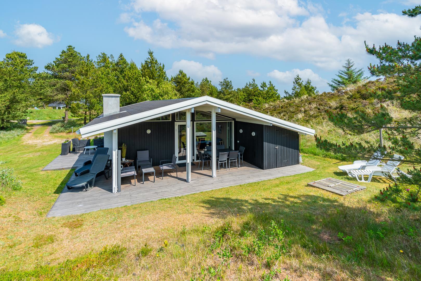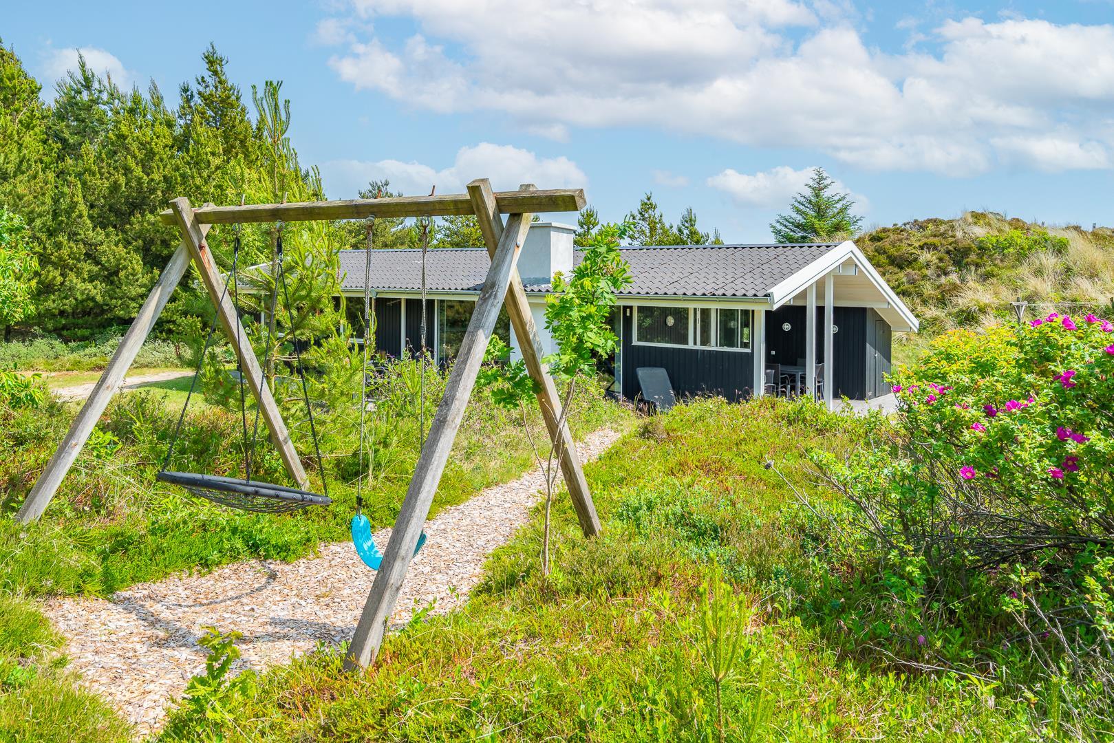Rundt om huset findes desuden flere gode terrasseområder, som giver mulighed for at nyde solen og naturen hele dagen – uanset tidspunkt. Et sommerhus med masser af charme og praktiske faciliteter – klar til at danne rammen om en skøn ferie i Henne Strand.