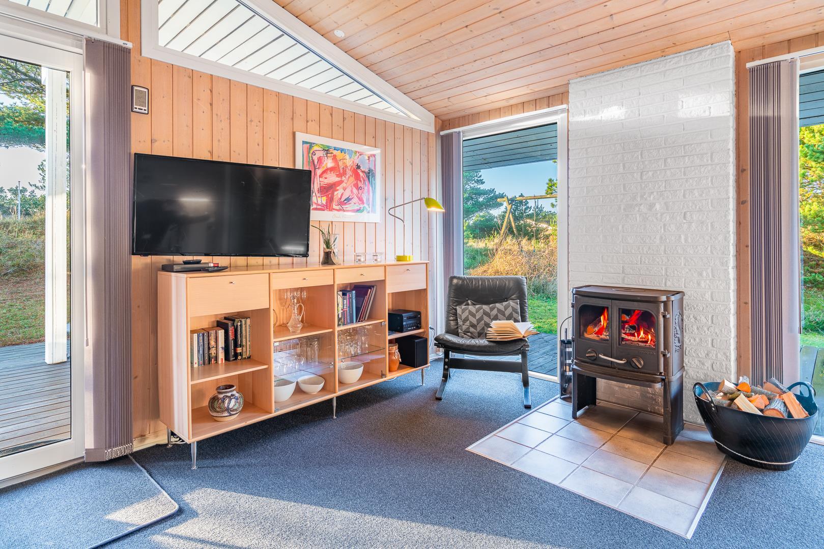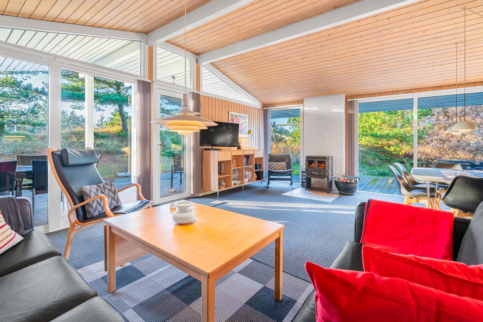 Komfort og hygge med sauna, brændeovn og flere terrasser