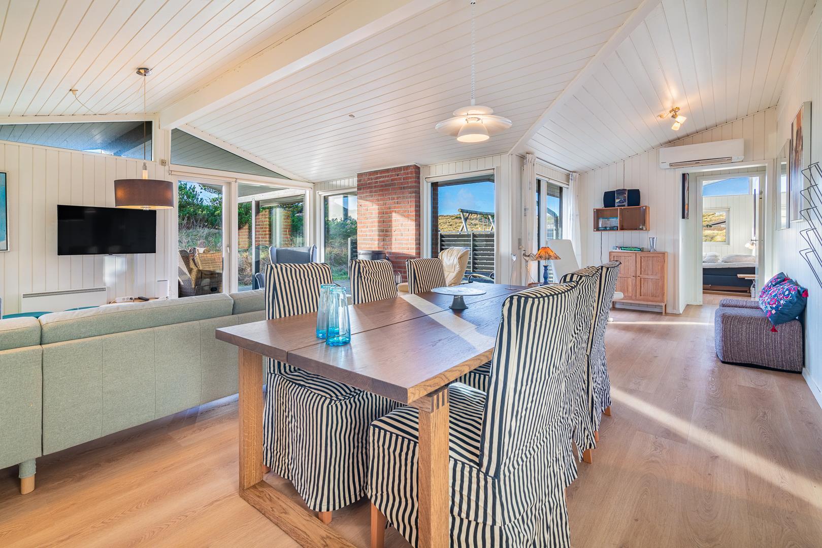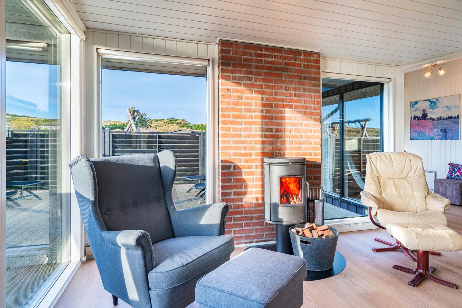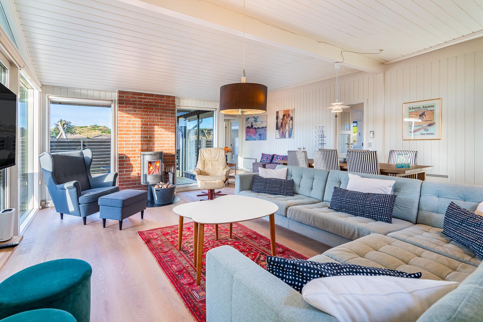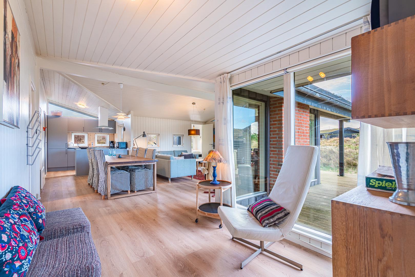 Husets hjerte er det store, åbne fællesrum, hvor stue og køkken smelter sammen og skaber en fantastisk atmosfære med plads til samvær. Fra køkkenet og stuen er der direkte udgang til en skøn terrasse, hvor du kan nyde læ og udsigt til den smukke natur. Med terrasser på hele to sider af huset er der rig mulighed for at fange solens stråler fra morgen til aften – uanset om du foretrækker en stille morgenkaffe eller en hyggelig grillmiddag i solnedgangen.
