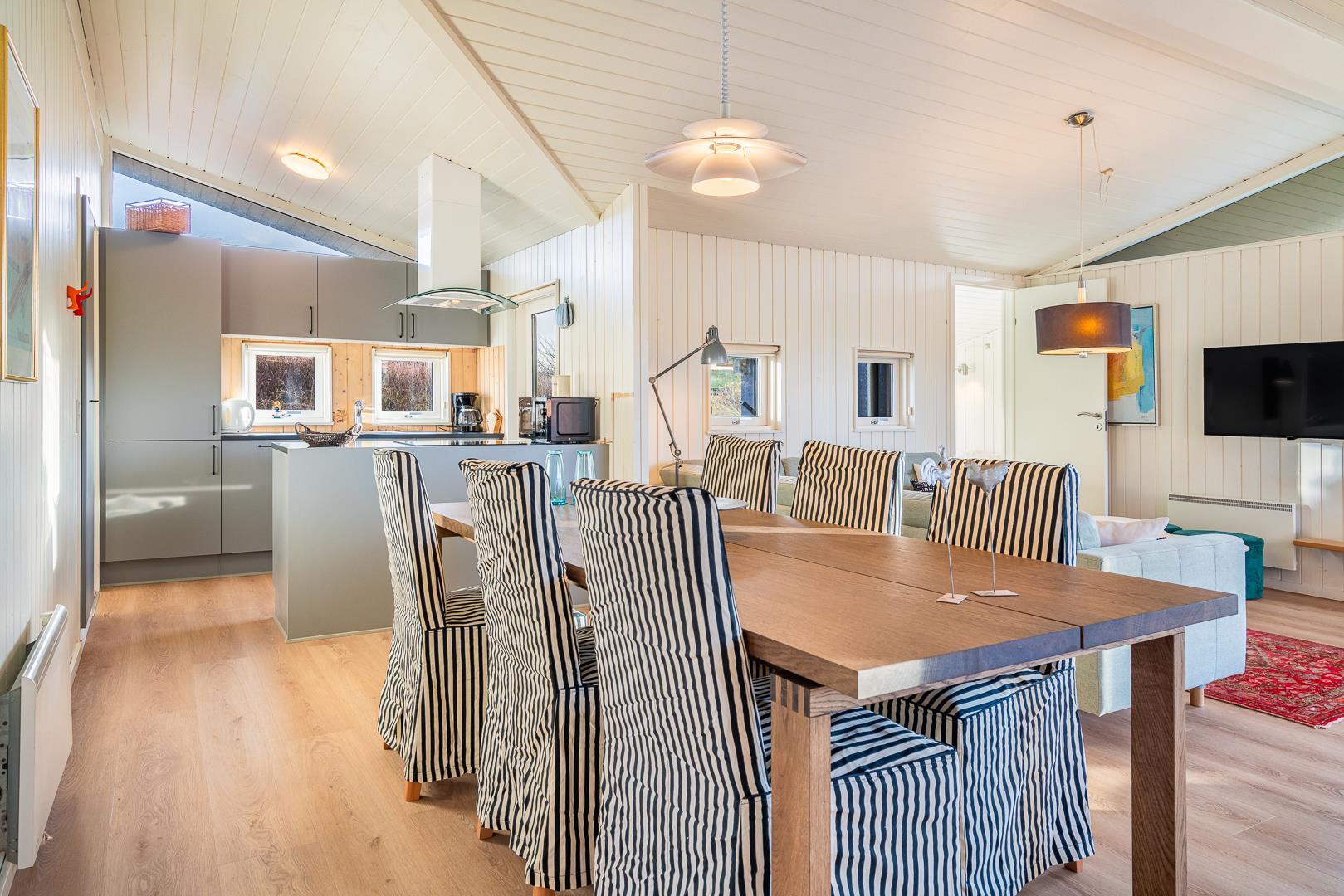 På en dejlig naturgrund, tilbagetrukket fra vejen og omgivet af fred og ro, finder du dette skønne, rummelige og moderniserede feriehus. Huset fremstår lyst og indbydende Det perfekte sted til afslapning og hygge med familie og venner. Huset har i 2024 fået nyt køkken og nyt trægulv i stuen.