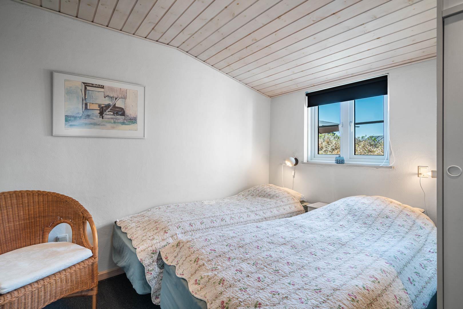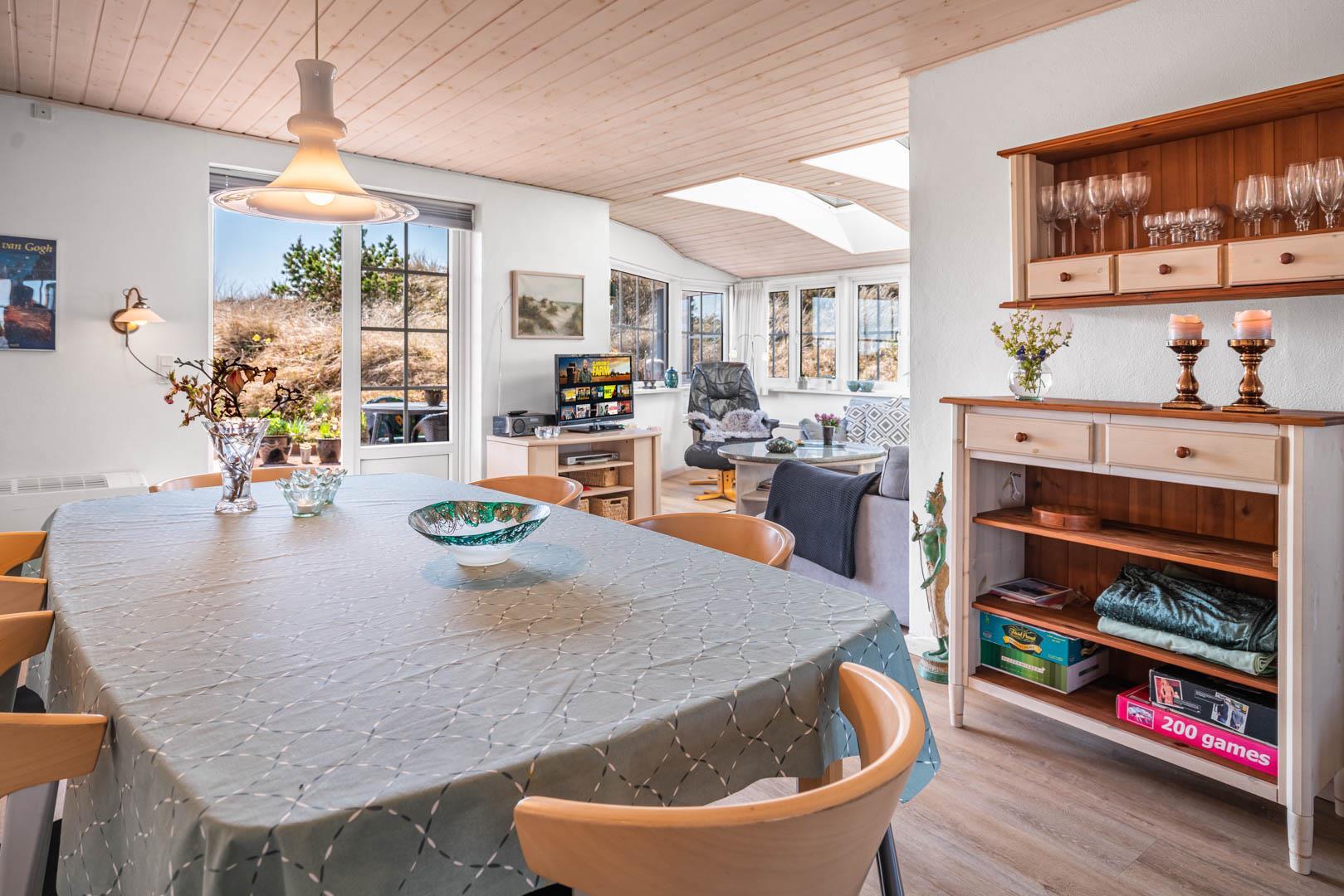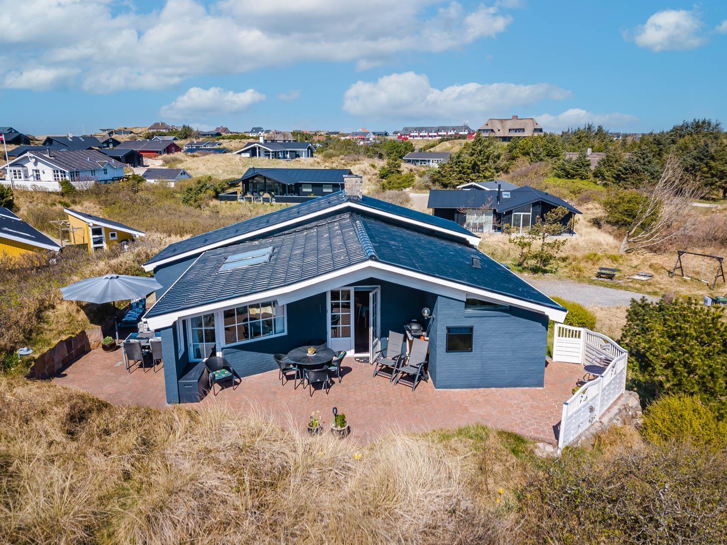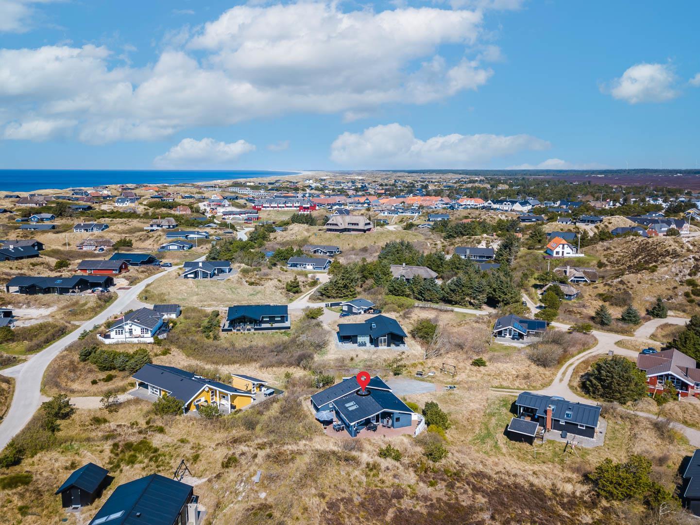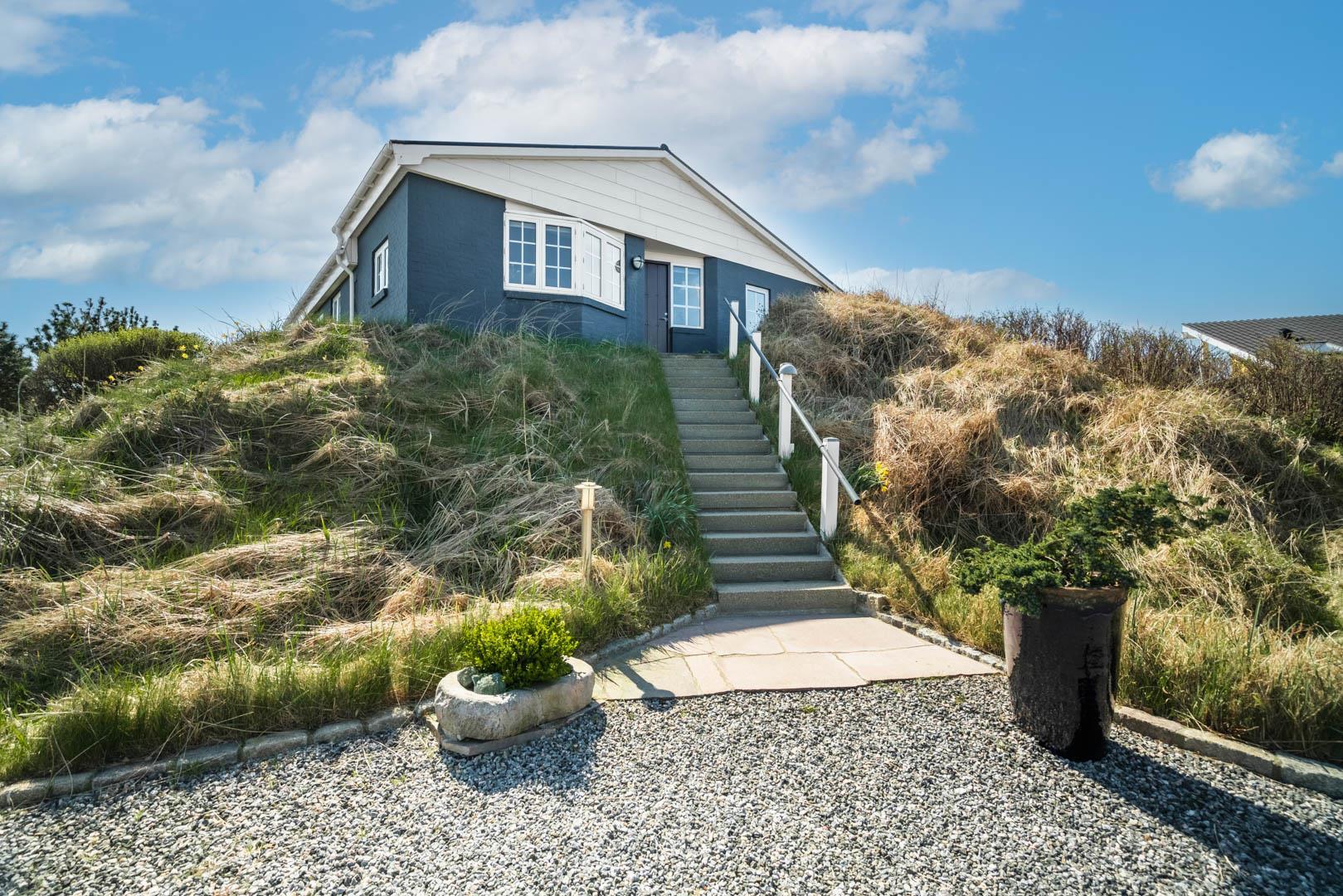 Dette hus ligger på en klitforhøjning i Henne Strand, kun 600 meter fra alle restauranter og indkøbs muligheder. Den brede hvide sandstrand ligger 500 meter væk.