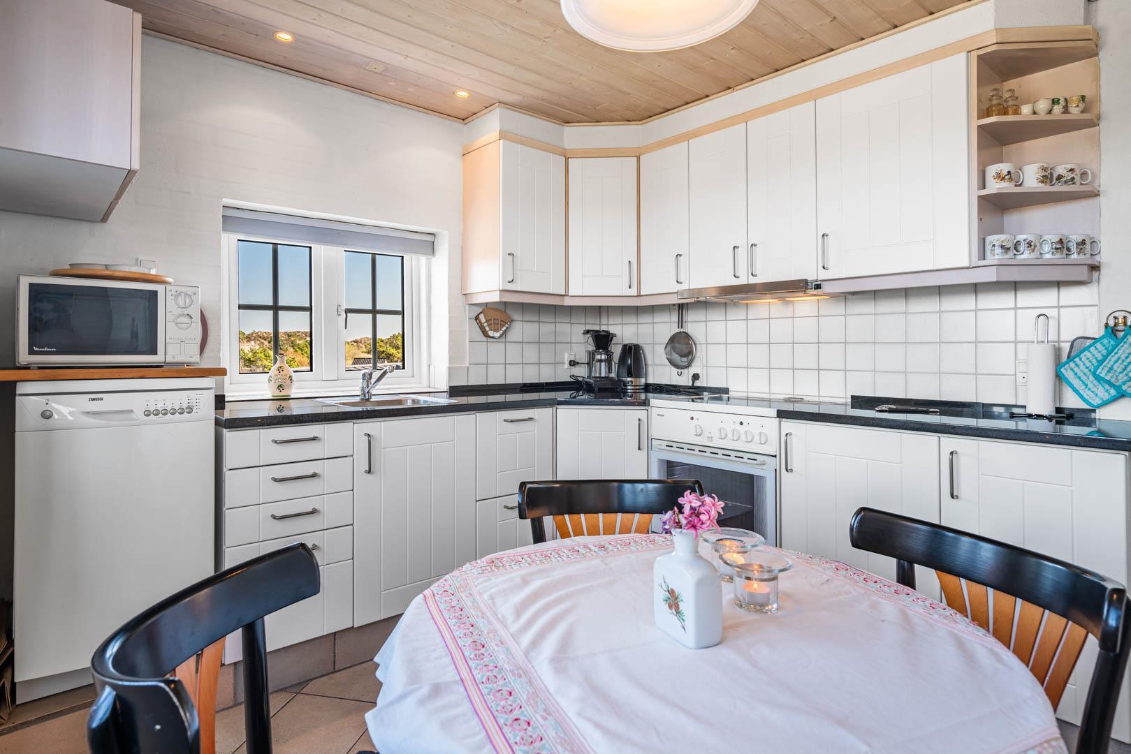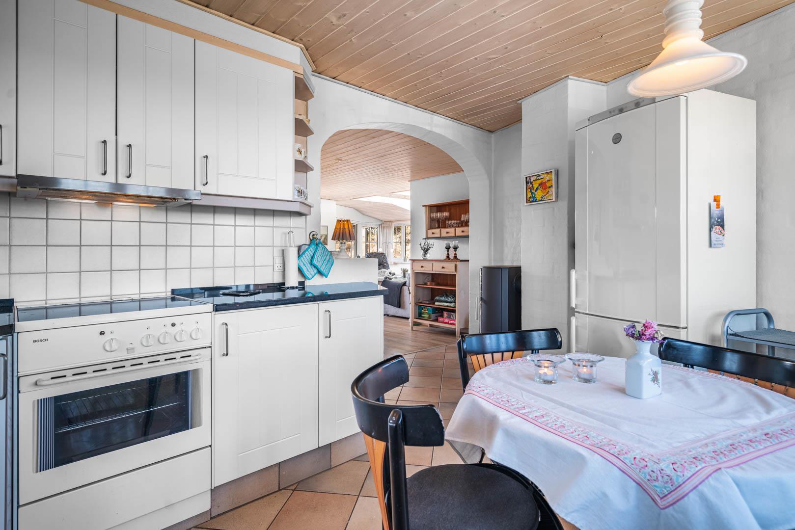 I dette hus er der lagt stor vægt på hygge, du får komfort og fornemmelsen af at være velkommen i huset. Bordplader i granit afrunder det positive indtryk, du får af det veludstyrede køkken. Der er endda en airfryer.