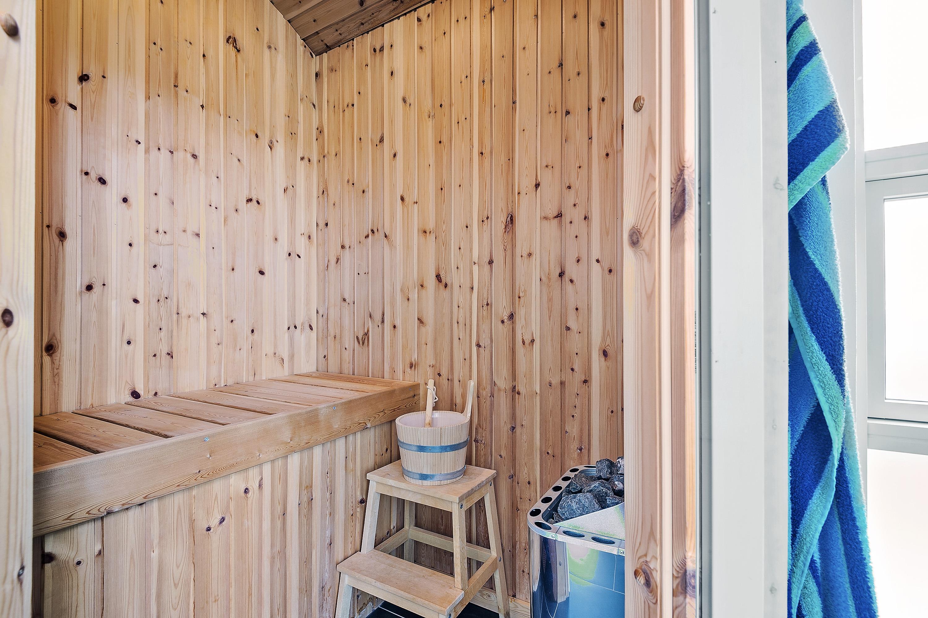 Huset har 2 toiletter hvoraf det ene er ret stort, og indrettet med sauna og brus.