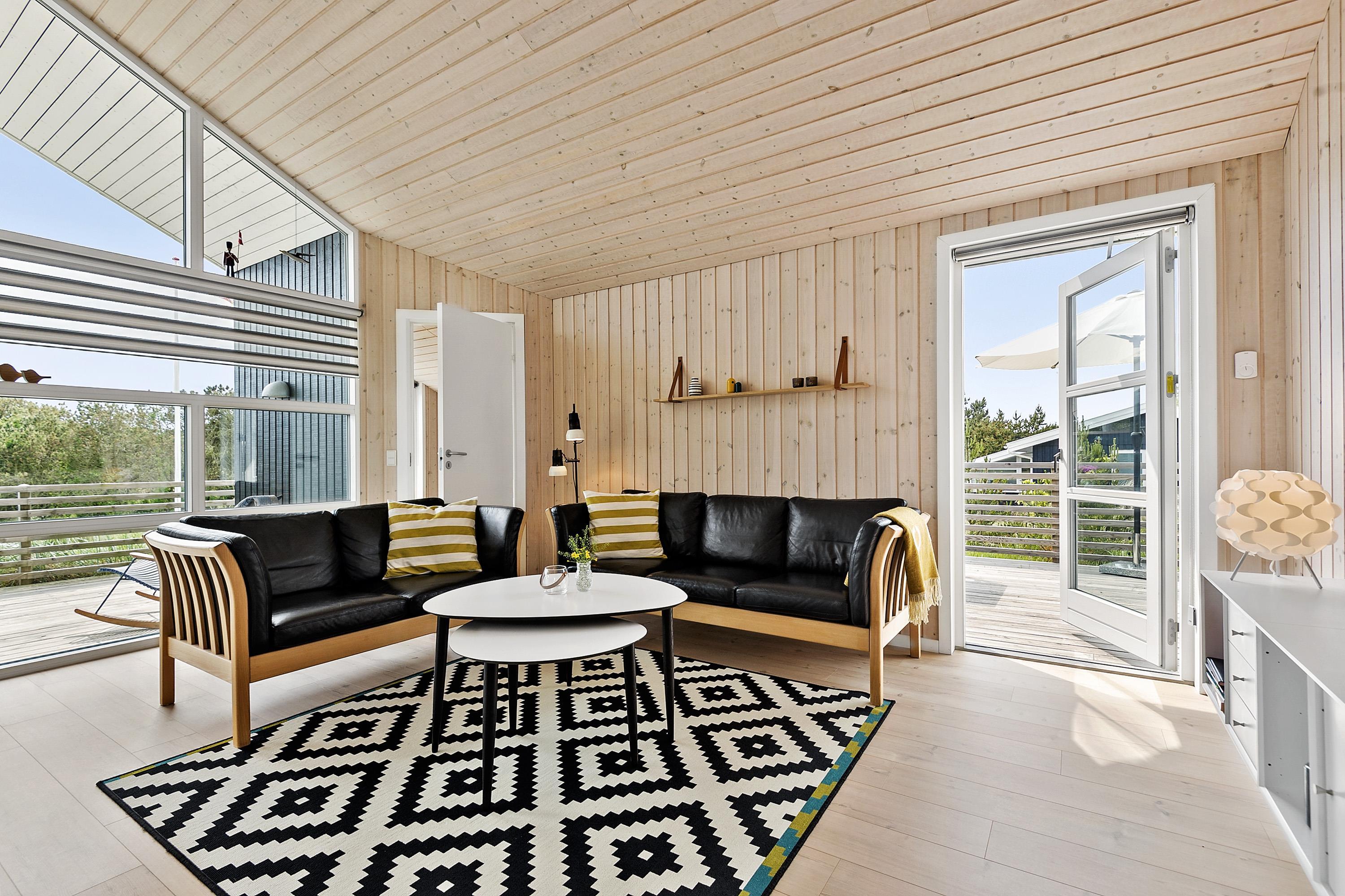 Et rigtigt dejligt sommerhus, der med et stort lysindfald fra vinduespartier i gavlene giver et flot lys i hele huset.