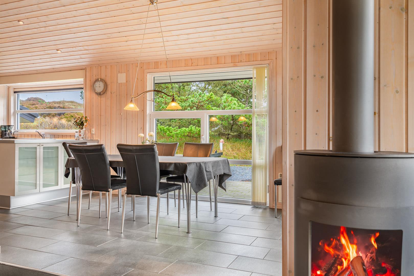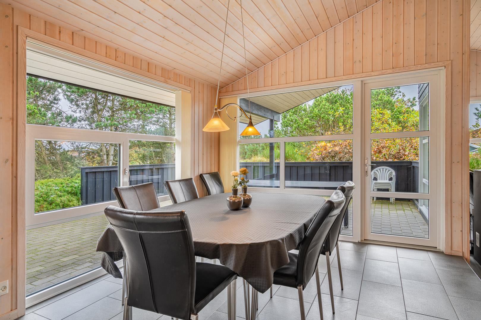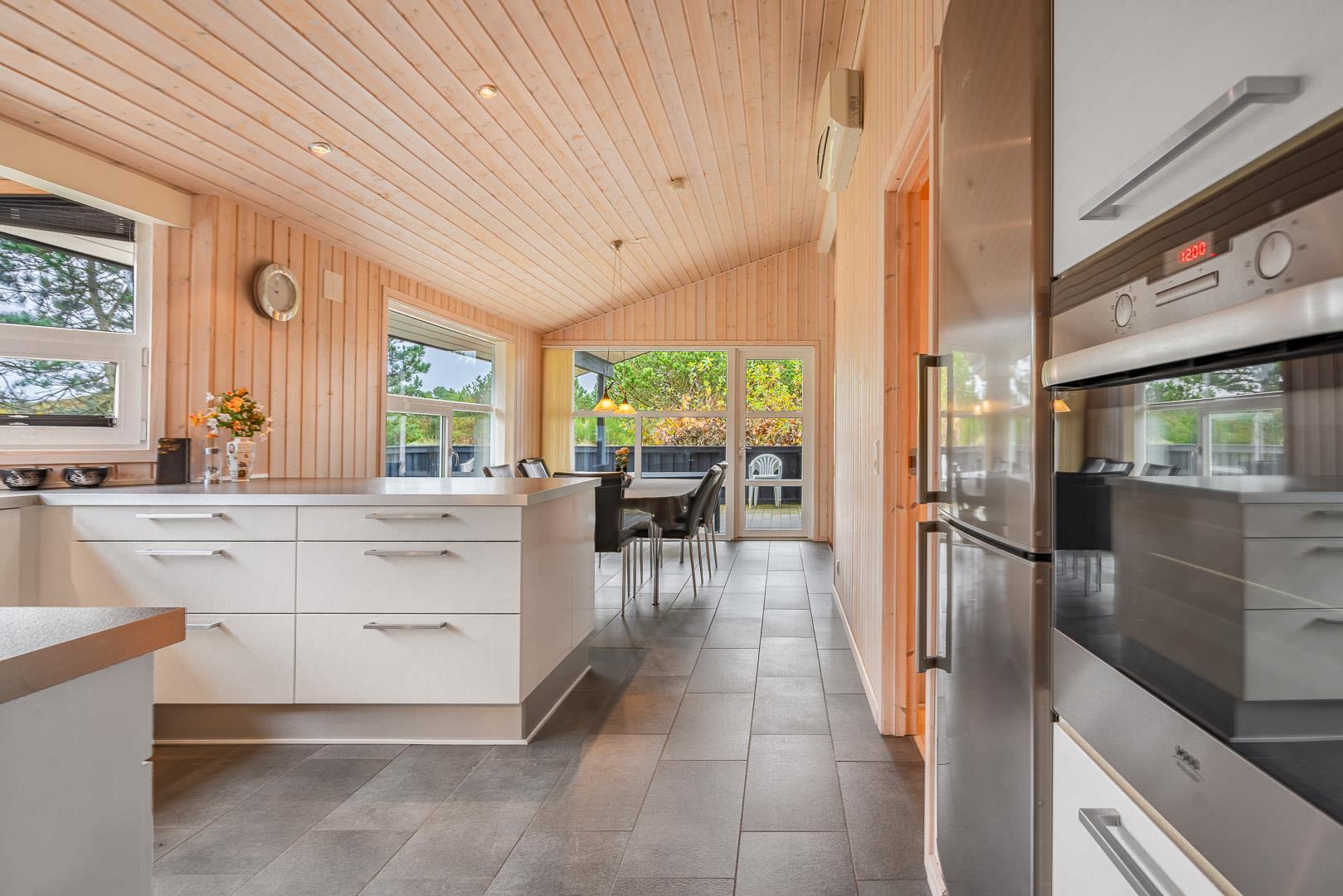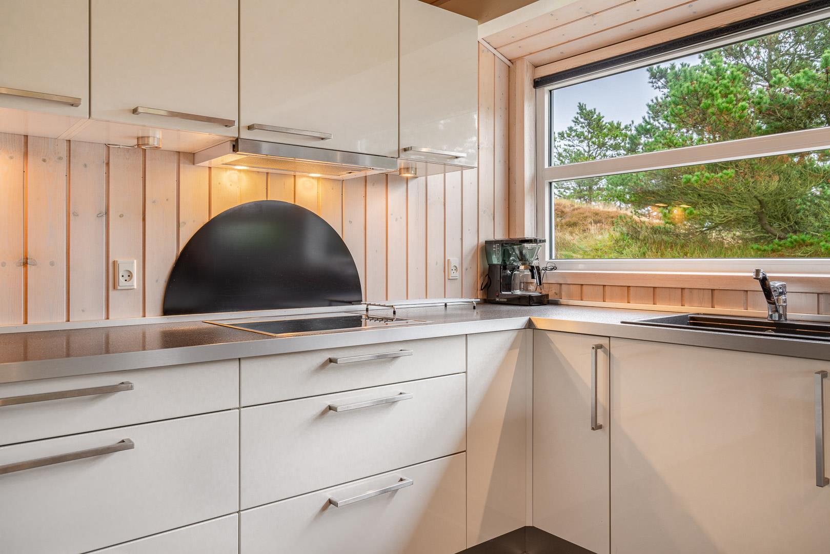 På en skøn, ugeneret og bevokset klitgrund ligger dette pragtfulde feriehus, hvor der er lagt vægt på personlighed. Der er to flotte badeværelser med bruser, det ene råder over 2 pers spa og sauna. Huset råder over 3 gode værelser. Veludstyret køkken som ligger i åben forbindelse med stuen hvorfra der er er direkte adgang til husets terrasser. Et super lækkert hus hvor rammerne er til stede for en rigtig god ferie - hele året.