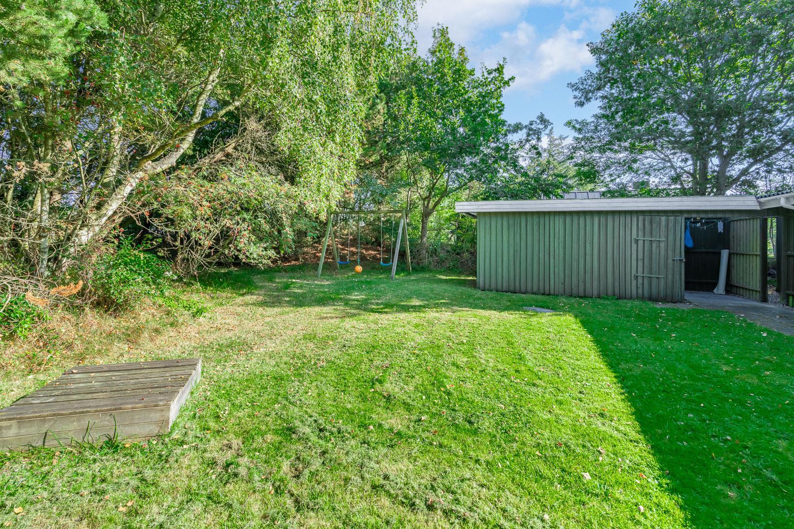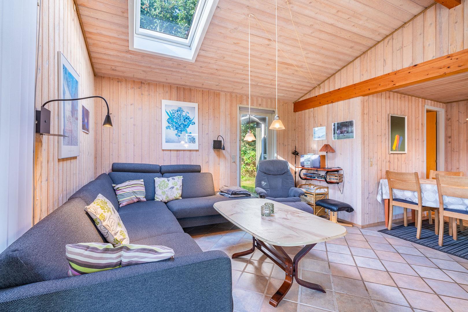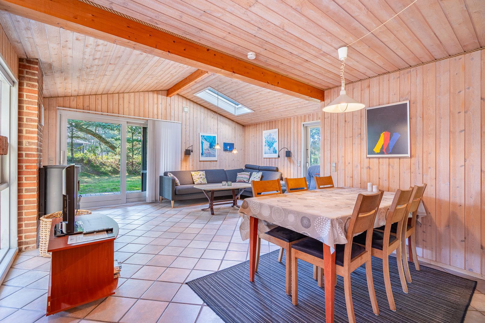 Feriehus beliggende på flot, bevokset naturgrund i rolige omgivelser. Huset er indrettet med pæne og gode møbler. Fra stuen er der udgang til træterrasse. Bag huset er der græs-/naturgrund, hvor børnene rigtig kan boltre sig. Klinkegulv i køkken og stue.