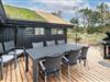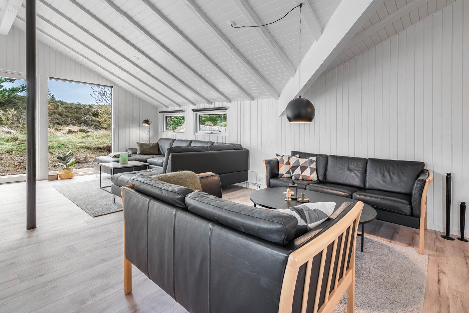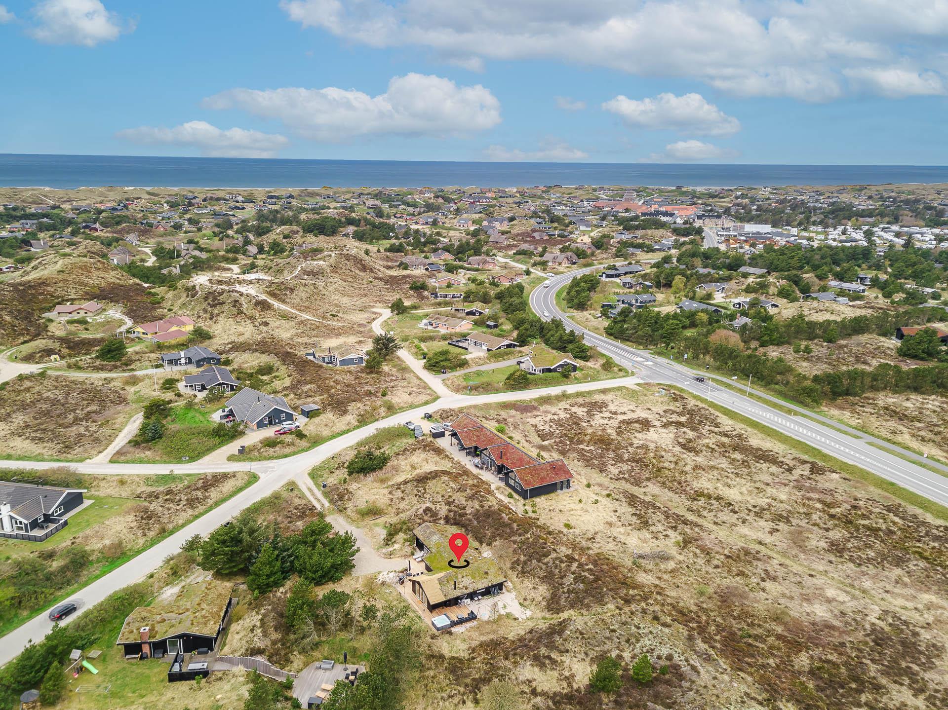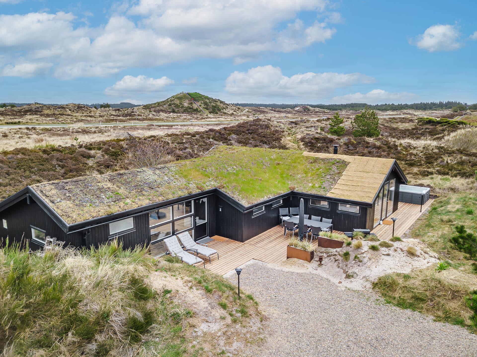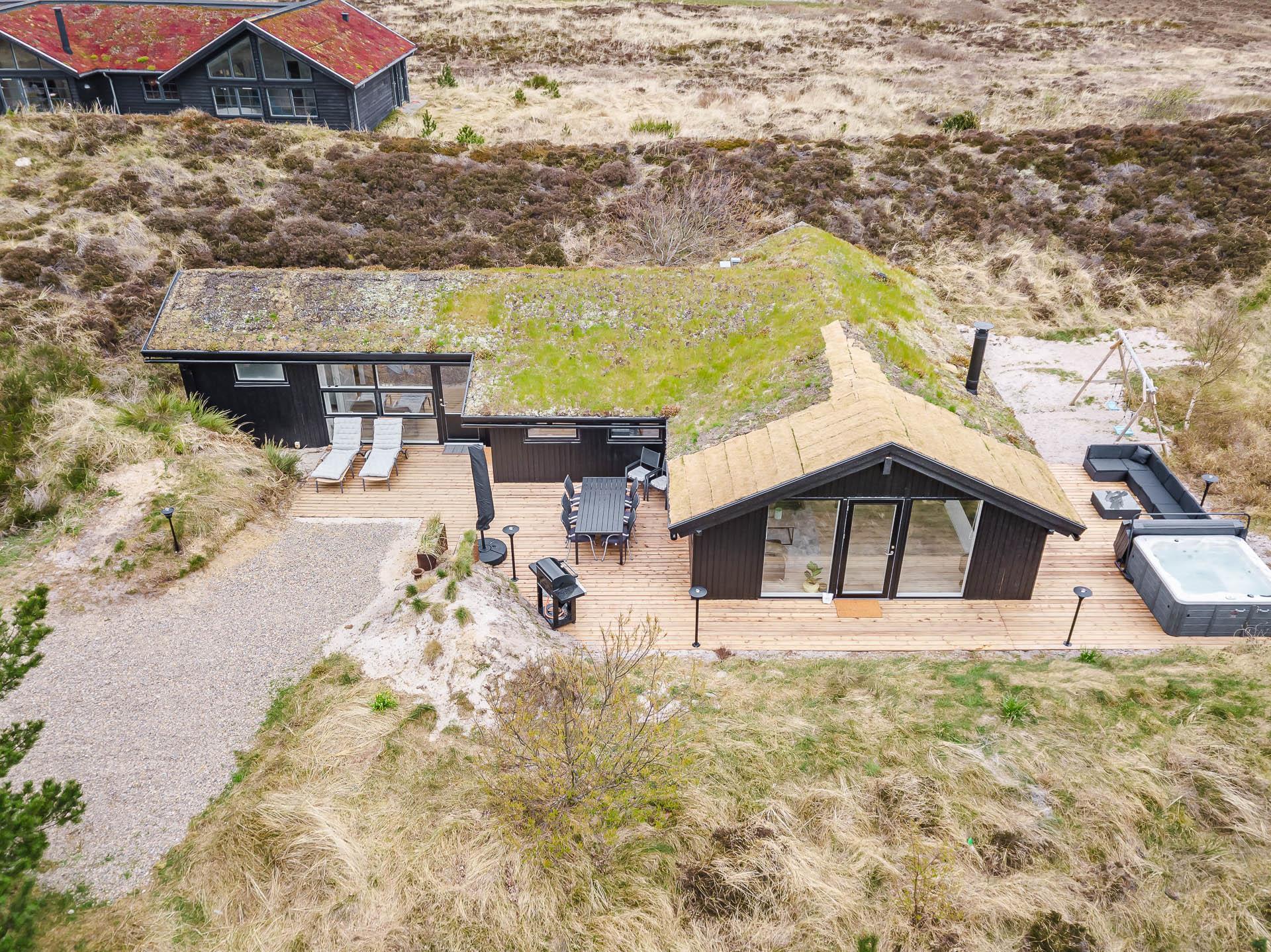 Fra stuen er der udgang til stor ugeneret træterrasse med Lounge havemøbler, hvor roen og freden kan nydes i fulde drag, eller man kan hoppe en tur i udespaen. Den hyggelige ferieby Henne Strand ligger i gåafstand fra huset, her kan I nyde de gode cafeer, restauranter eller handle i byen butikker.