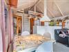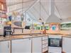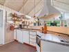 Den åbne stue med køkken og spiseplads fungerer som sommerhusets samlingspunkt. Her kan I lave mad sammen, spille spil eller bare nyde roen foran brændeovnen. Køkkenet er veludstyret og har naturligvis opvaskemaskine, så der er mere tid til afslapning.