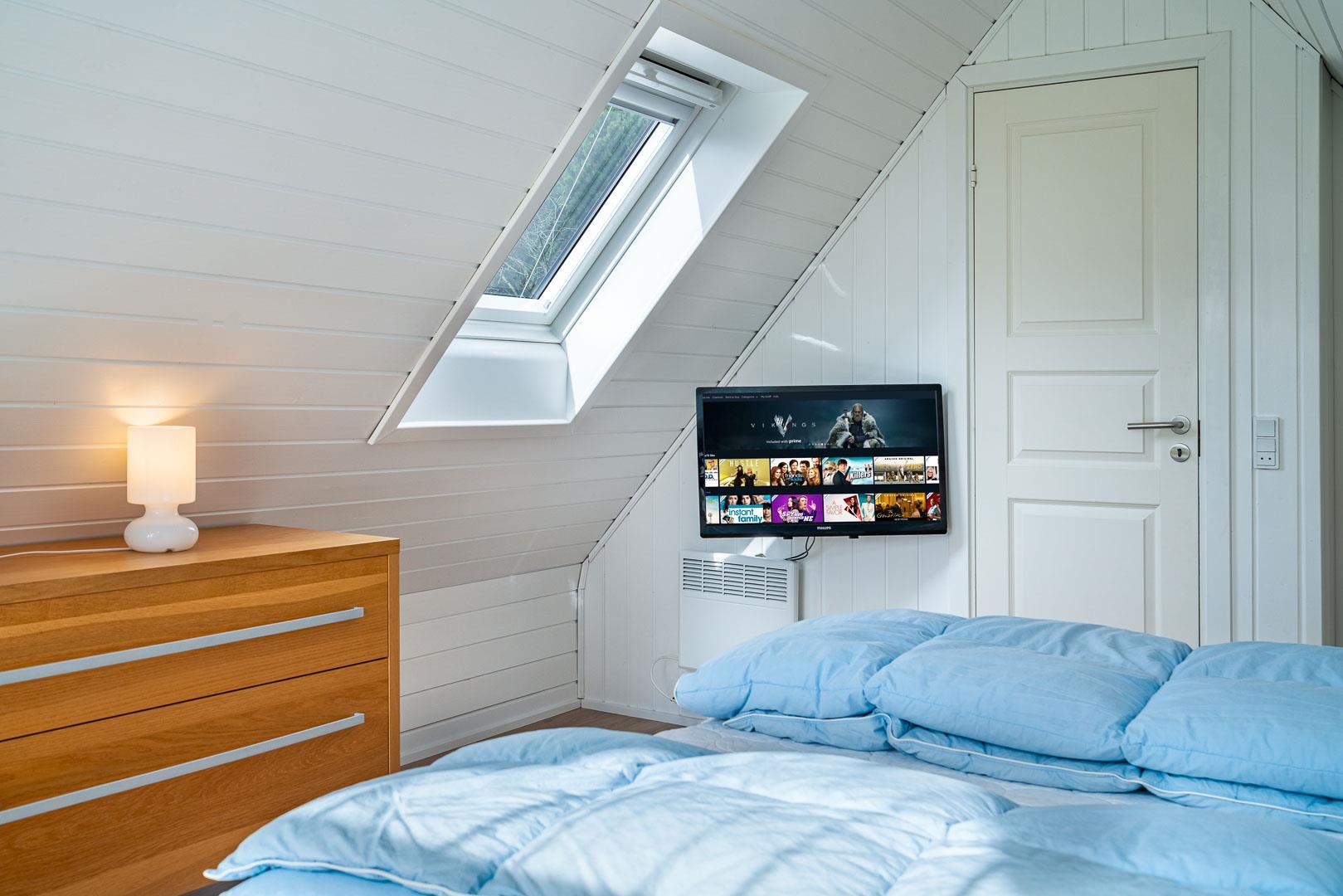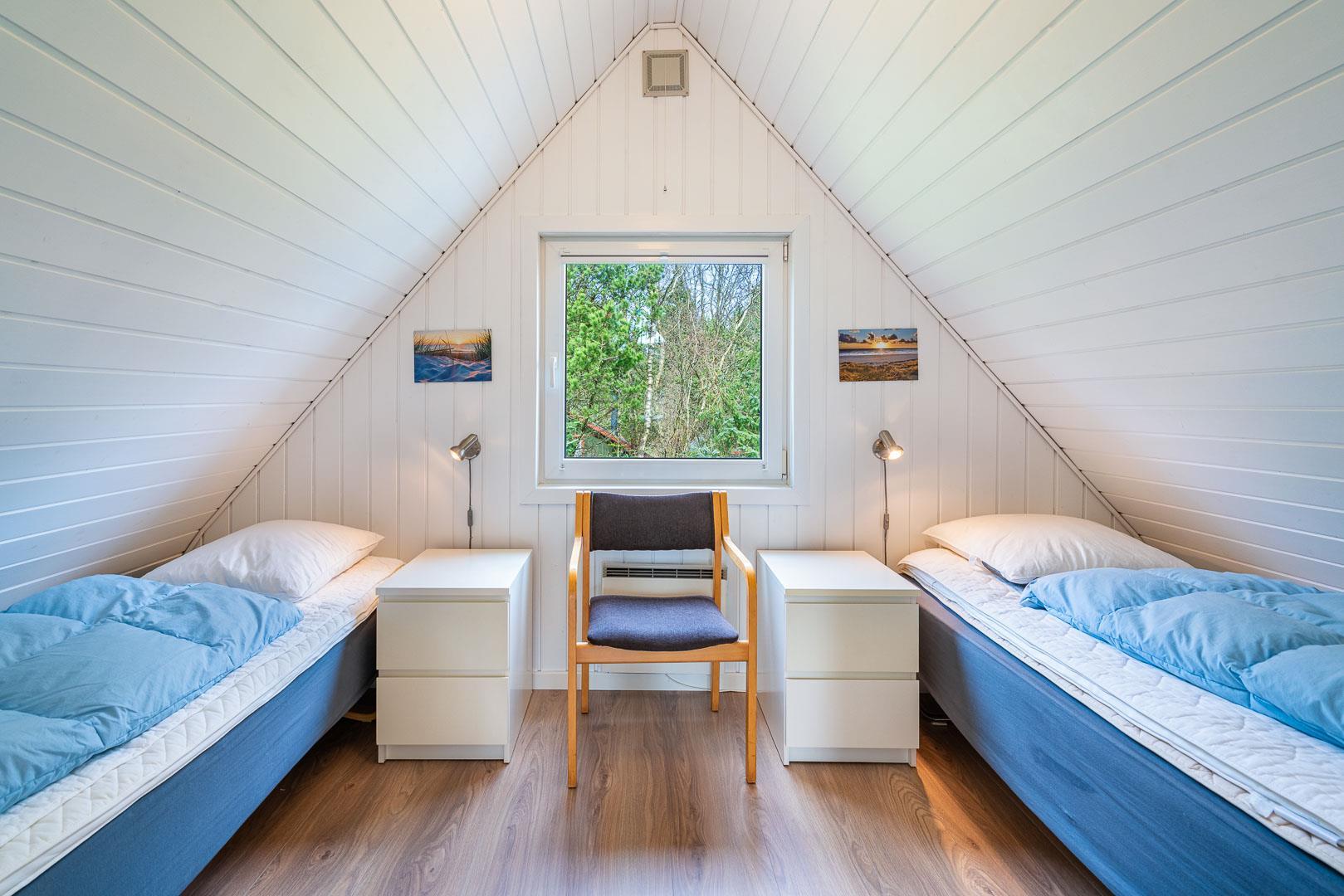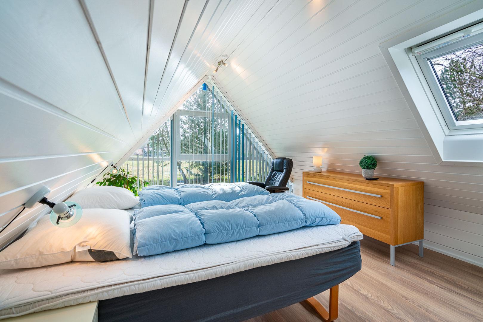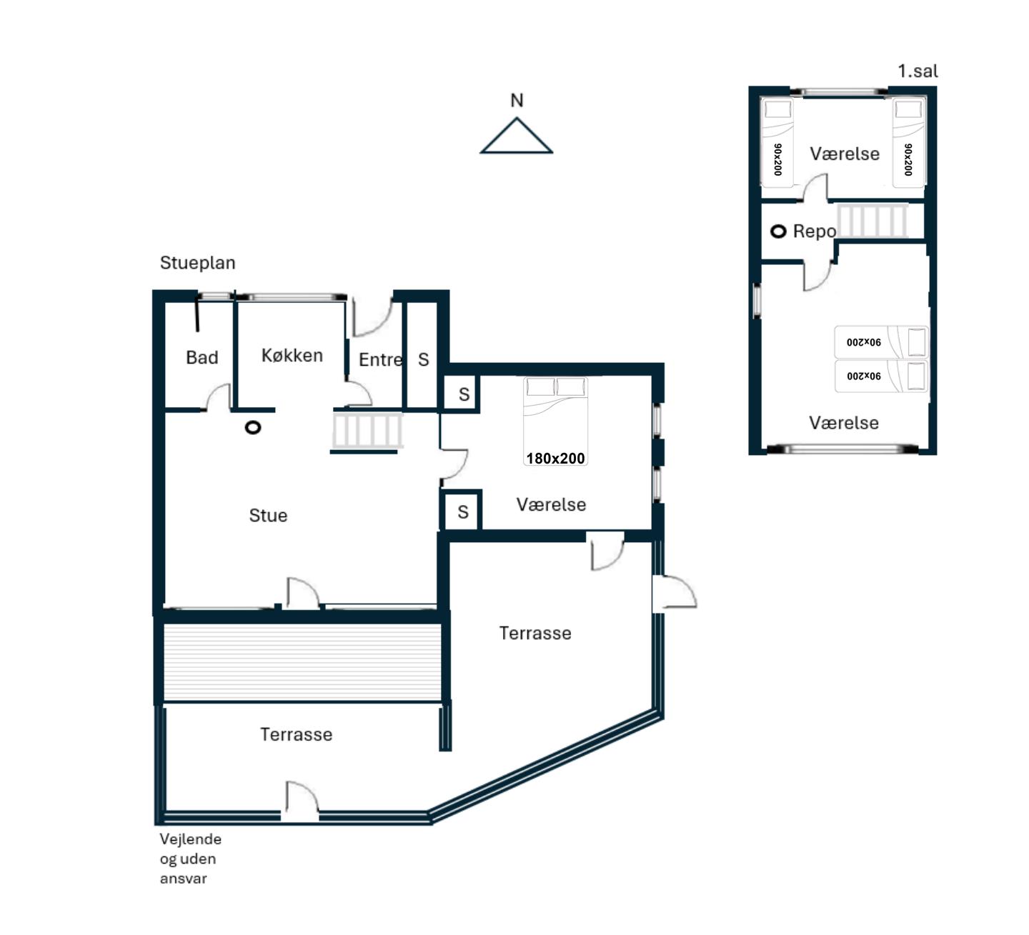På 1 sal er der 2 gode soverum, samt stort soverum i stueetage.