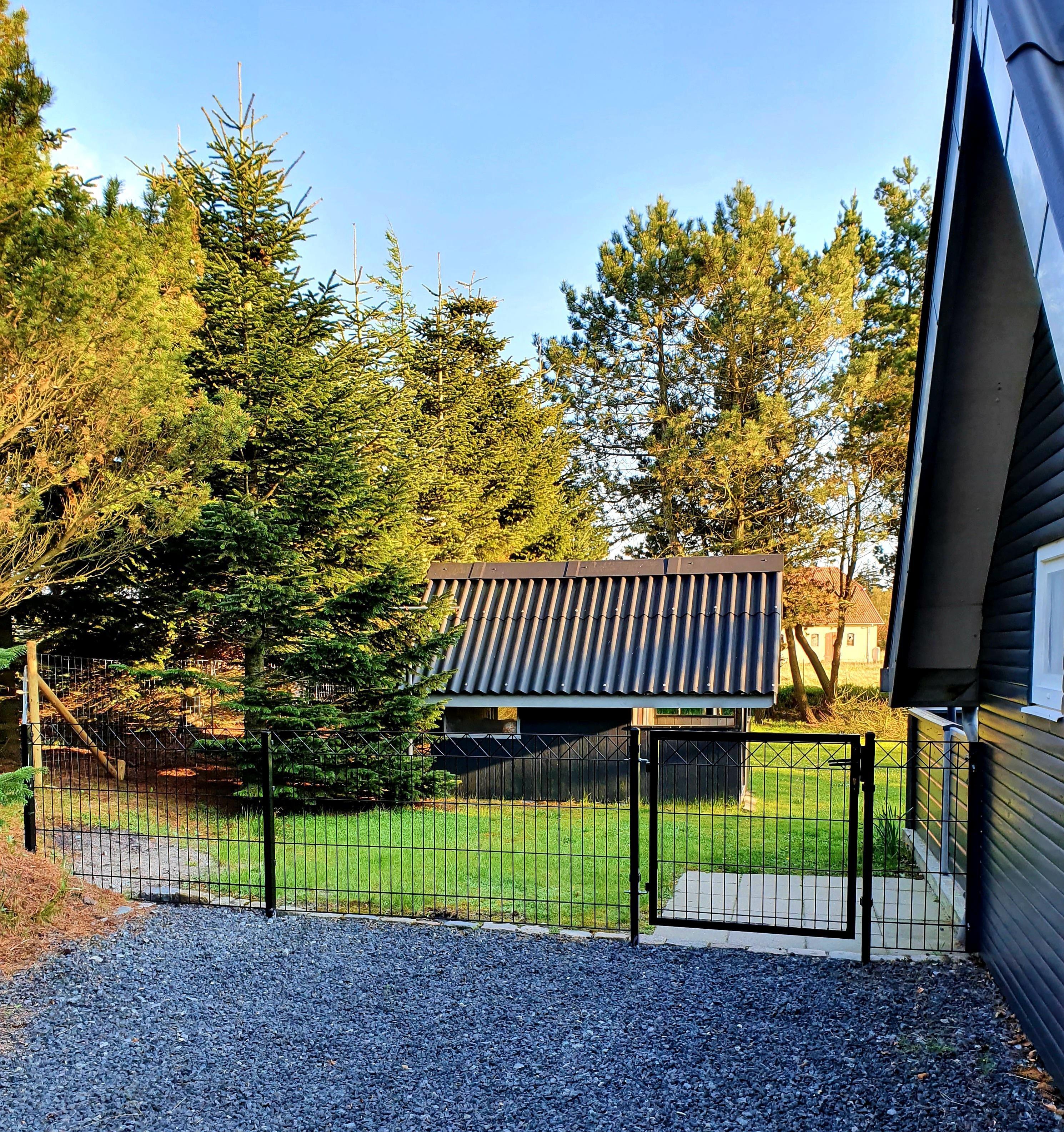 Terrassen er afskærmet og hele grunden er hegnet ind.