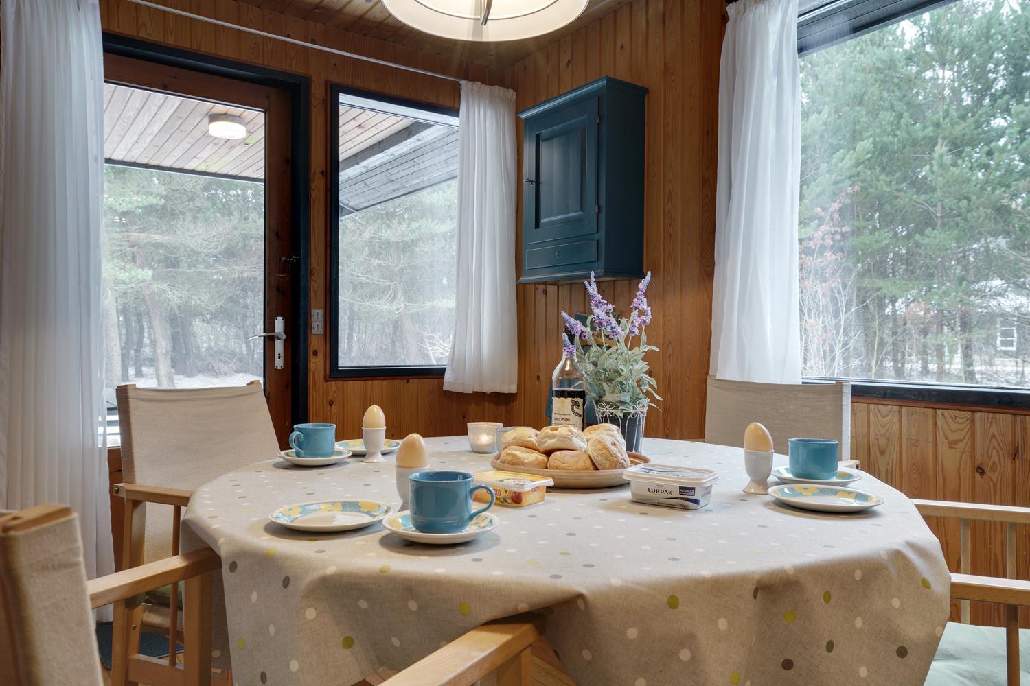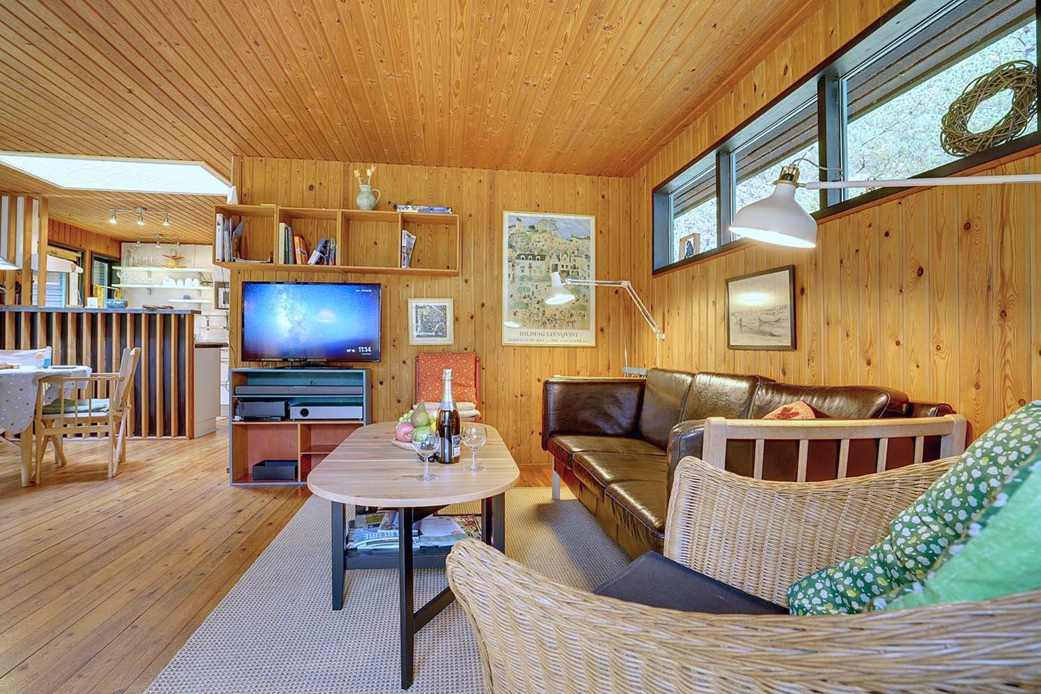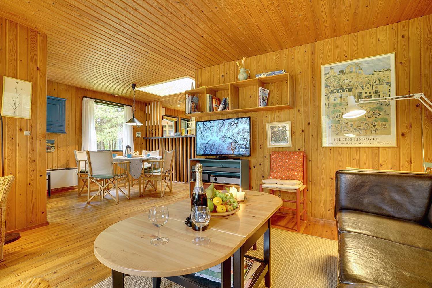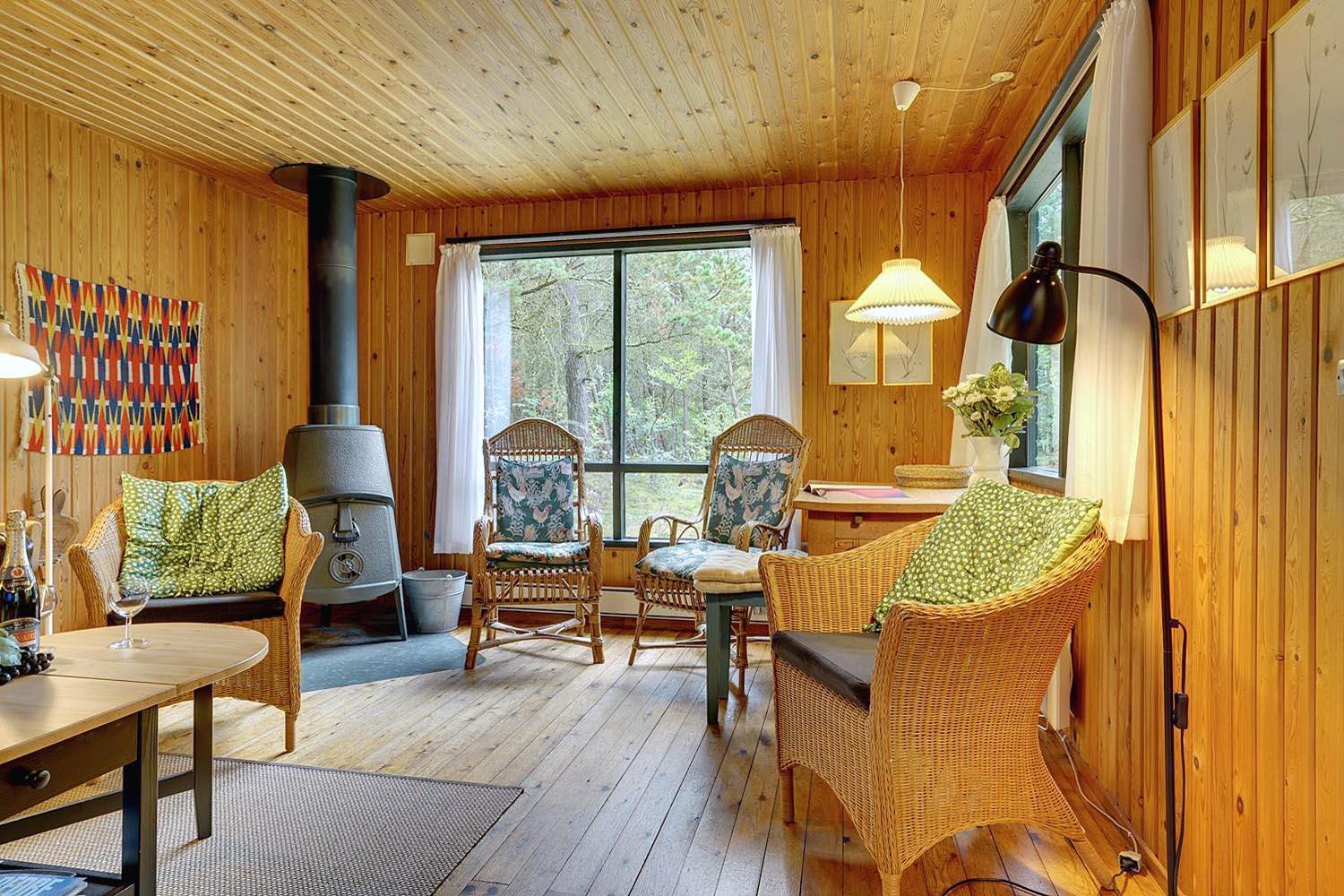 Hyggeligt og velholdt feriehus nær Blåbjerg Plantage med stor skovgrund og skøn overdækket terrasse.