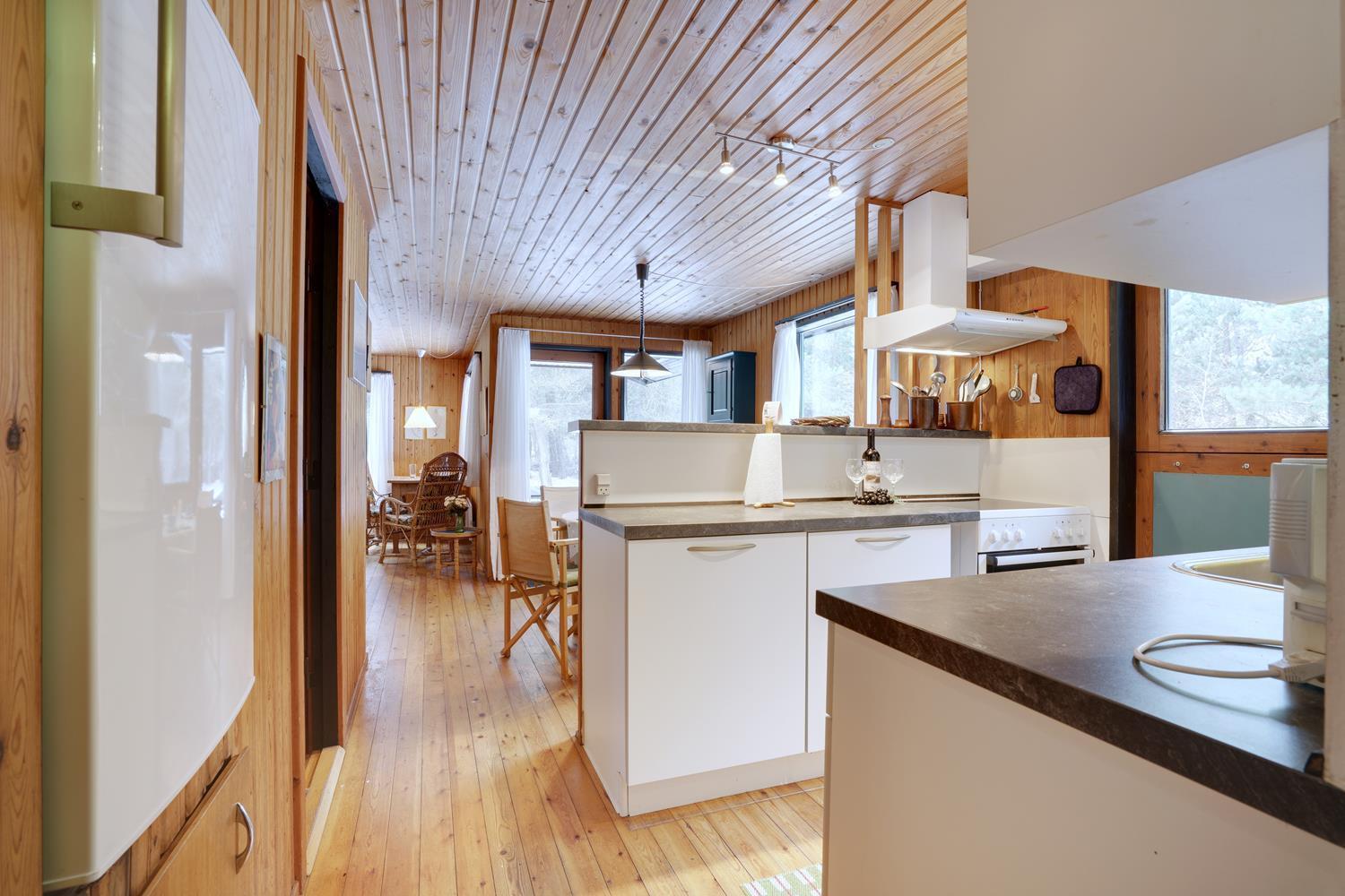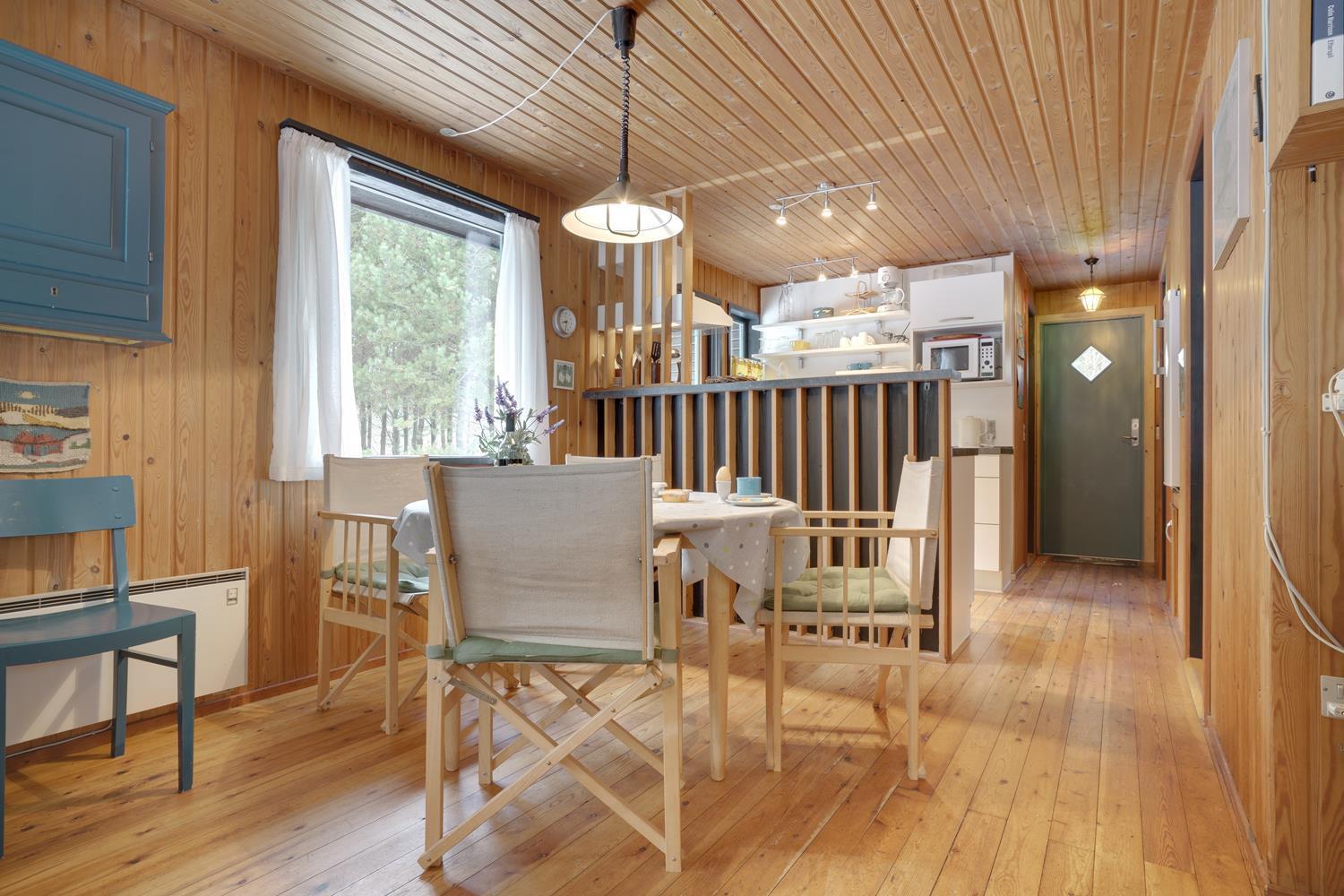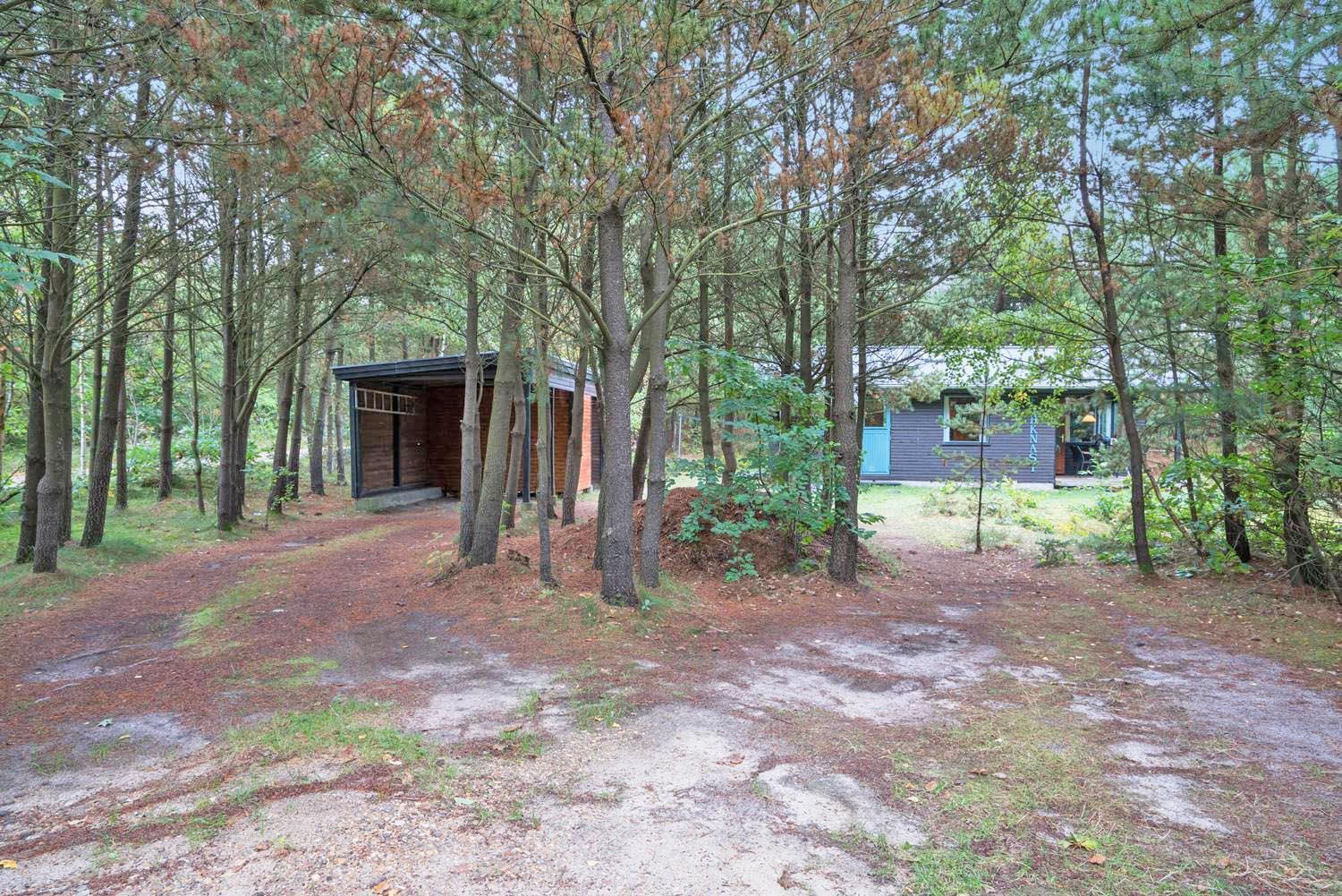 Ældre velholdt og hyggeligt feriehus, lyst og venligt indrettet køkken, beliggende på en stor skovgrund tæt ved Blåbjerg Plantage og golfbane. Grunden er bevokset med træer, hvilket gør, at huset ligger total ugeneret på grunden. Mindre overdækket træ-terrasse samt carport og anneks med 1 ekstra soveplads. Trægulve overalt i huset.