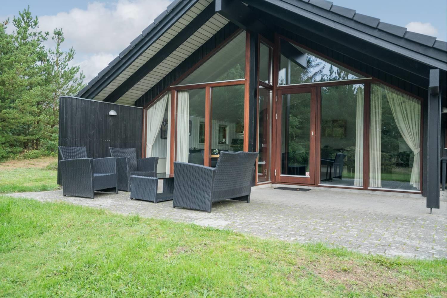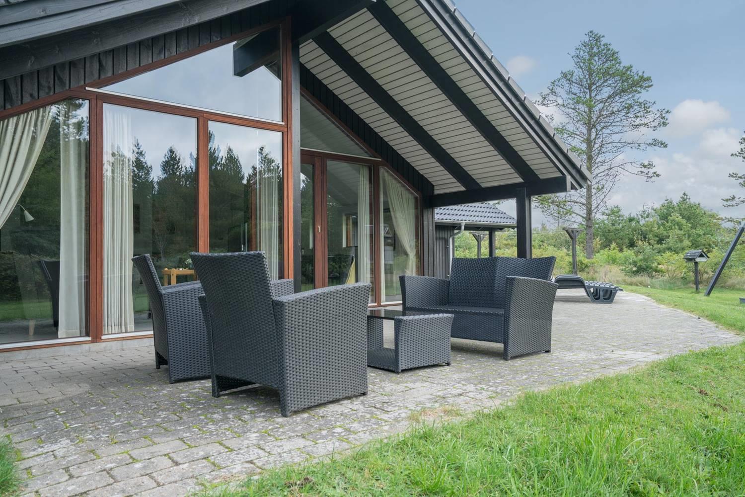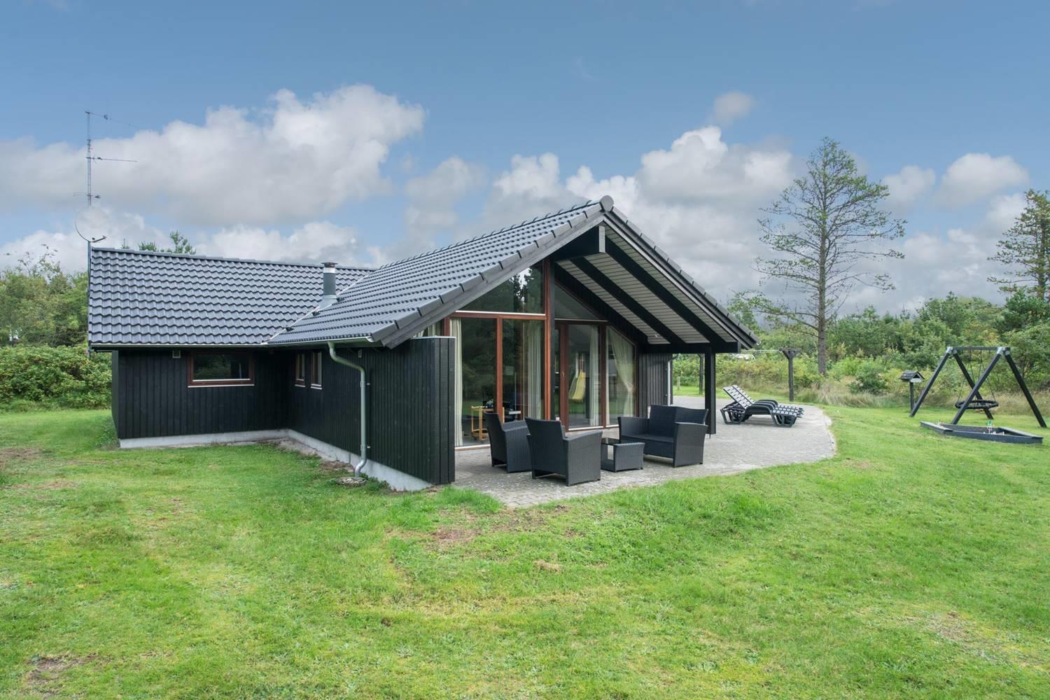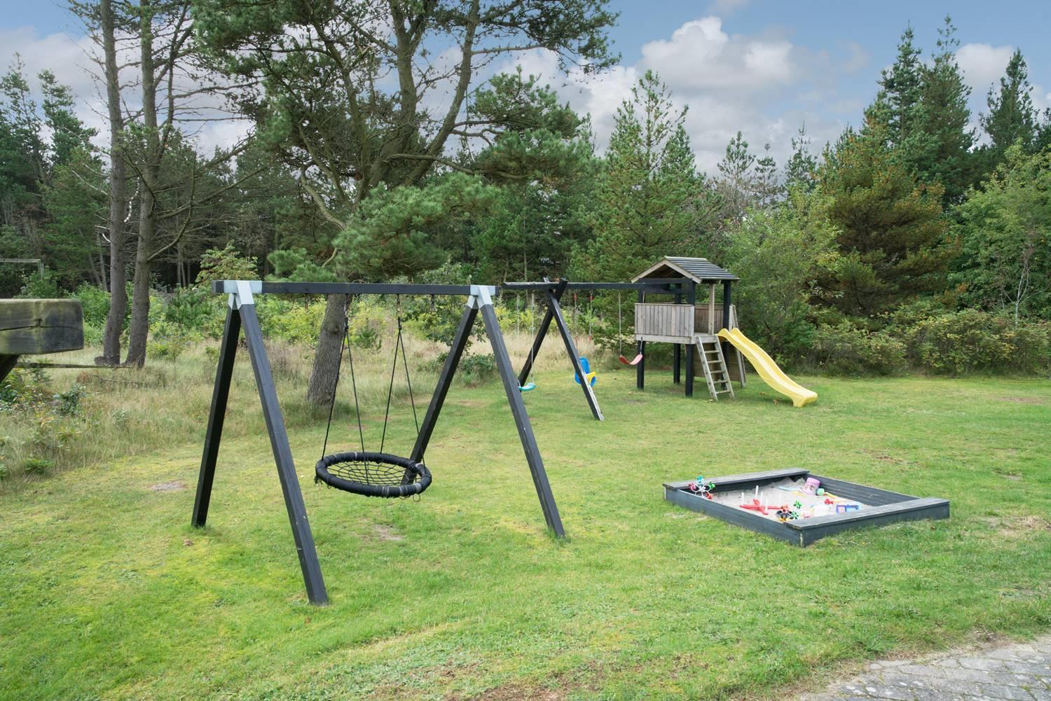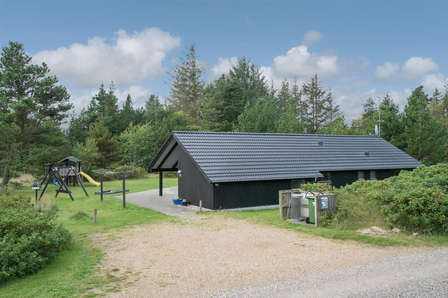 Huset har en stor, delvis overdækket og ugeneret terrasse, perfekt til solbadning, grillaftener og afslapning i rolige omgivelser. For de yngste gæster er der sørget for masser af sjov med legeborg, gynge og sandkasse på grunden.
