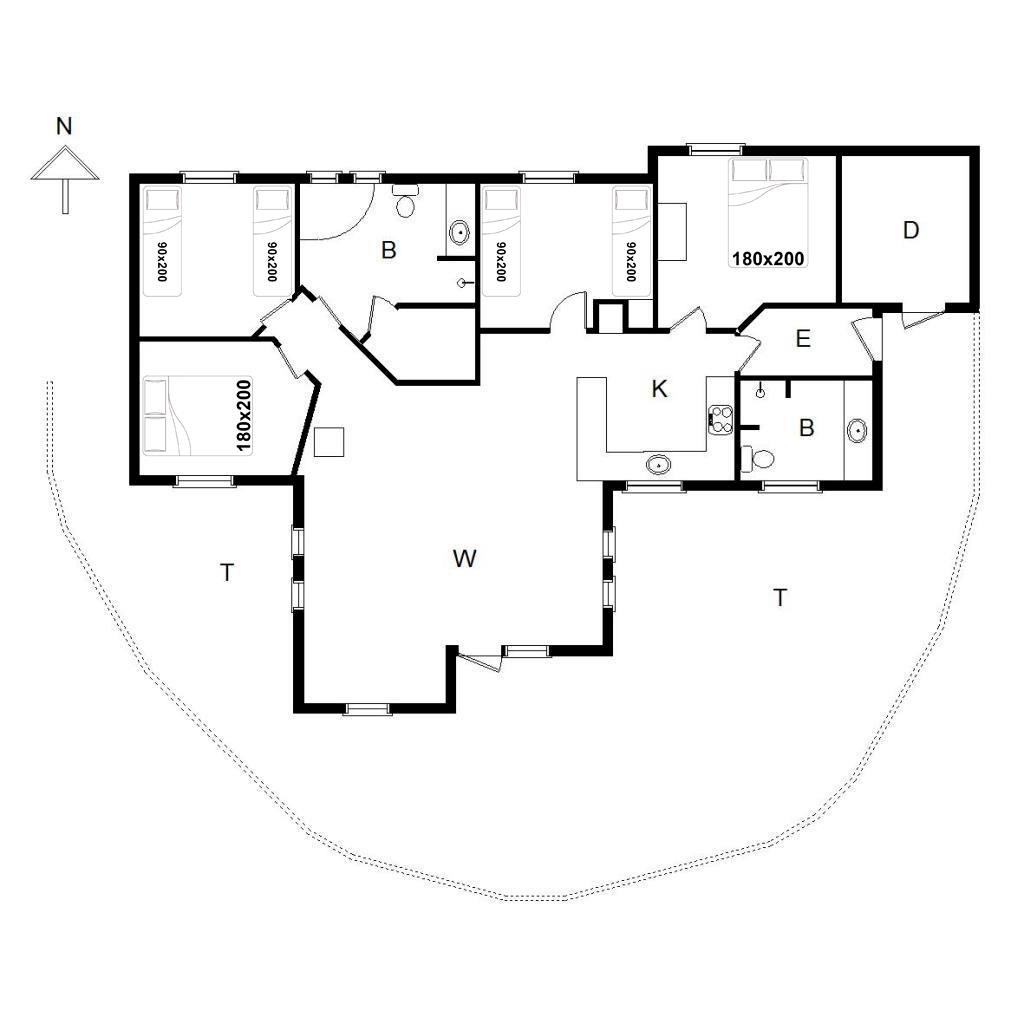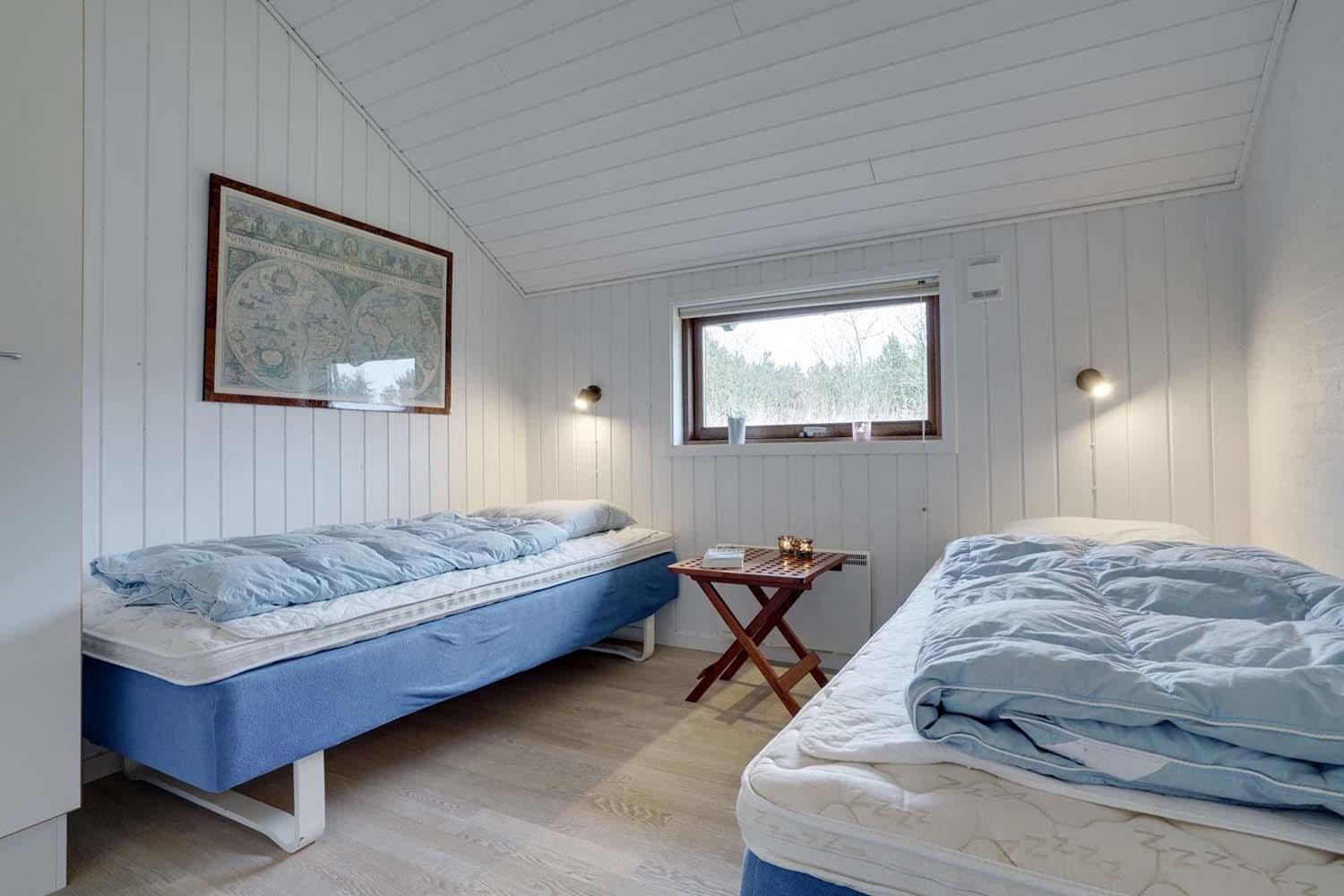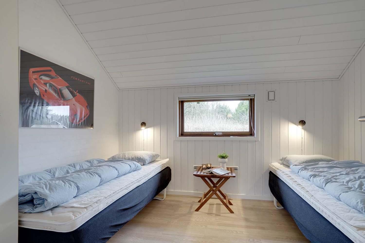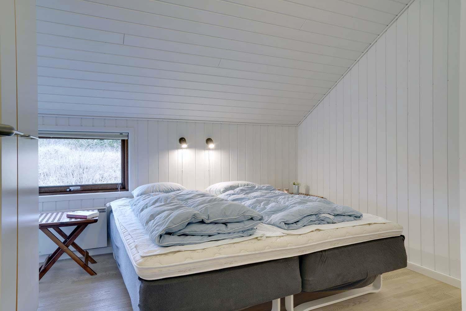 Feriehuset har fire gode soveværelser, alle udstyret med komfortable boxmadrasser, der sikrer en god nattesøvn. De to flotte badeværelser med bruser giver ekstra komfort, og i det store badeværelse finder du også en spa og sauna, hvor du kan forkæle dig selv efter en dag i den friske luft.