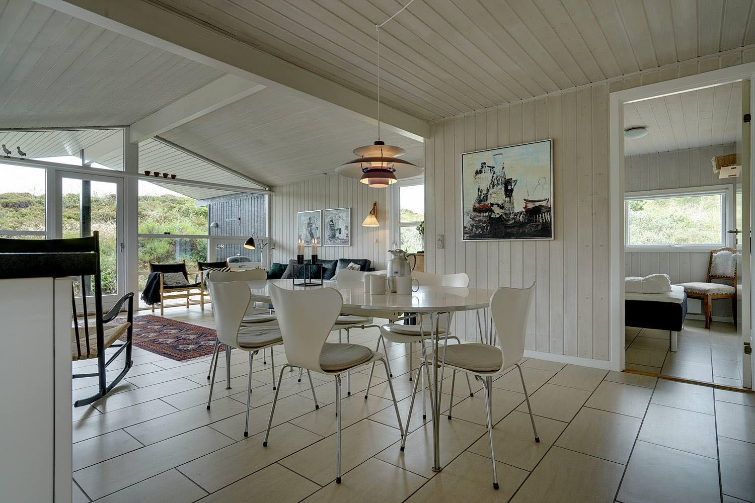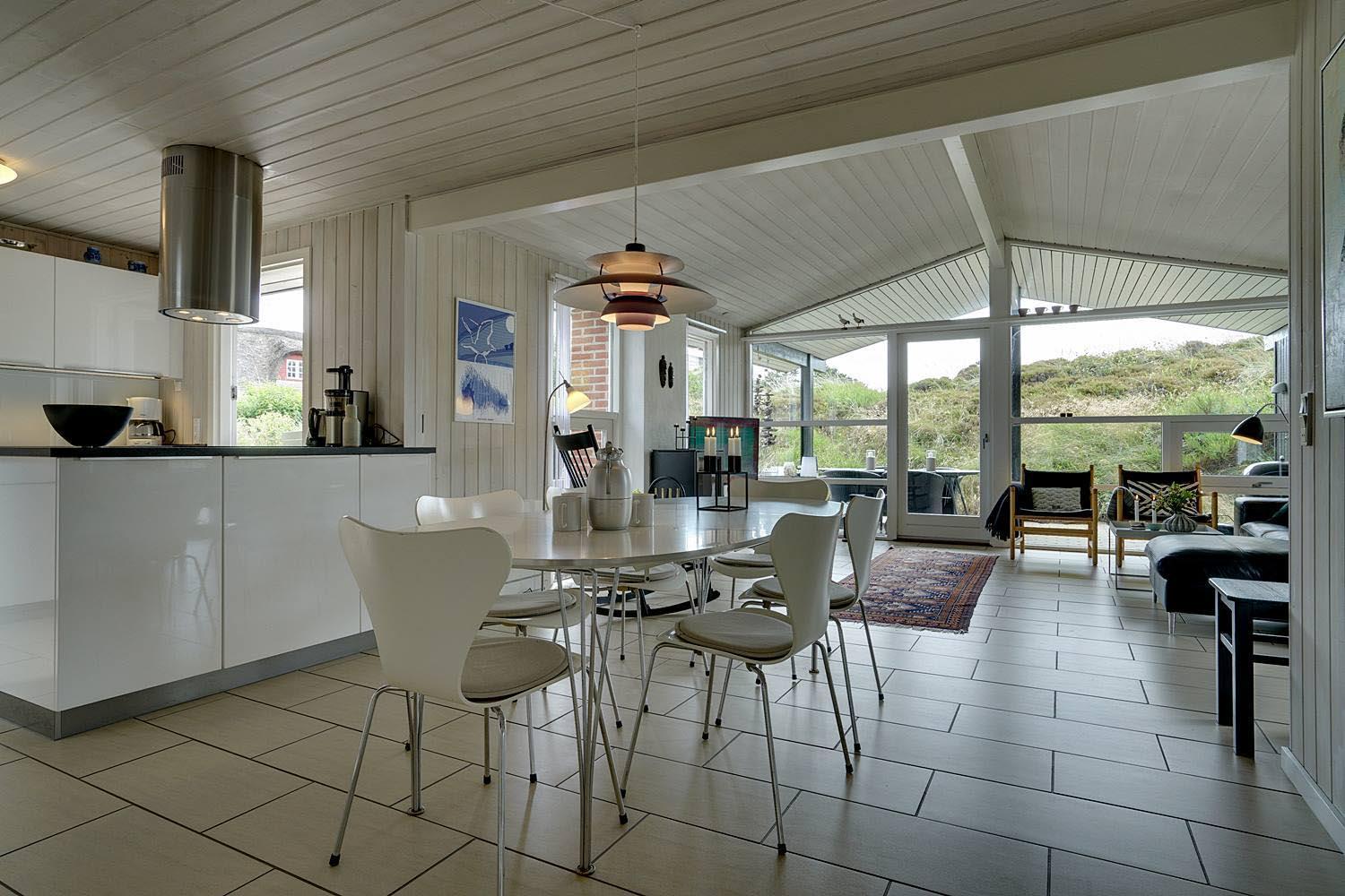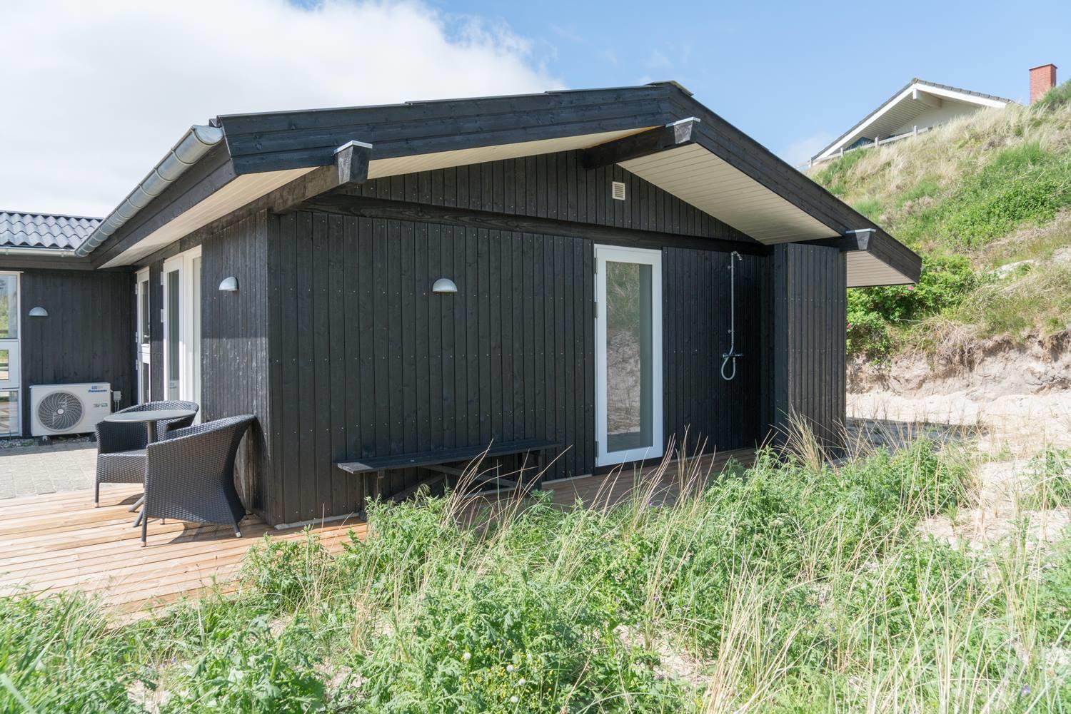 Tæt på Henne Strands centrum som byder på gode restauranter og spændende butikker. I dette skønne feriehus kan hele familien nyde ferien i pragtfulde omgivelser.