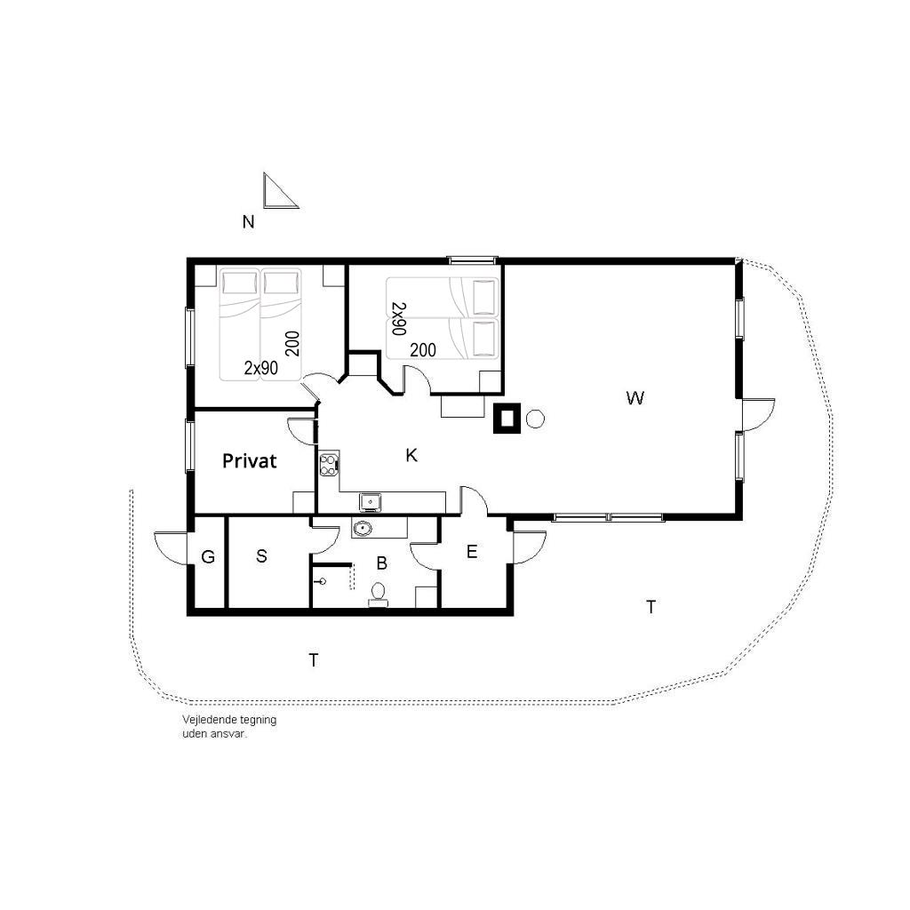 Huset råder over to soveværelser med dobbeltsenge (180x200 cm, hver med to madrasser), hvilket giver gode soveforhold for alle.