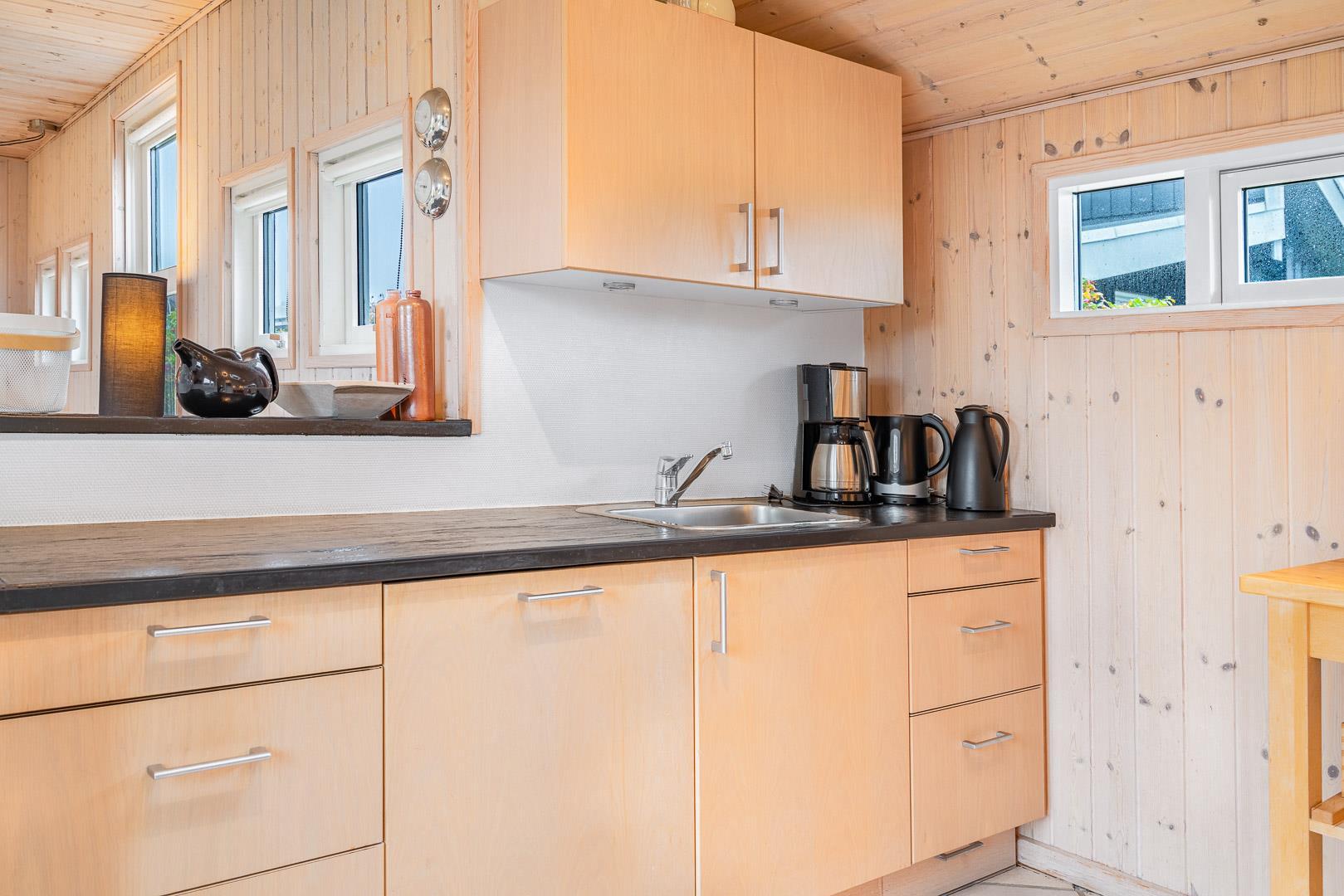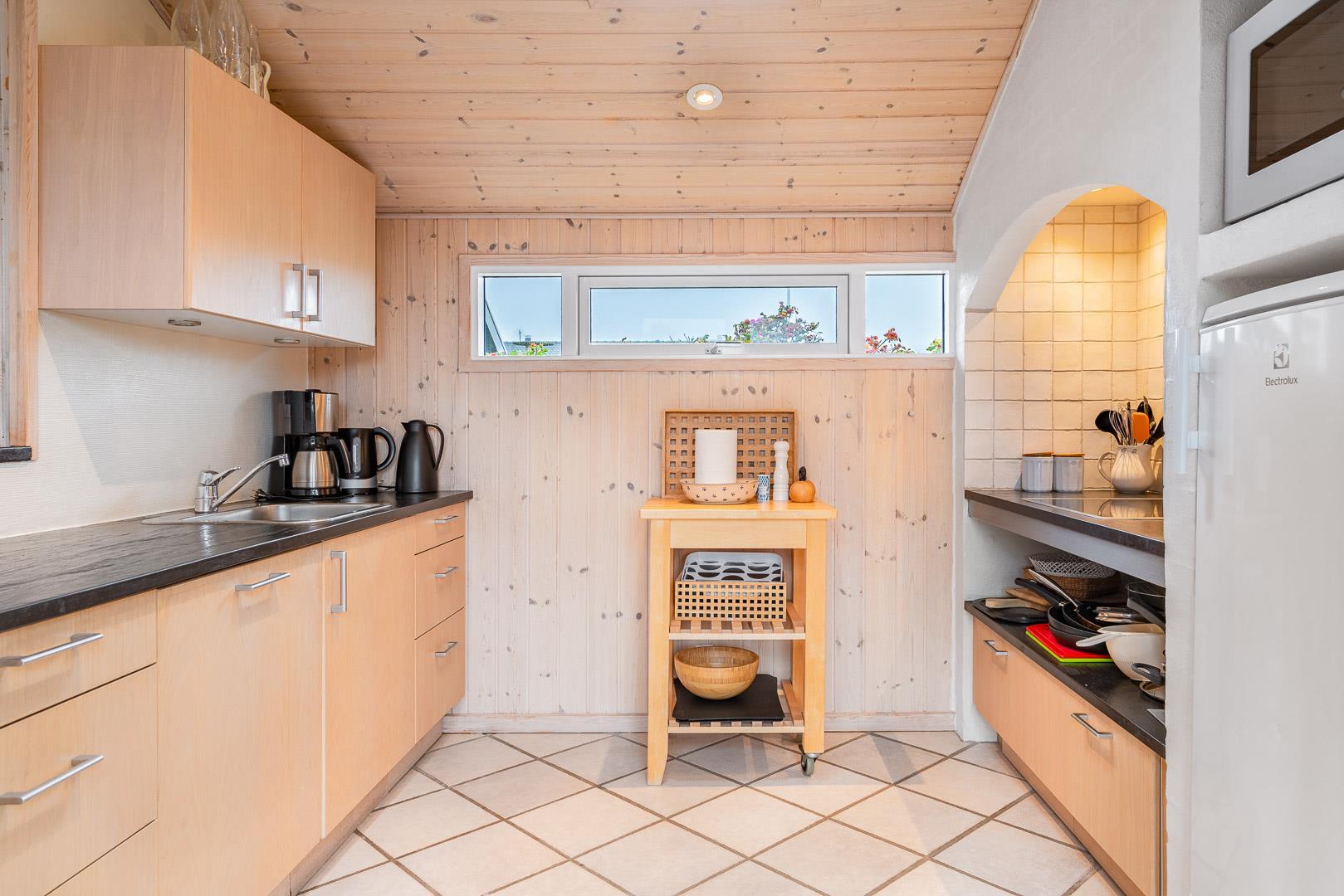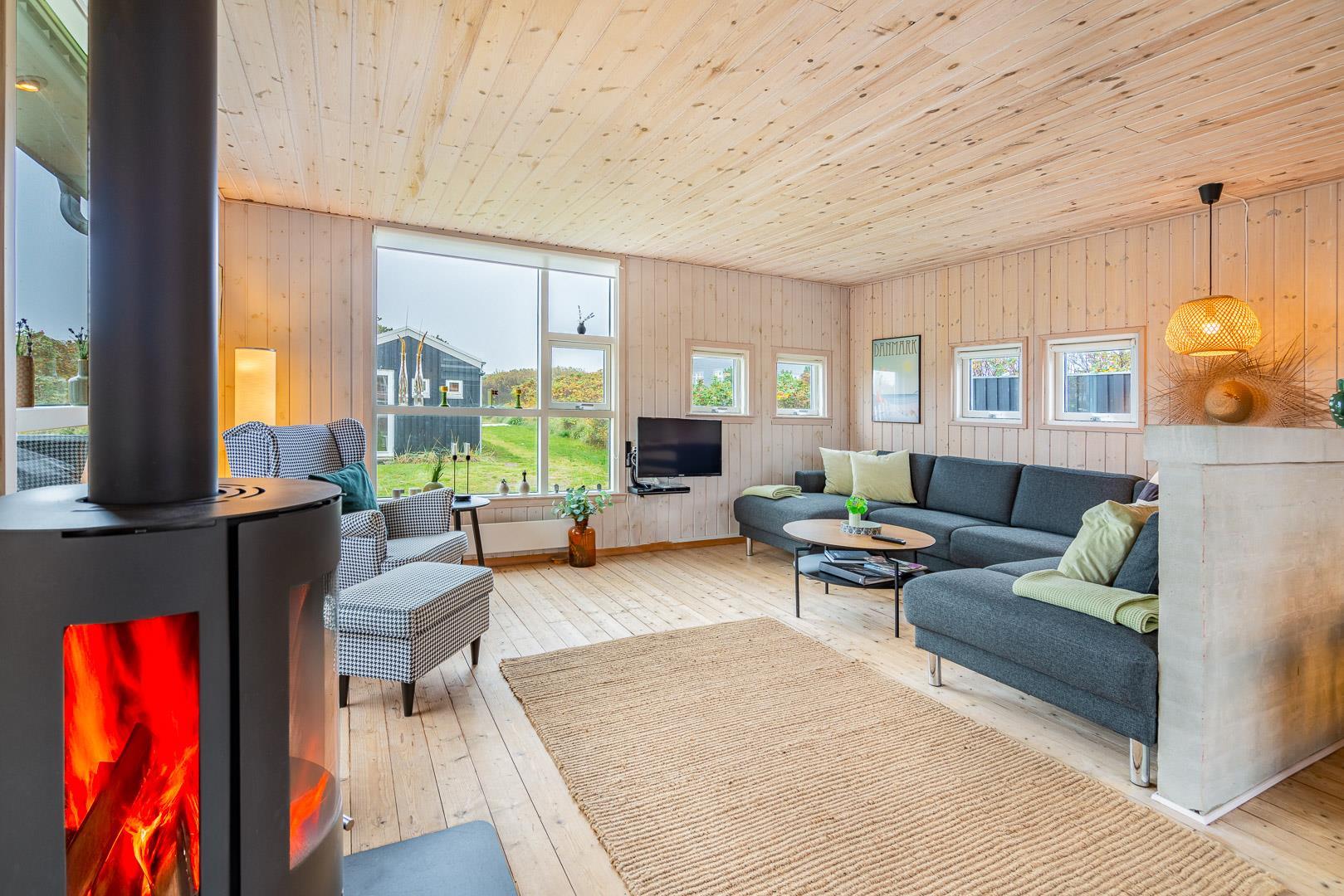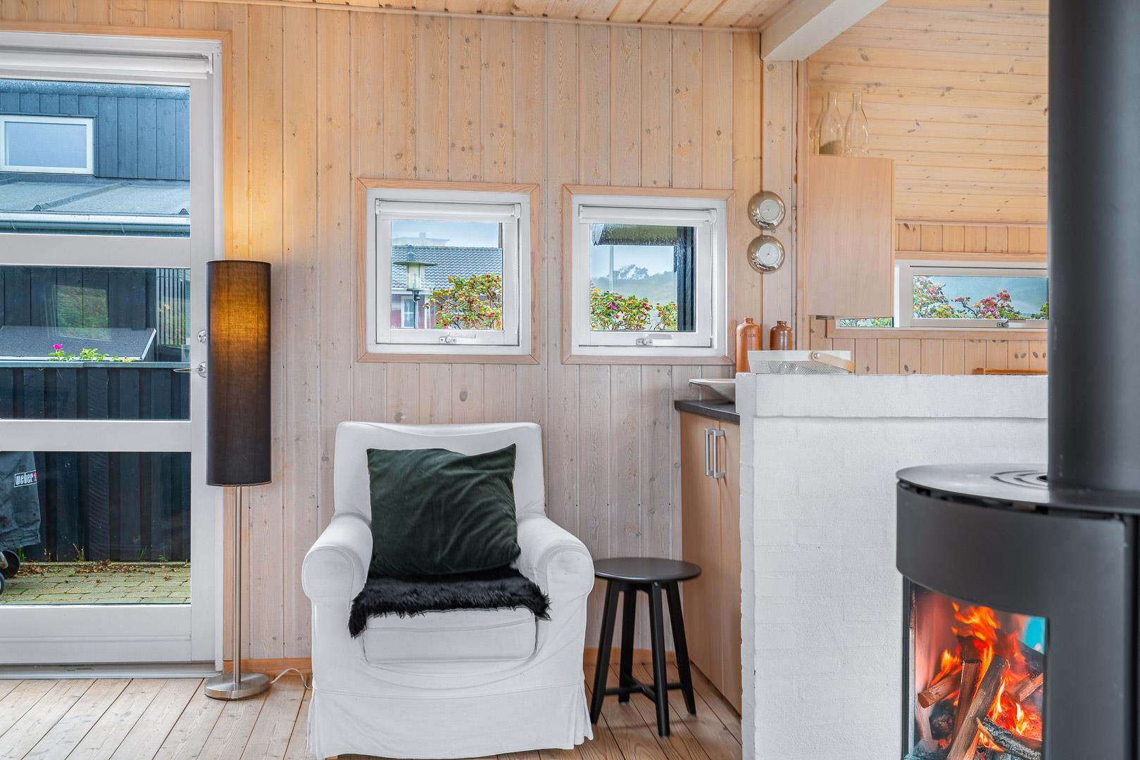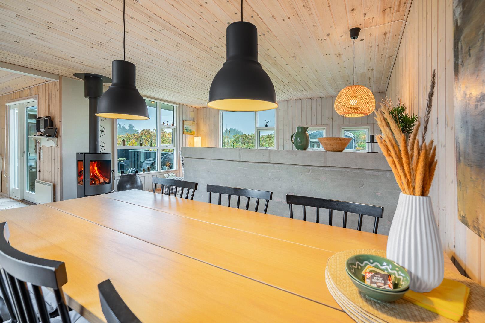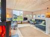 Beliggende på en dejlig naturgrund i gåafstand fra Henne Strands centrum, men alligevel på en ugenert naturgrund, ligger dette dejlige feriehus. Huset er smagfuld indrettet med gode møbler og store soverum med gode senge. Flot køkken og badeværelse. Fra stuen er der udgang til den ene af husets terrasser.