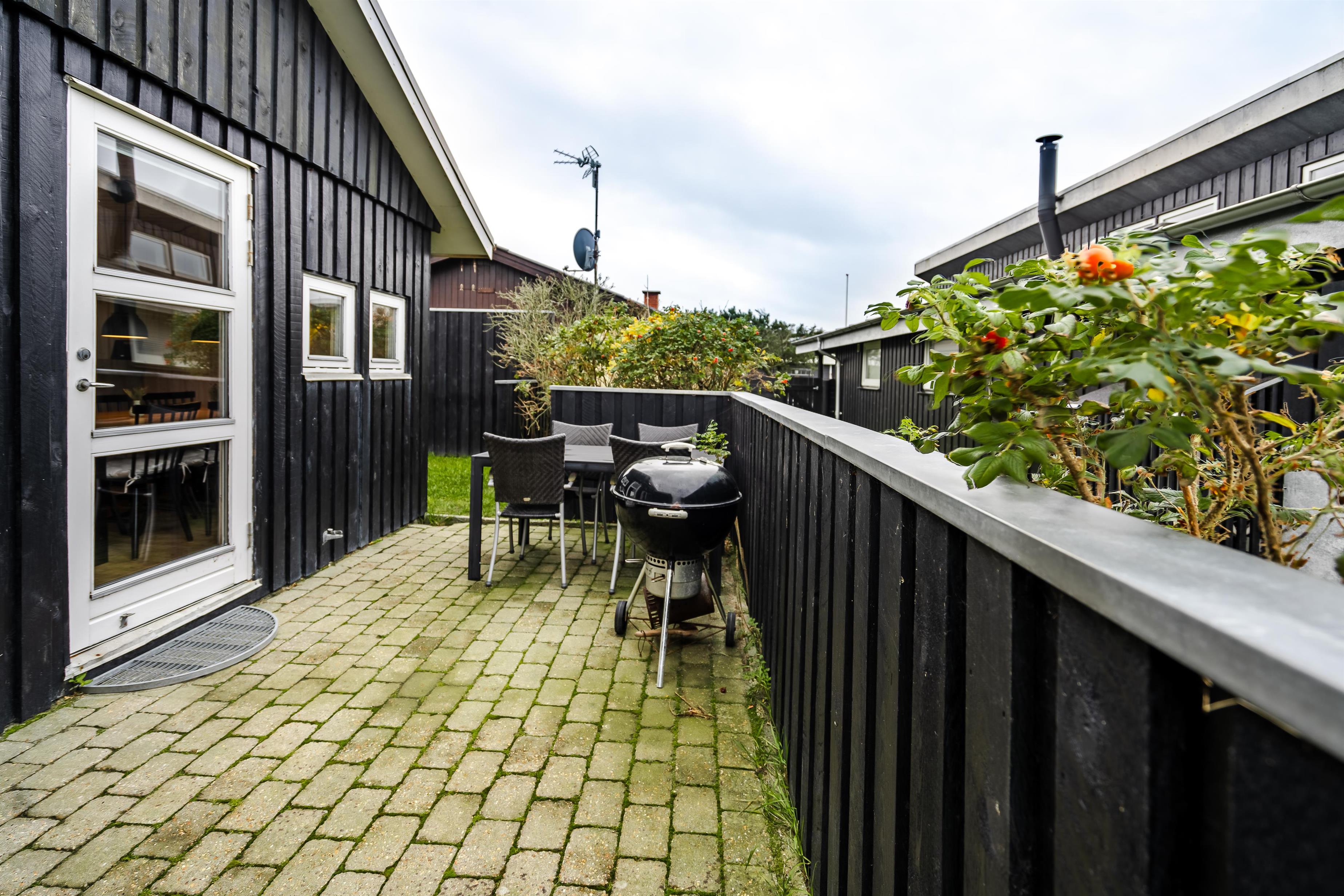 Charmerende feriehus på naturgrund nær Henne Strand med moderne faciliteter og to terrasser.