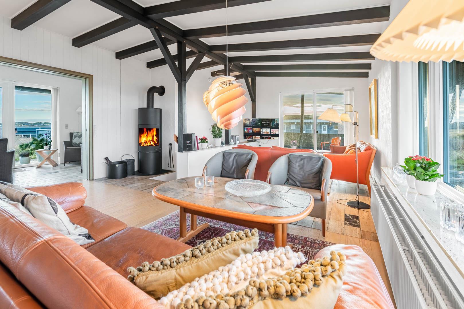 I kan allerede nu begynde at glæde jer til de mange mindeværdige stunder i det dejlige hus måske skal feriedagene tilbringes med dybe samtaler med din bedre halvdel, mens I nyder den smukke udsigt. Eller henslængt med en god bog i lænestolen foran brændeovnen, mens efterårsregnen trommer på ruderne.