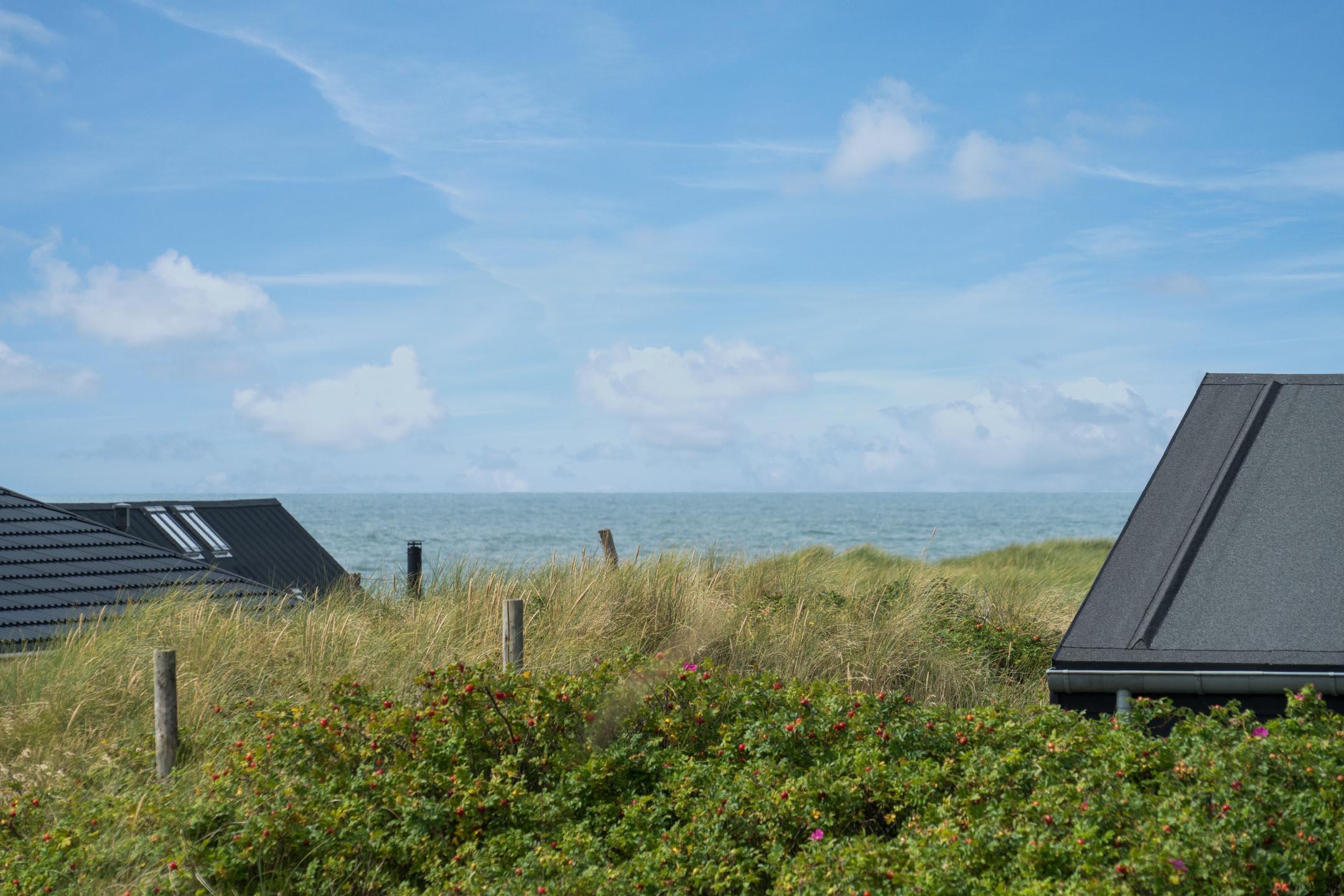 over bredden - vi befinder os i Henne Strand, hvor dette sommerhus er klar til at danne rammen om jeres næste ferie. Sommerhuset ligger ganske uforstyrret på en klittop, hvorfra der er udsigt ud over Vesterhavet og det maleriske klitlandskab.